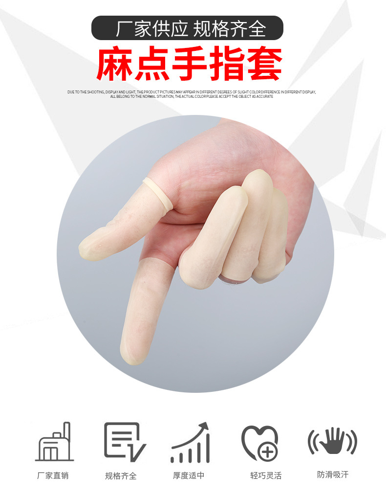 | Specifications and models | 100 Orange pitting non-slip 25# trumpet,100 Orange pitting non-slip 27# medium,100 Orange pitting non-slip 29# Large,100 Milky White non-slip 25# trumpet,100 Milky White non-slip 27# medium,100 Milky White non-slip 29# Large,50 Orange pitting non-slip finger 27# medium |