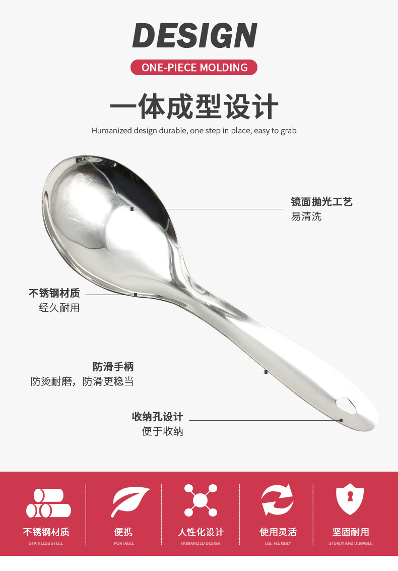 Jieyang Stainless Steel Kitchen Tools Rice Spoon Rice Spoon Household Rice Shovel Sub-spoon Dining Room Restaurant Spoon Spoon