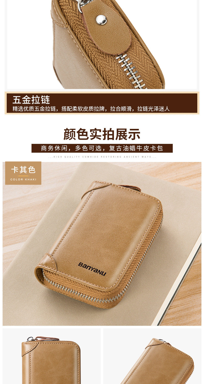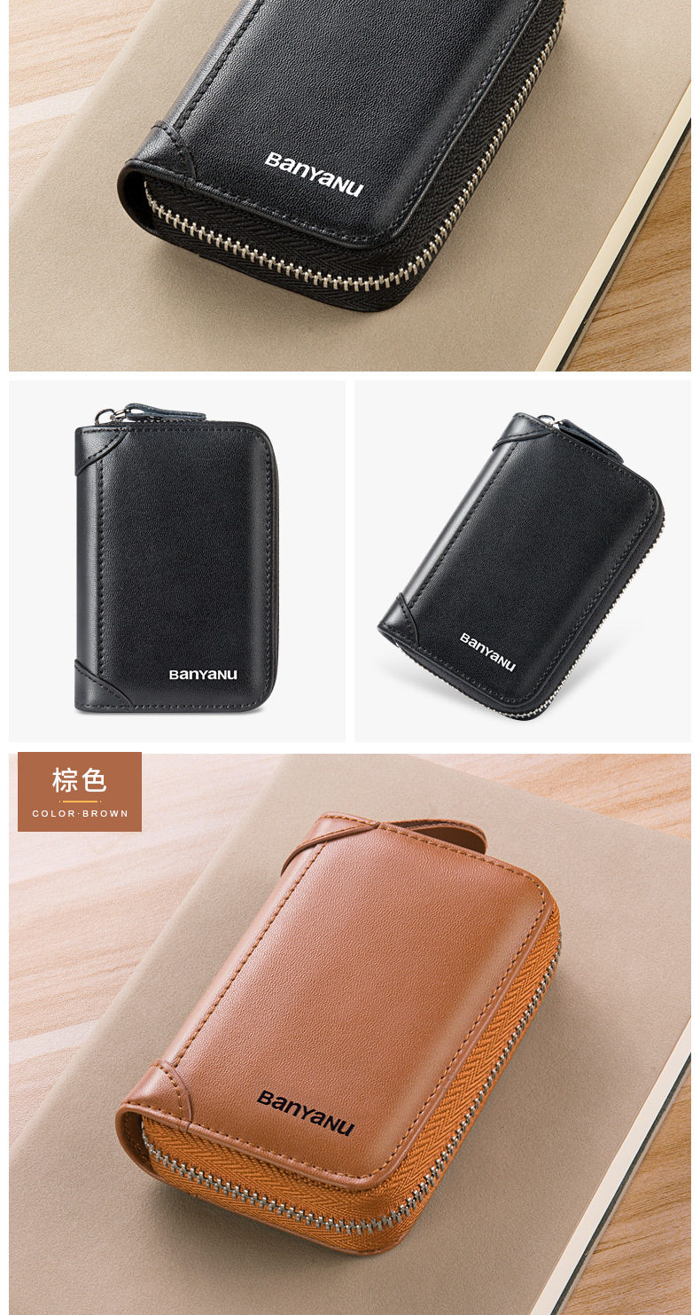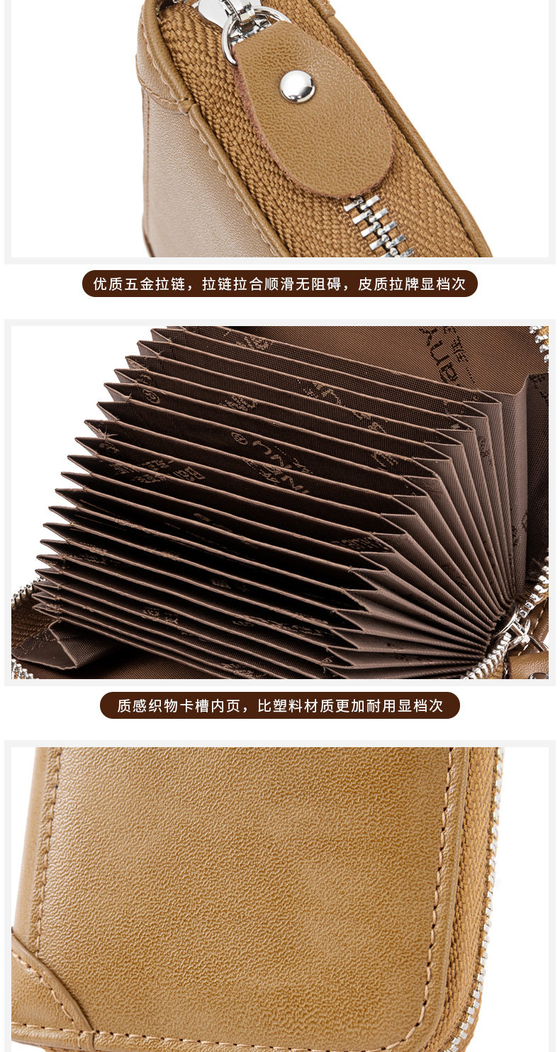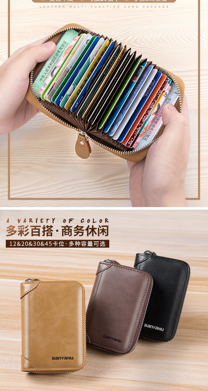 Card Holder Men's Genuine Leather Multi-Card Slot Anti-Degaussing Zipper Small Card Holder Ultra-Thin Driver's License Driver's License Card Holder for Men