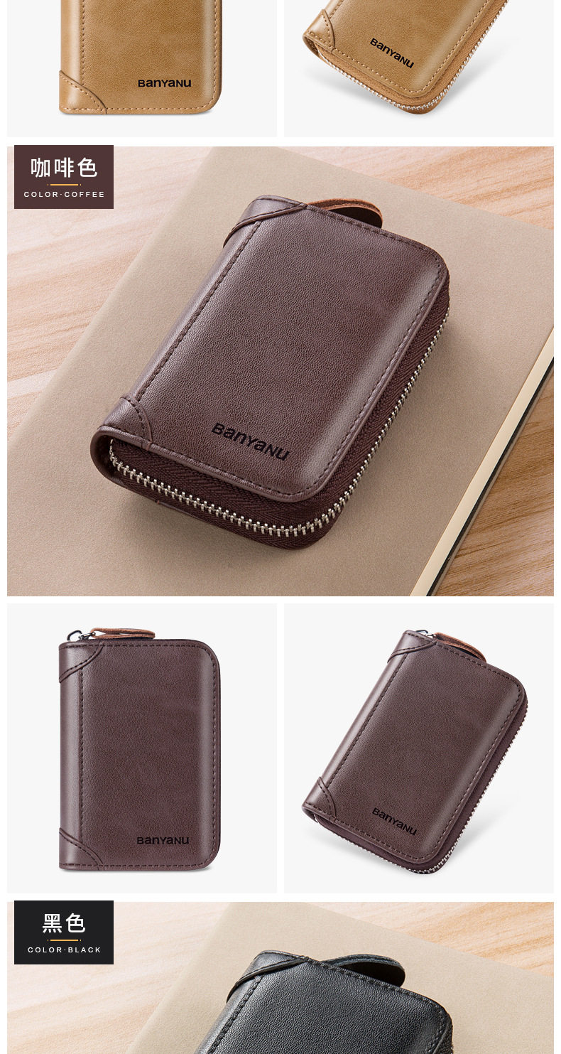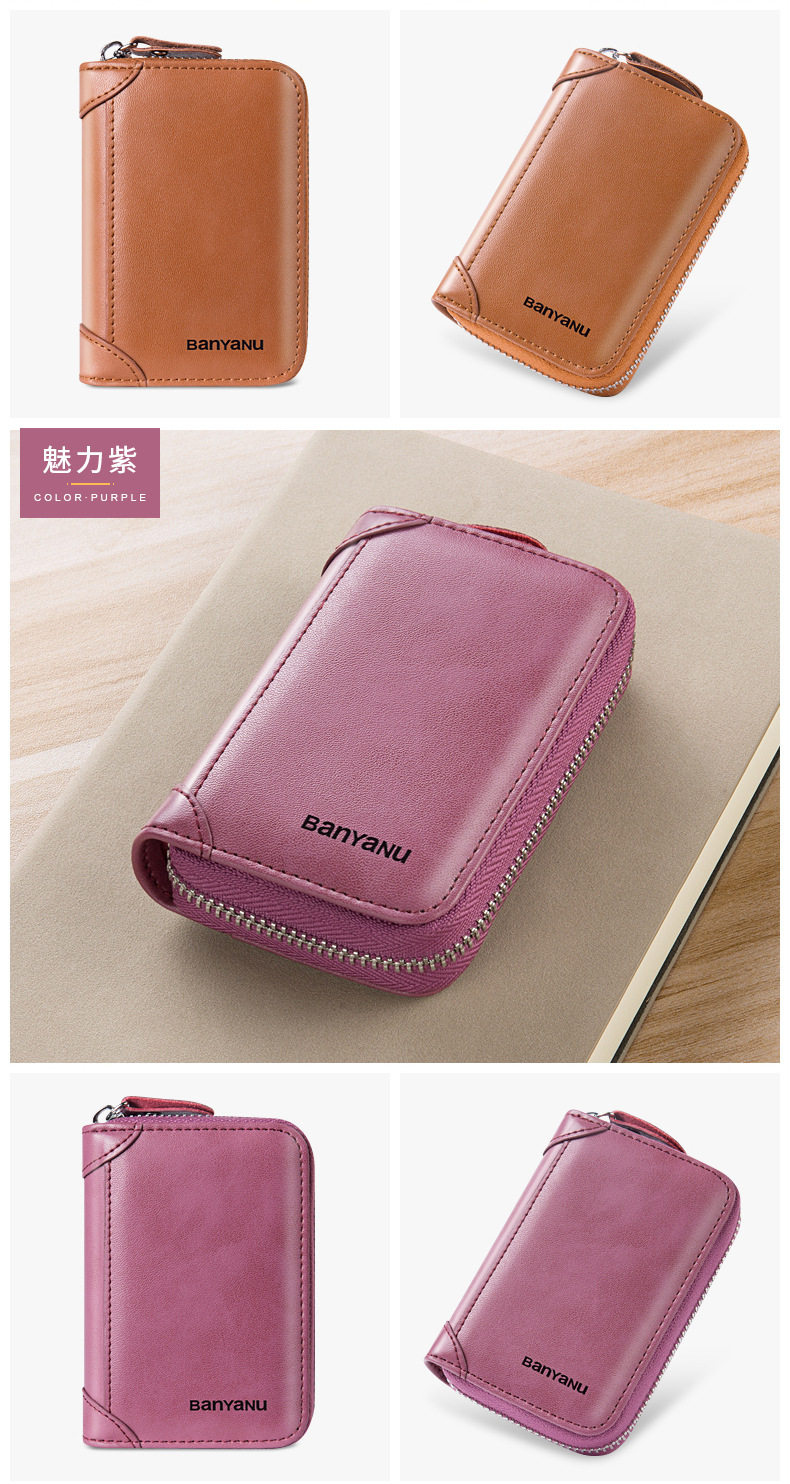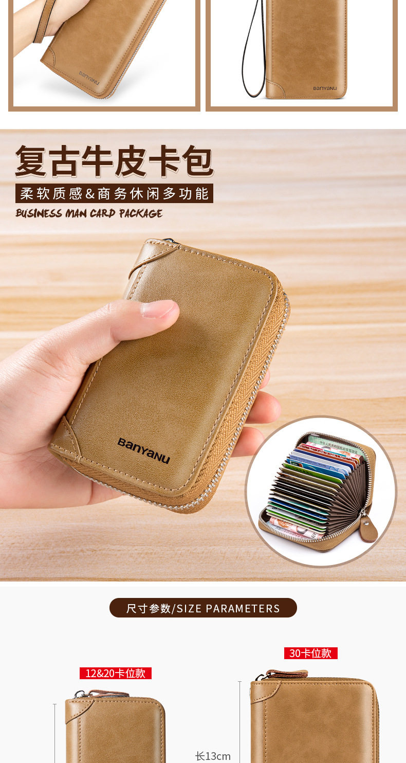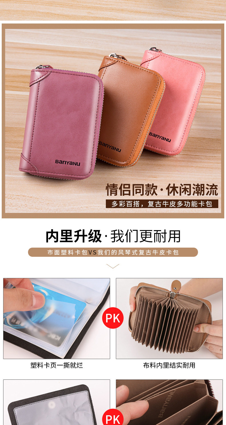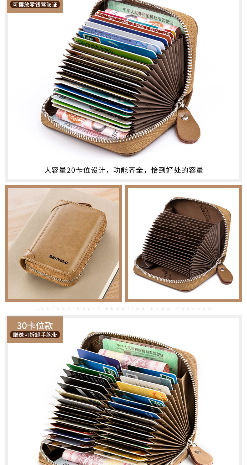 Card Holder Men's Genuine Leather Multi-Card Slot Anti-Degaussing Zipper Small Card Holder Ultra-Thin Driver's License Driver's License Card Holder for Men