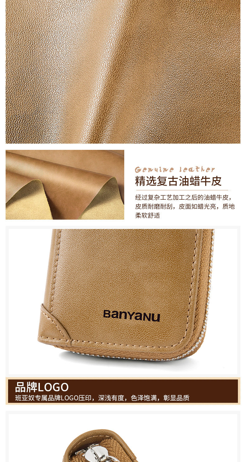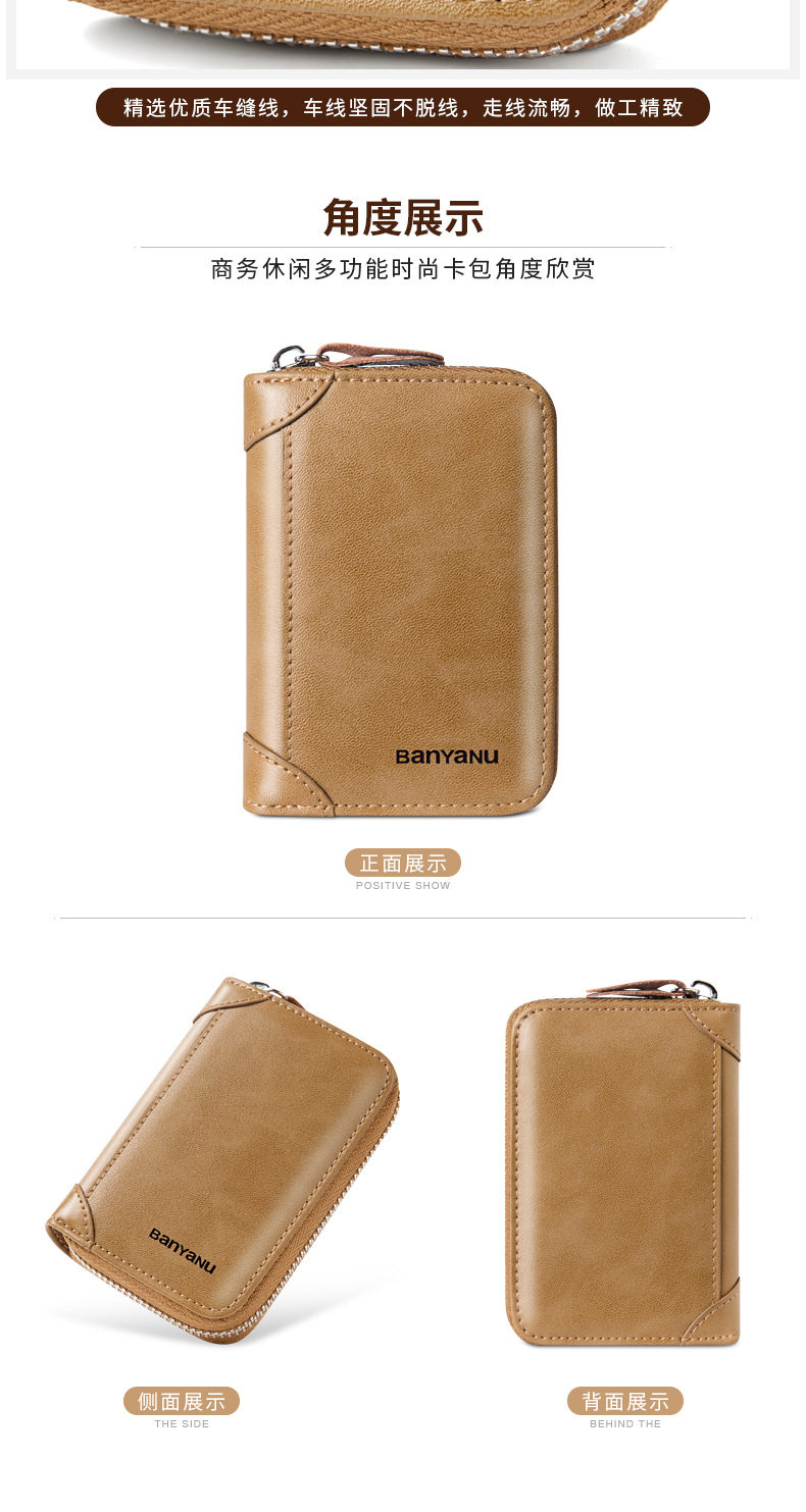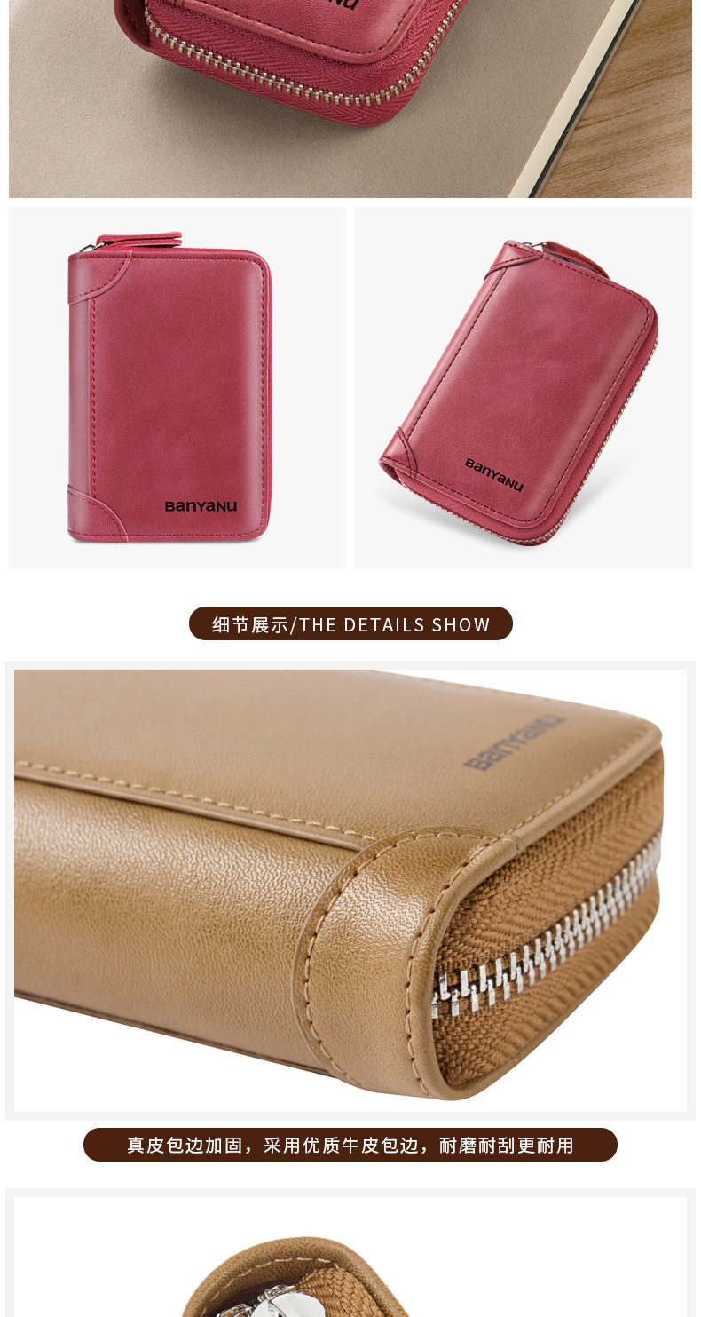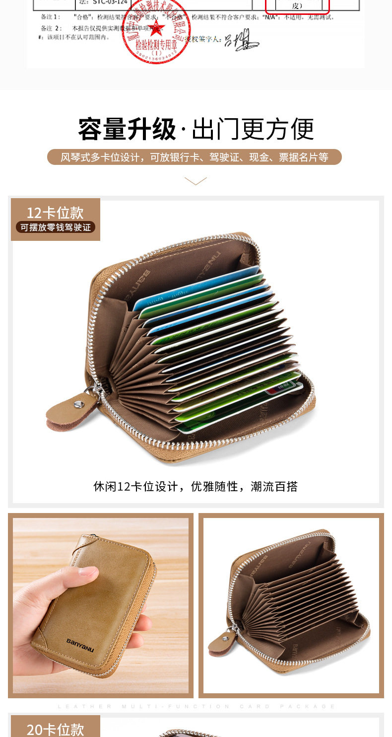 Card Holder Men's Genuine Leather Multi-Card Slot Anti-Degaussing Zipper Small Card Holder Ultra-Thin Driver's License Driver's License Card Holder for Men