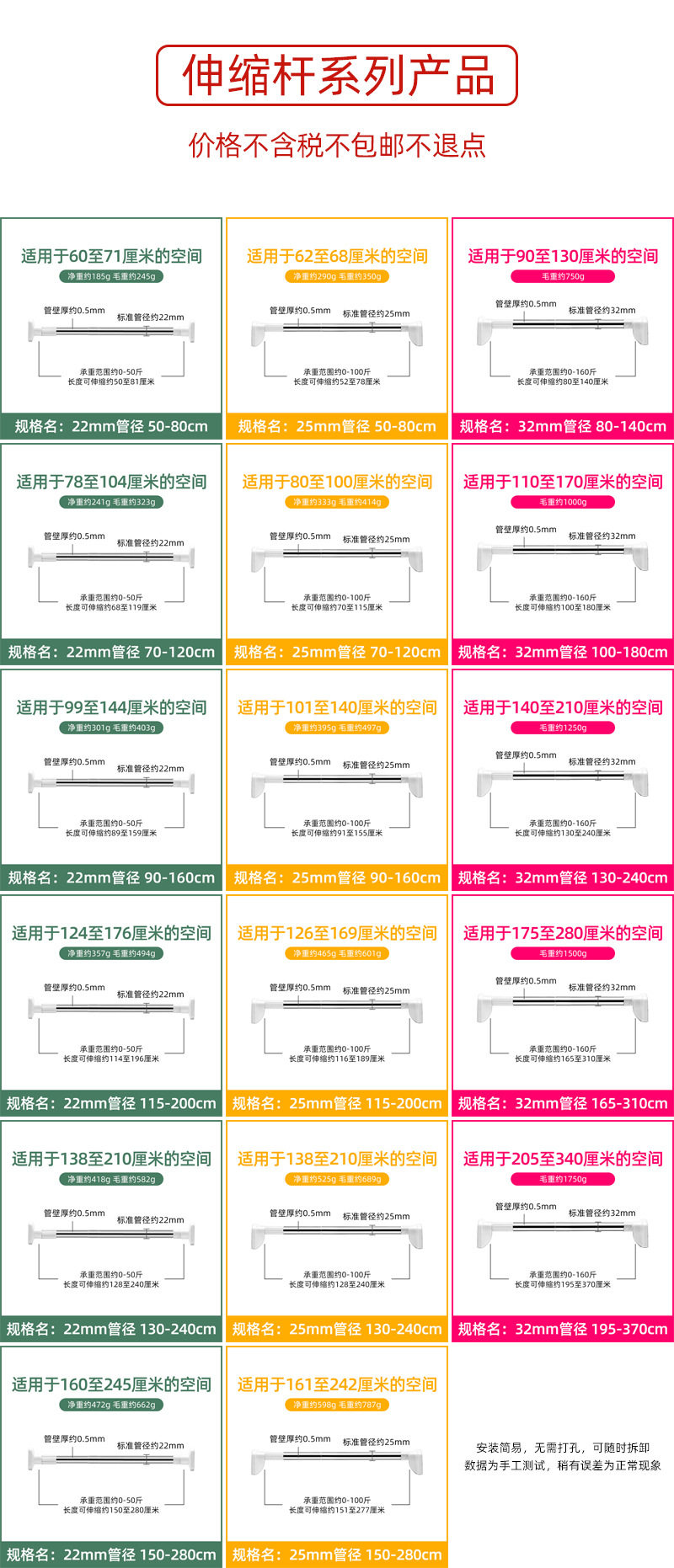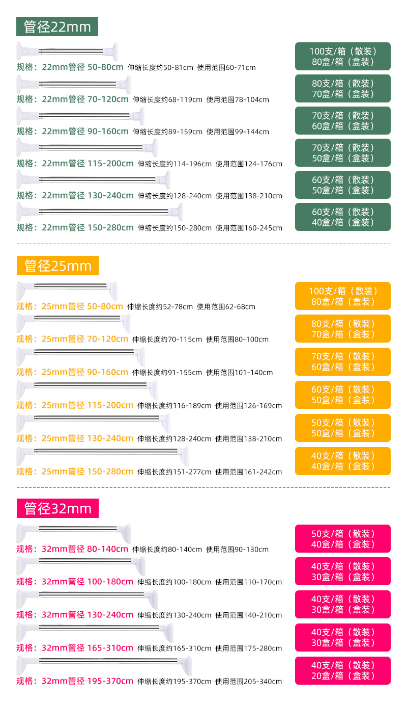 | Color | Regular 22mm pipe diameter 50-80cm,regular 22mm pipe diameter 70-120cm,regular 22mm pipe diameter 90-160cm,regular 22mm pipe diameter 130-240cm,regular 22mm pipe diameter 150-280cm,Bold 25mm pipe diameter 50-80cm,Bold 25mm pipe diameter 70-120cm,Bold 25mm pipe diameter 90-160cm,Bold 25mm pipe diameter 130-240cm,Bold 25mm pipe diameter 150-280cm |