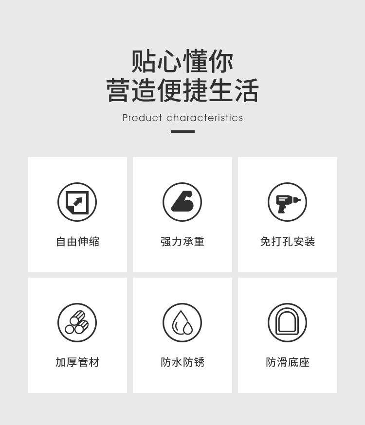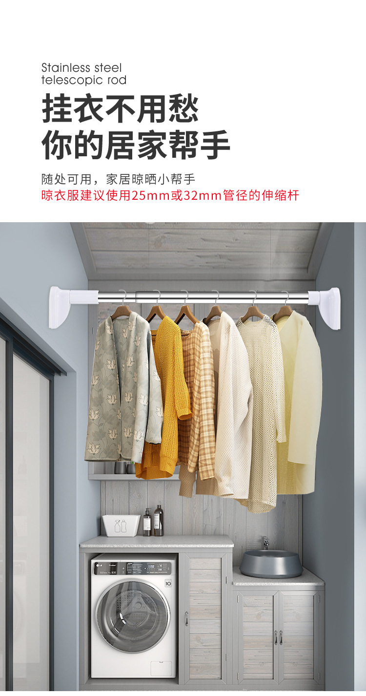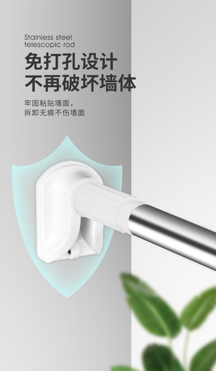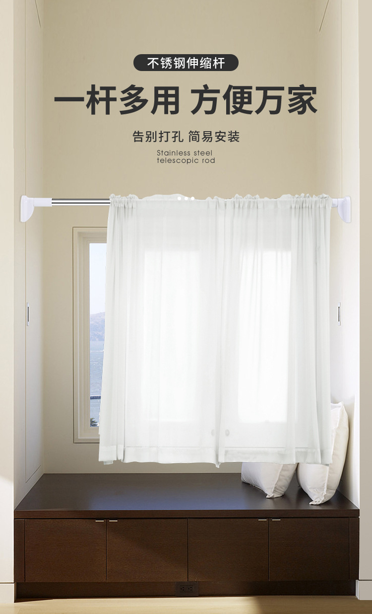 Stainless Steel Wardrobe Clothes Rod Punch-Free Retractable Shower Curtain Rod Bathroom Balcony Clothes Wardrobe Curtain Rod