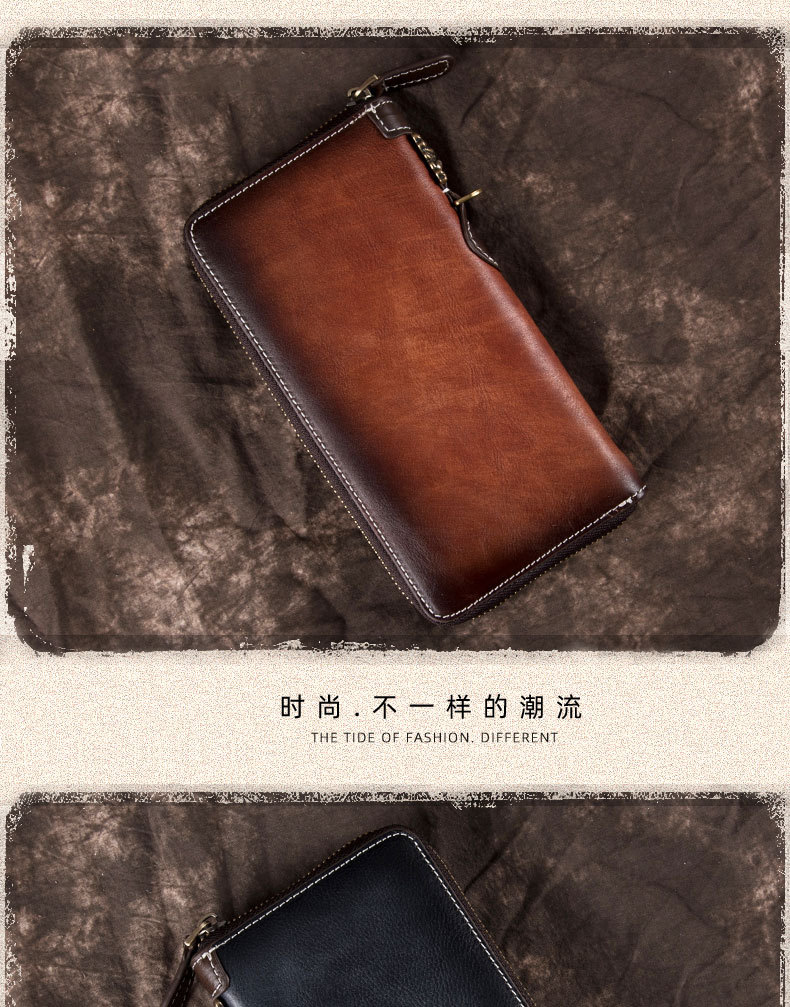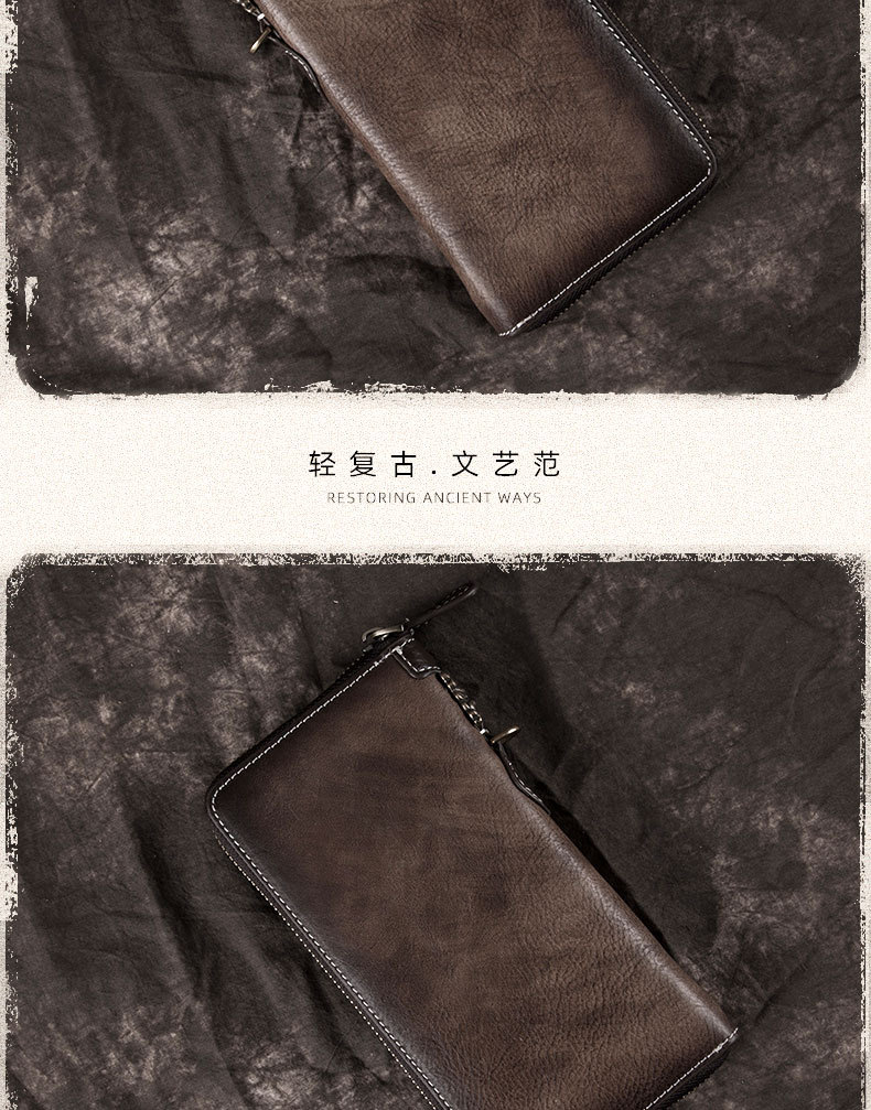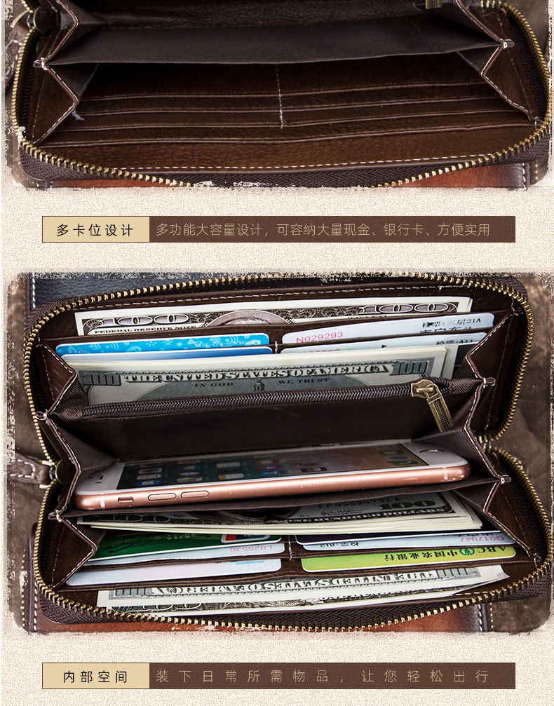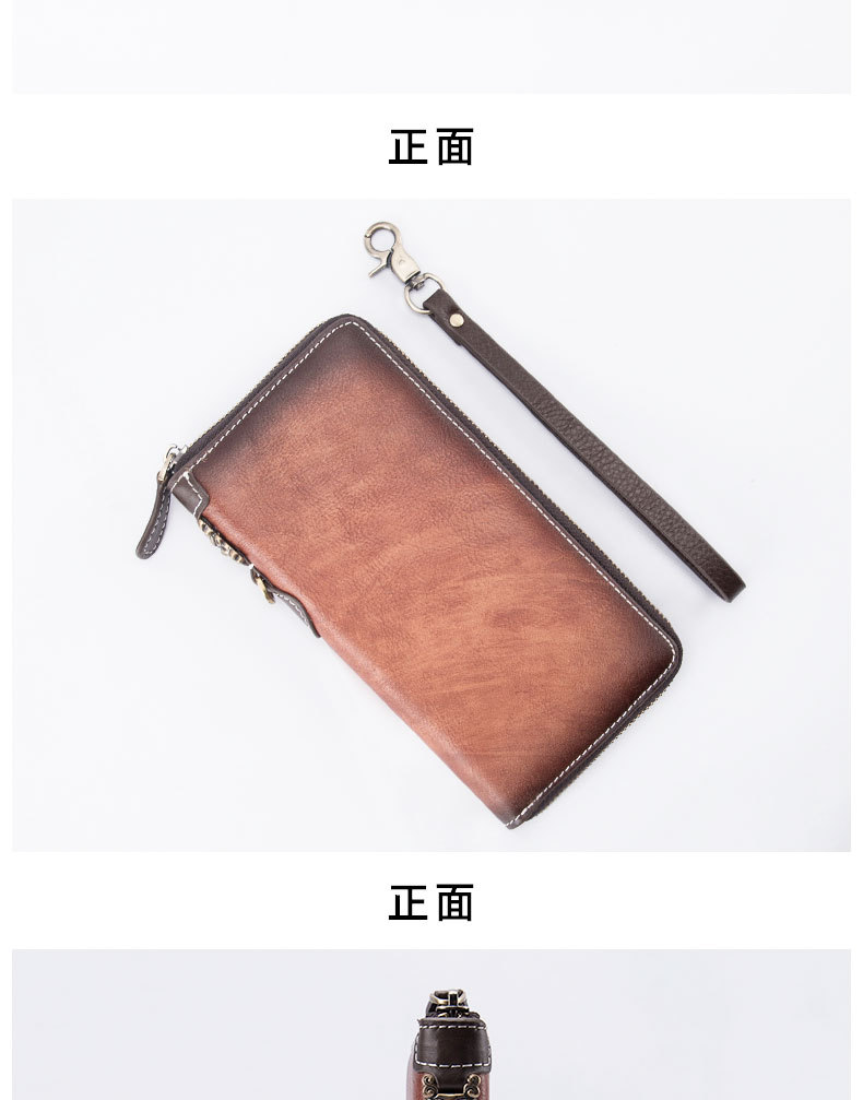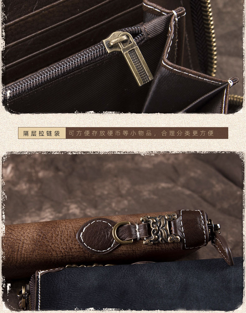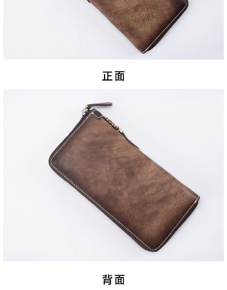 New Retro Men's Wallet Long Zipper Genuine Leather Clutch Multi-functional European and American Cowhide Youth Men's Wallet