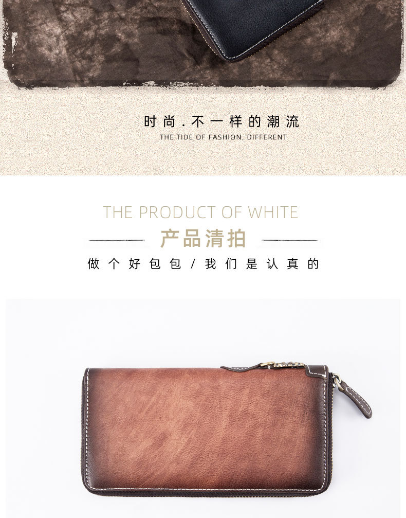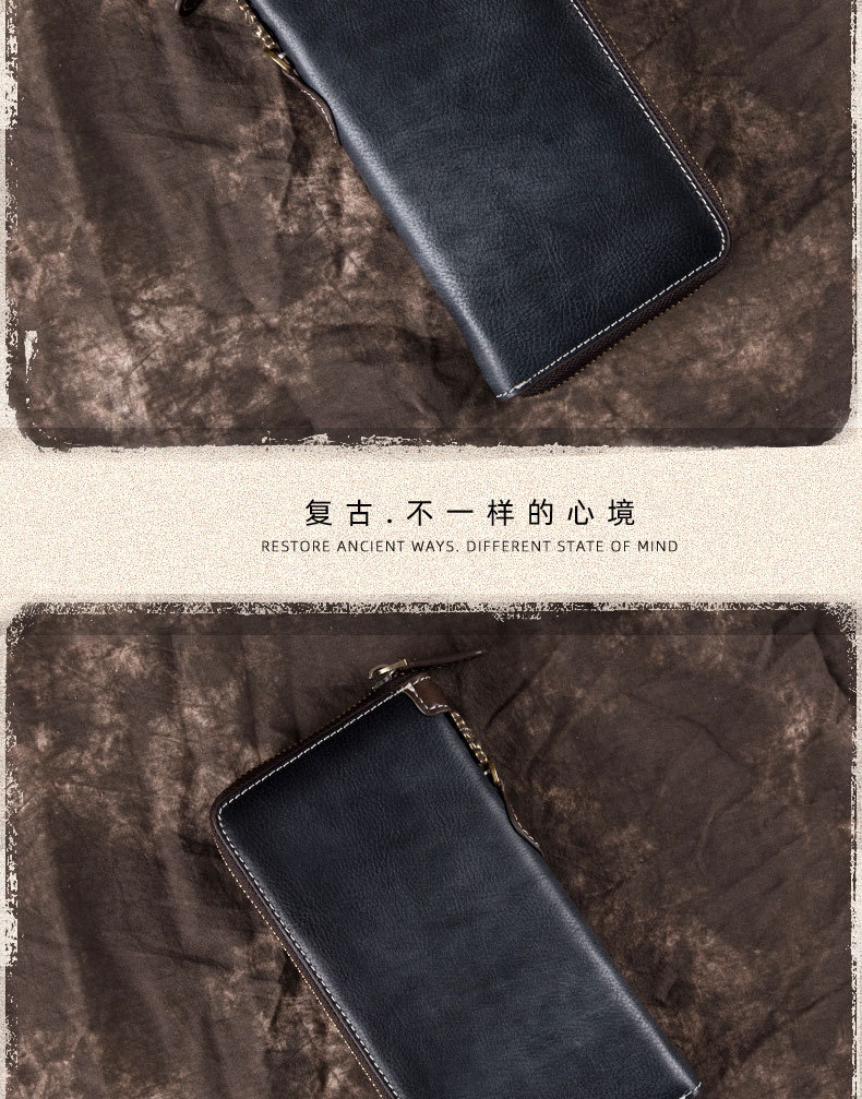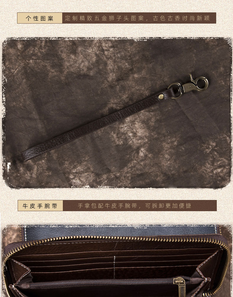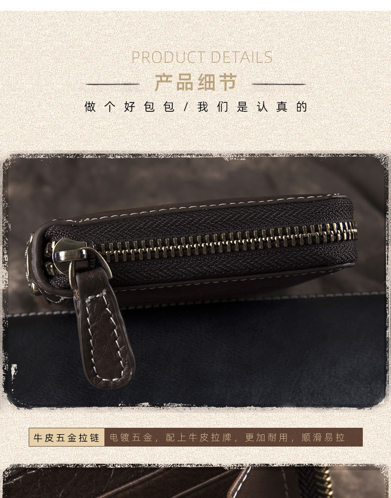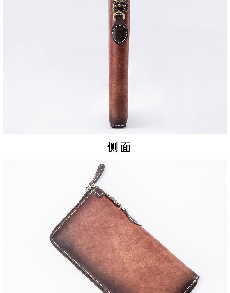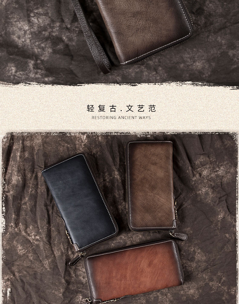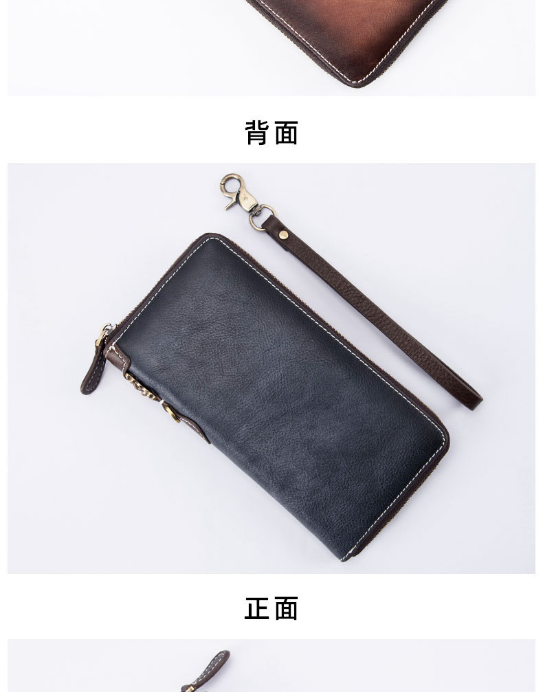 New Retro Men's Wallet Long Zipper Genuine Leather Clutch Multi-functional European and American Cowhide Youth Men's Wallet
