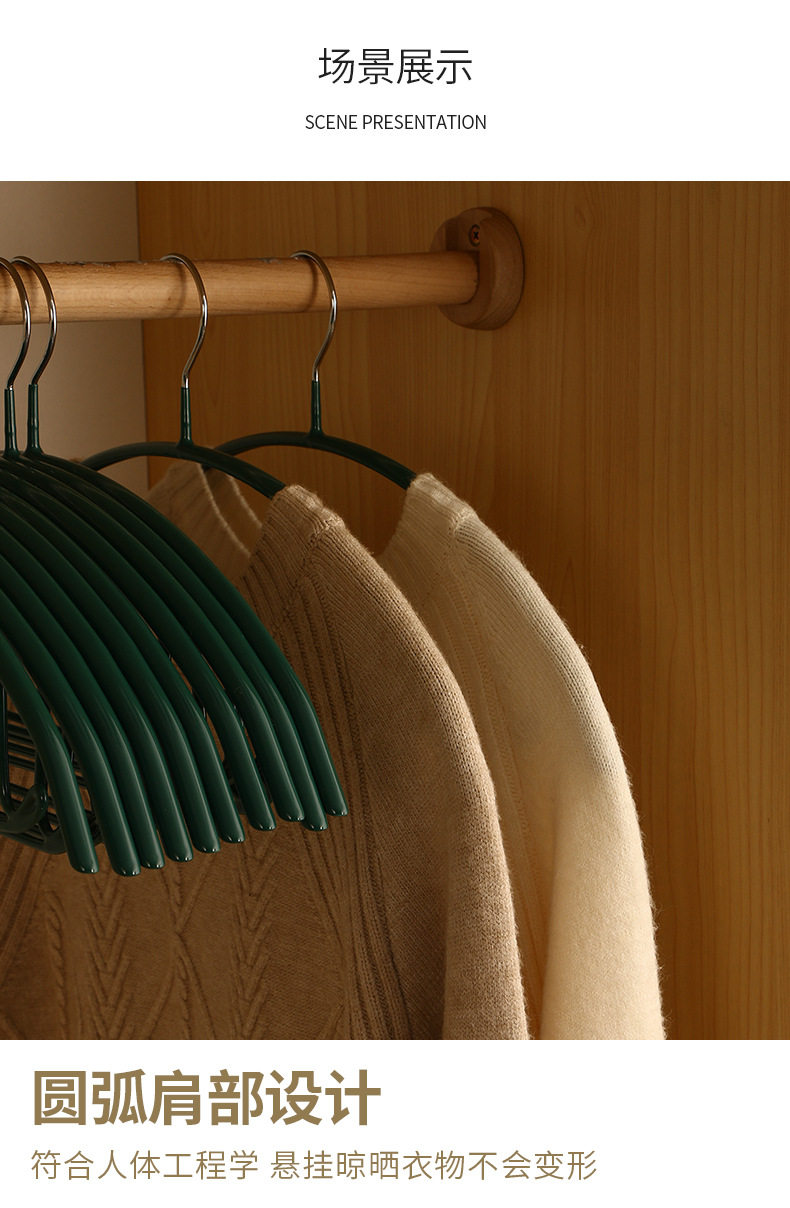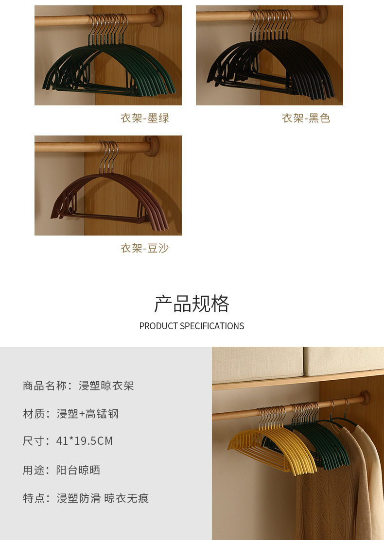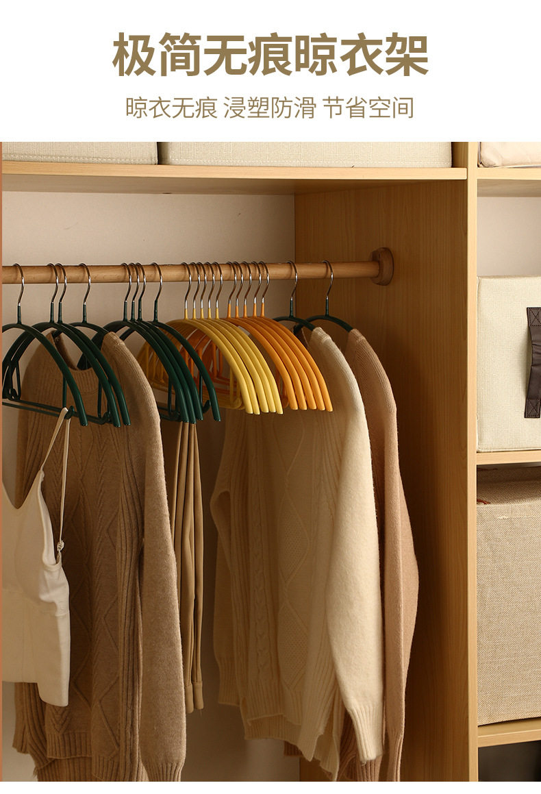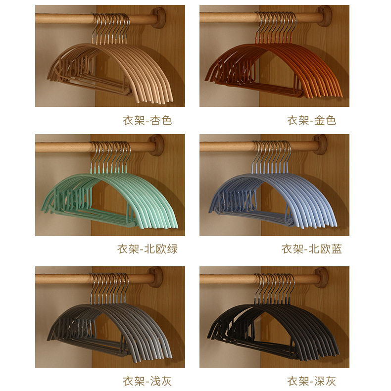 Plastic coated hanger household thickened clothes hanger wardrobe storage non-bulging semicircle clothes support seamless non-slip clothes drying rack