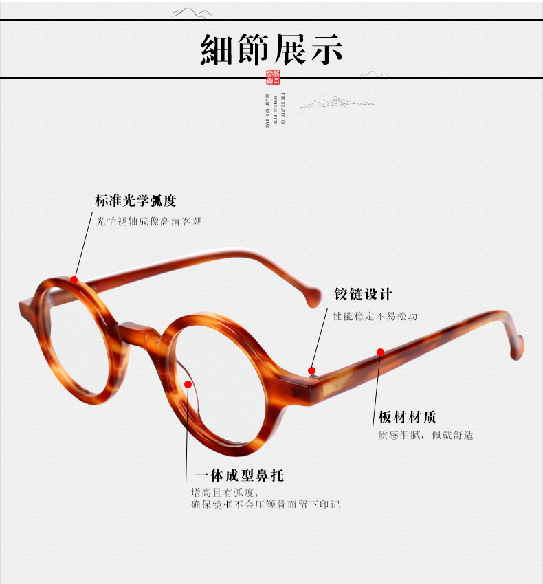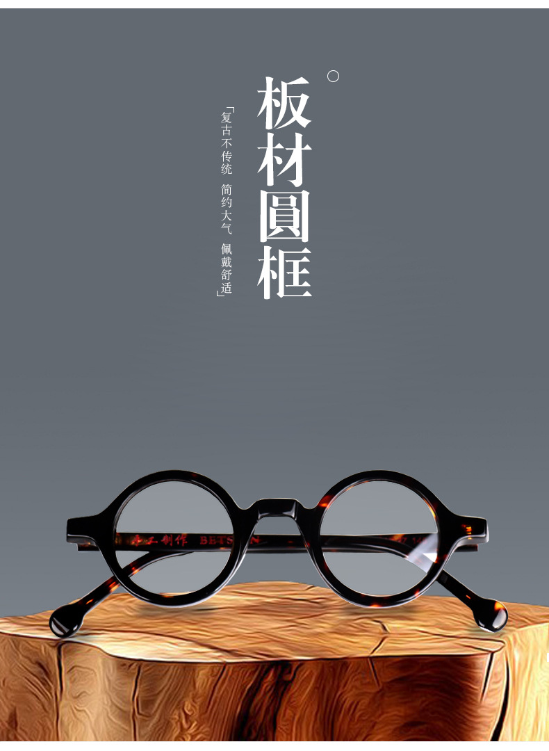 Small Frame Design, Retro Round Plate Glasses Frame, Round Cheongsam, Personalized, Fashionable, Versatile for Men and Women