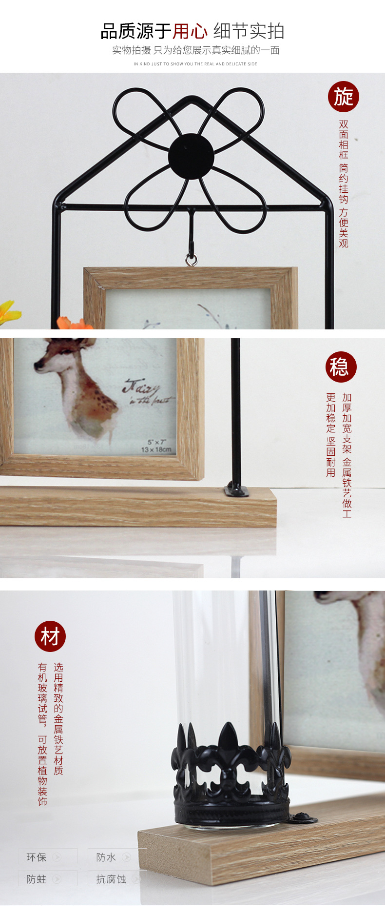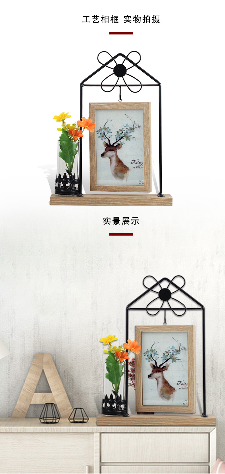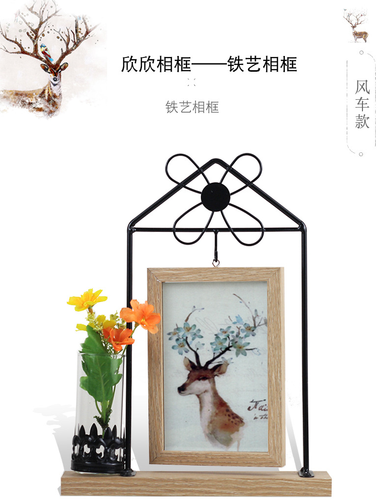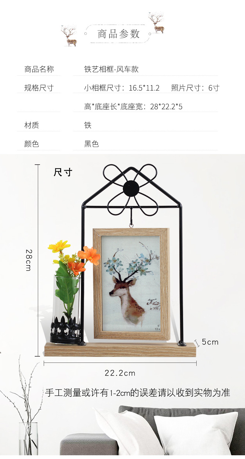 Wrought Iron Photo Frame Double-sided Windmill Shape Creative Simple 2 6-inch Photo Frame Plant Specimen Desktop Table