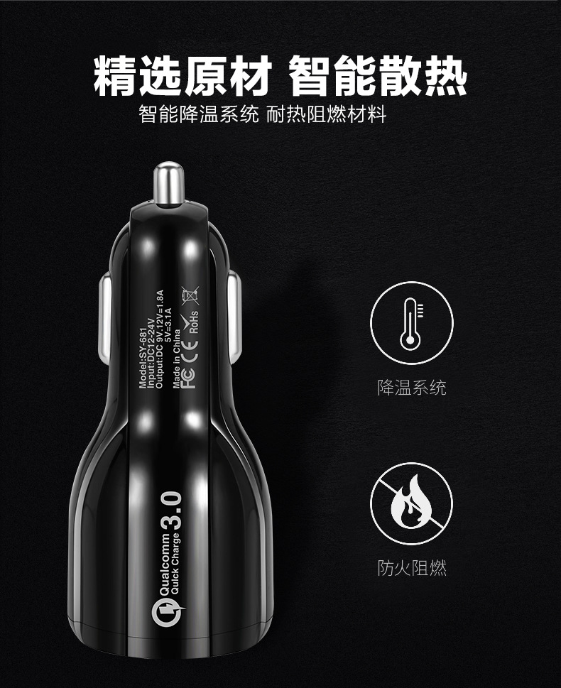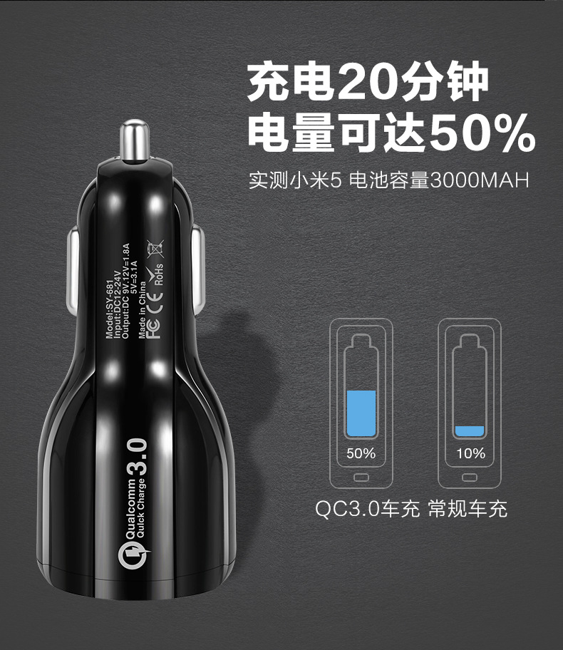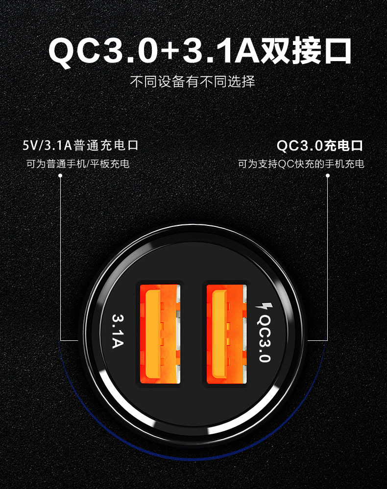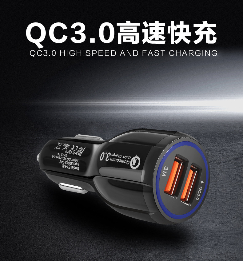 Qc3.0 Car Charger 3.1A One to Two Qc3.0 Car Mobile Phone Dual USB Car Charger One to Two Fast Charging