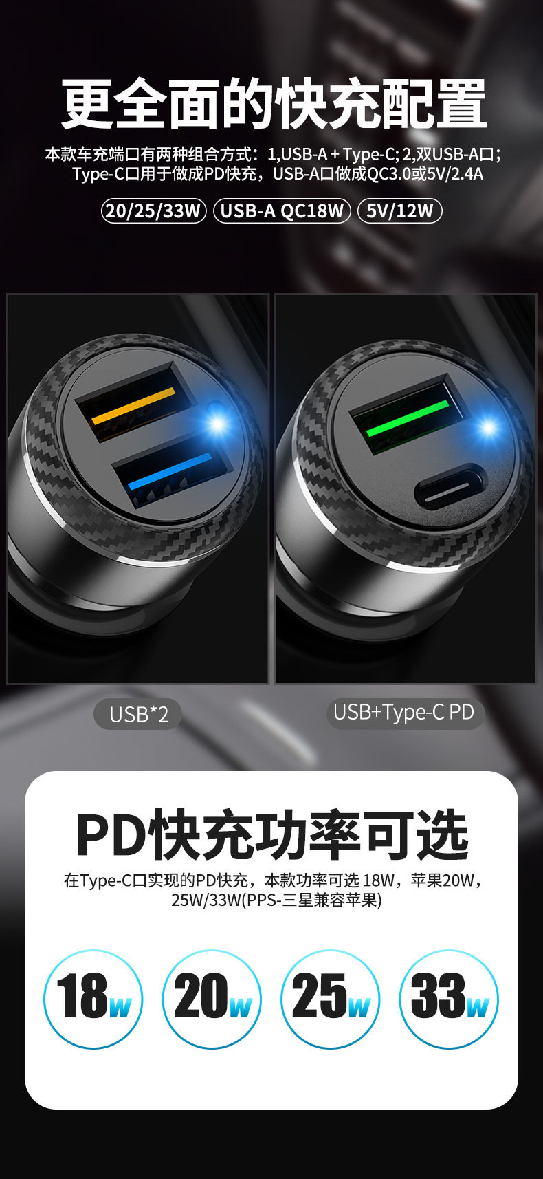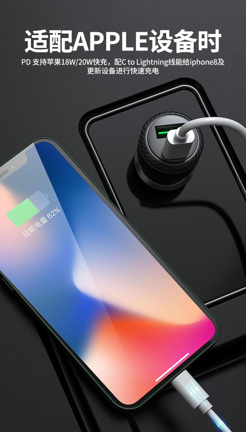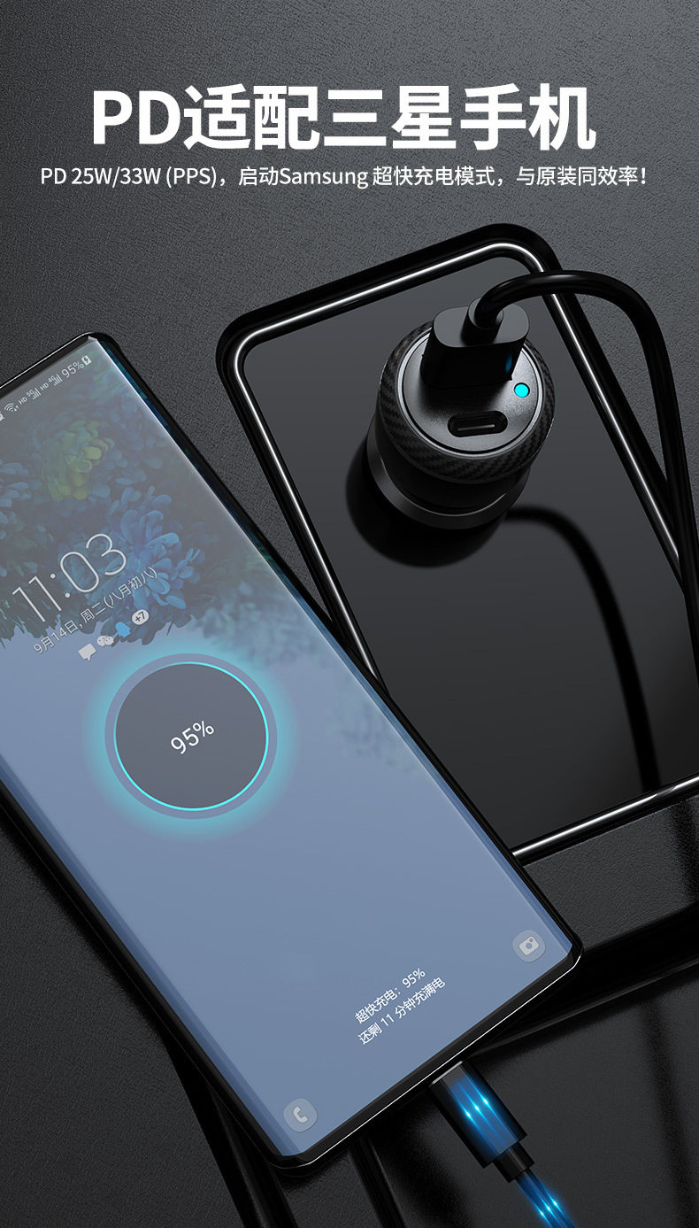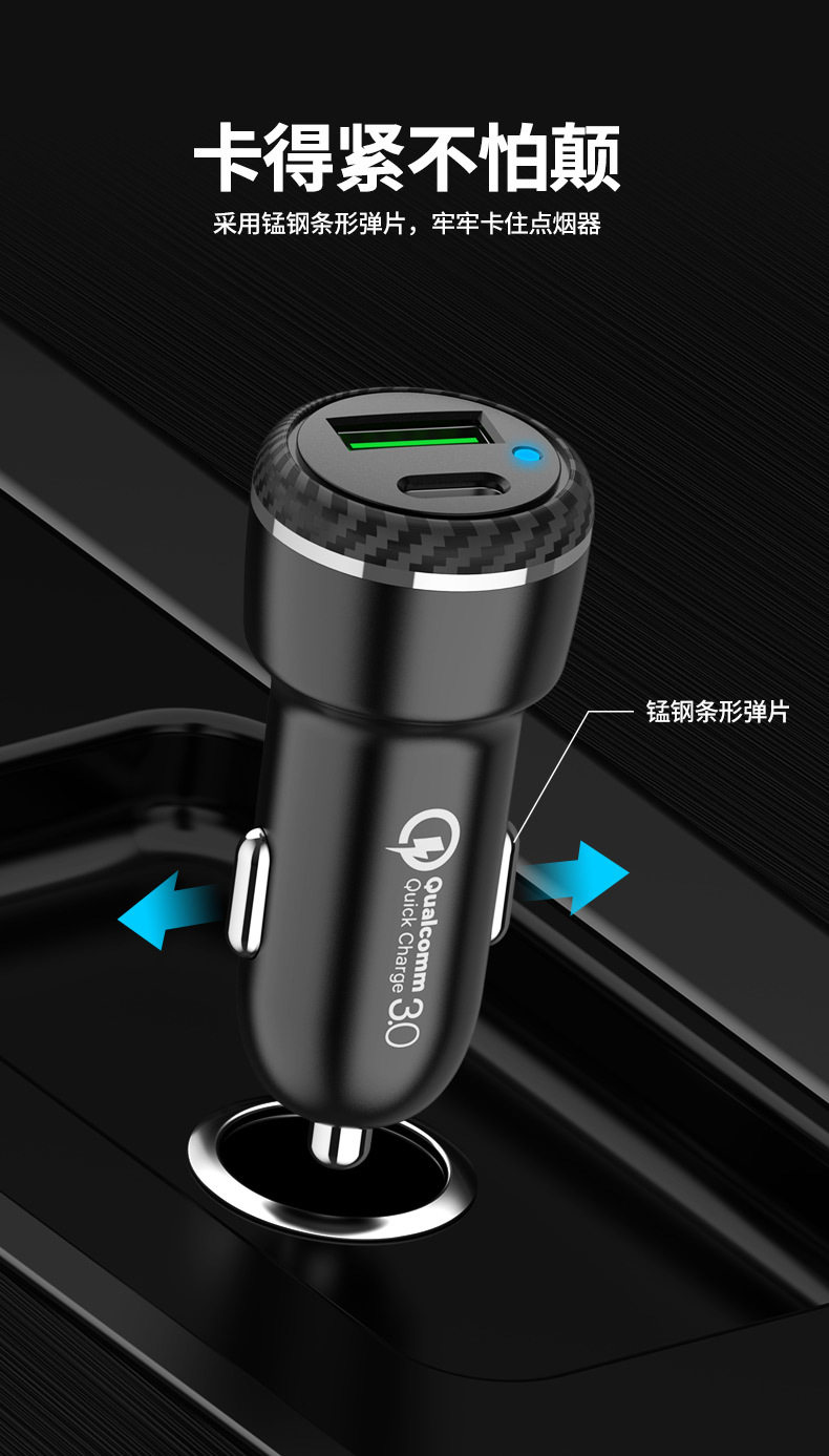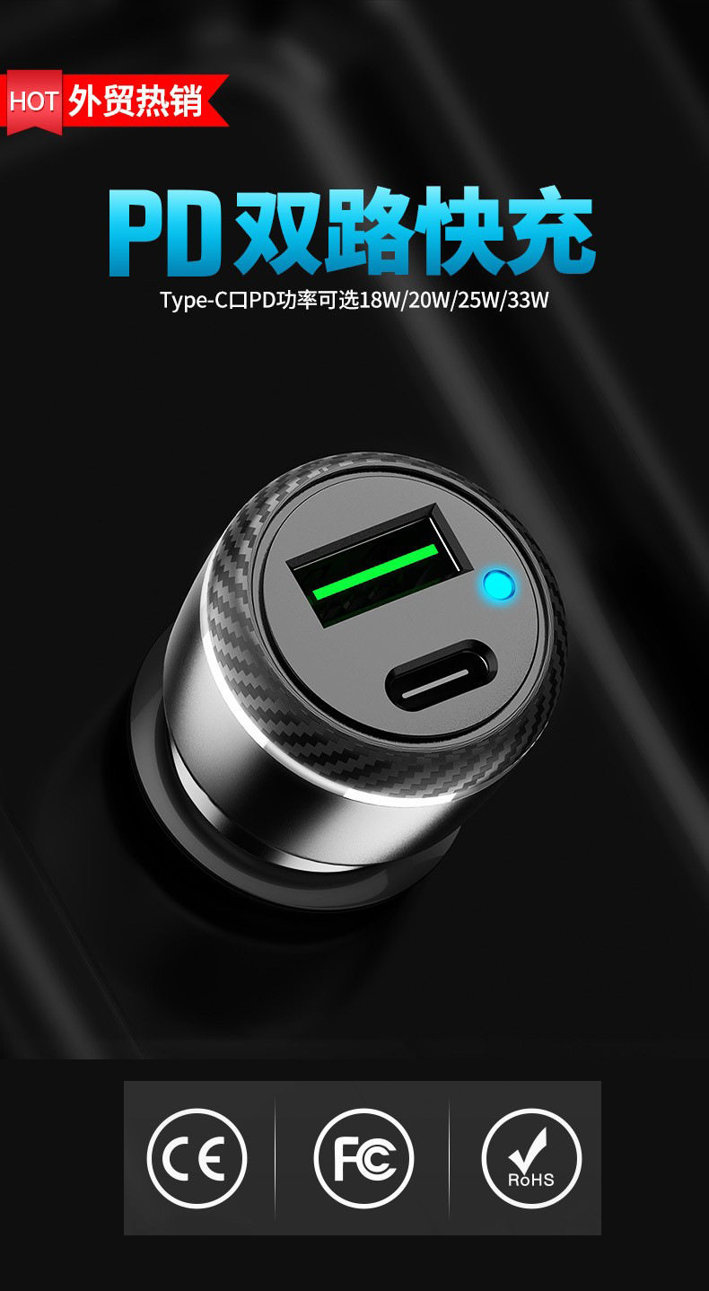 Car Charger Typecqc3.0 Is Suitable for Samsung Pps Android Fast Charging Apple Pd20W Car Charger Cross-Border Supply