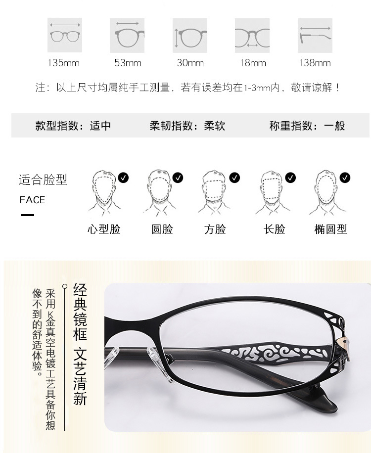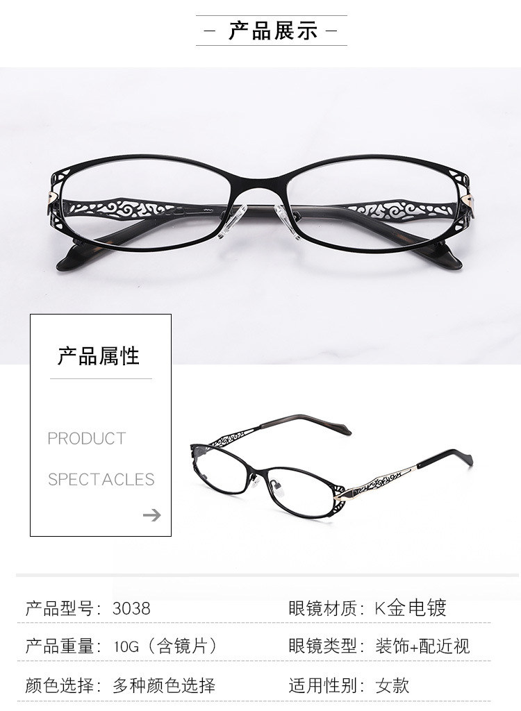 Fashion ladies temperament hollow glasses frame 3038 manufacturers wholesale