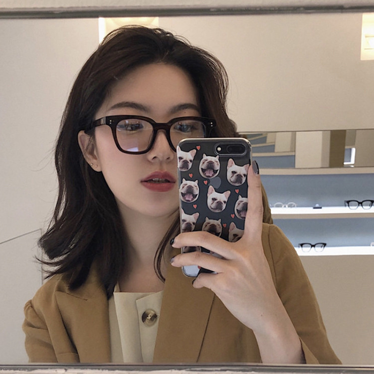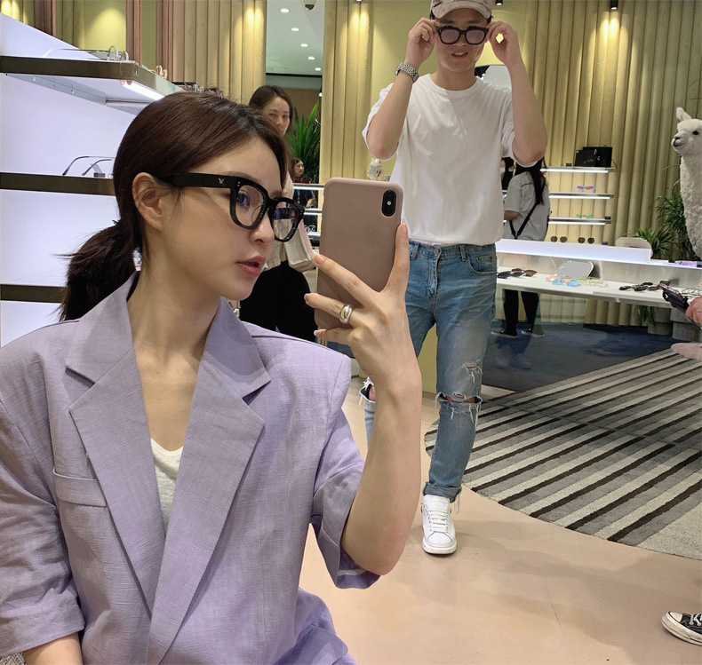 Korean Style Sydney Fan Same Style Flat Mirror V Brand Black Frame Retro Glasses Frame Internet Popular Trendy Anti-Blue Light for Men and Women