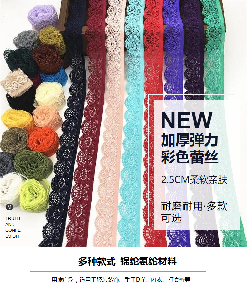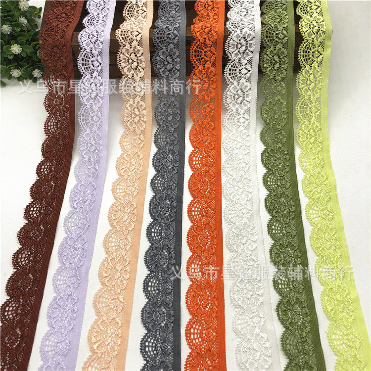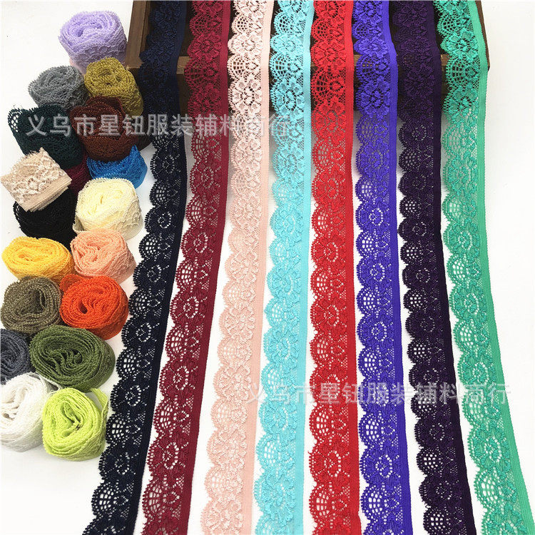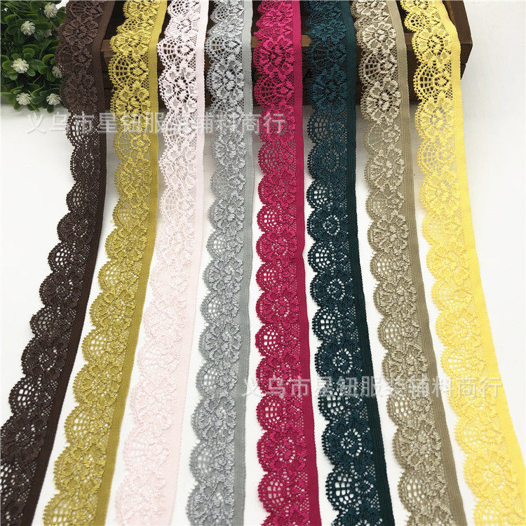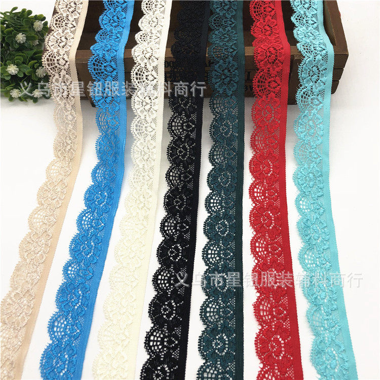 35 colors 2.5cm elastic nylon + spandex warp knitted lace unilateral hollow underwear diy accessories