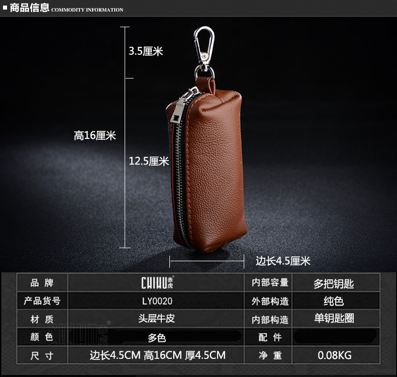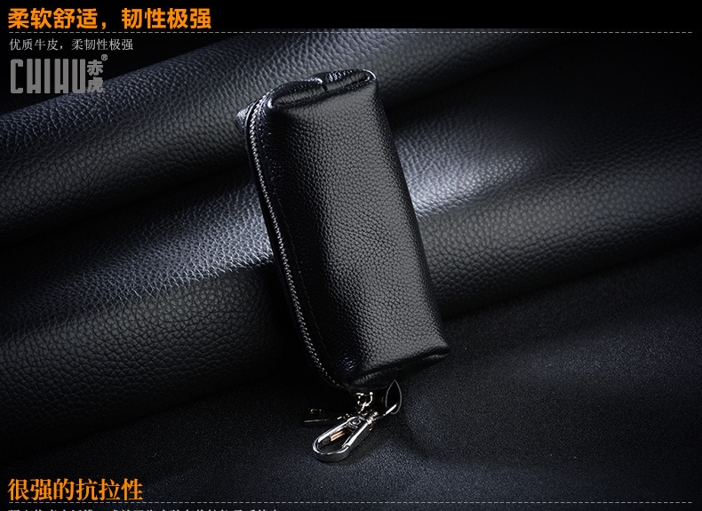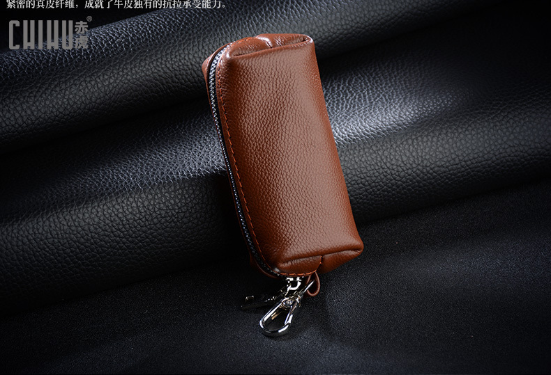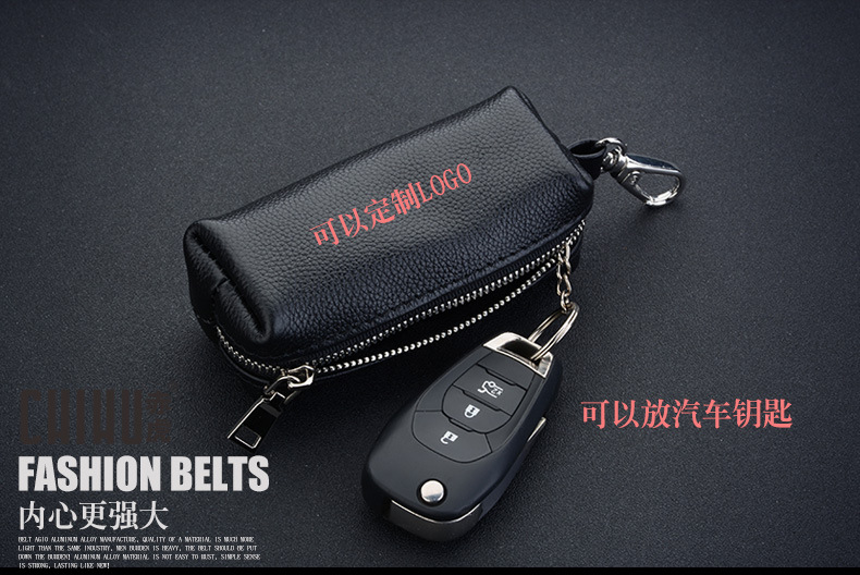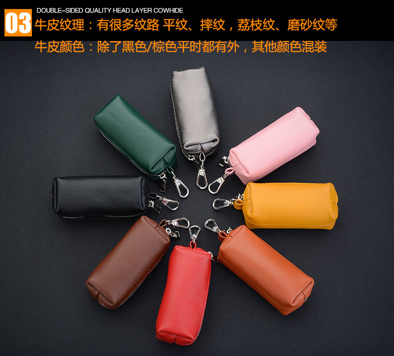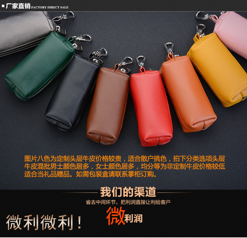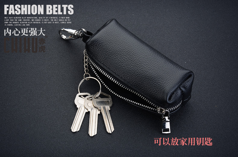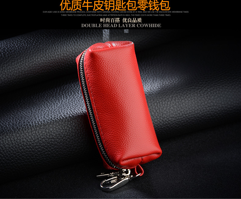 Practical hand-held men's cowhide key case large capacity fashionable women's zipper household universal key case