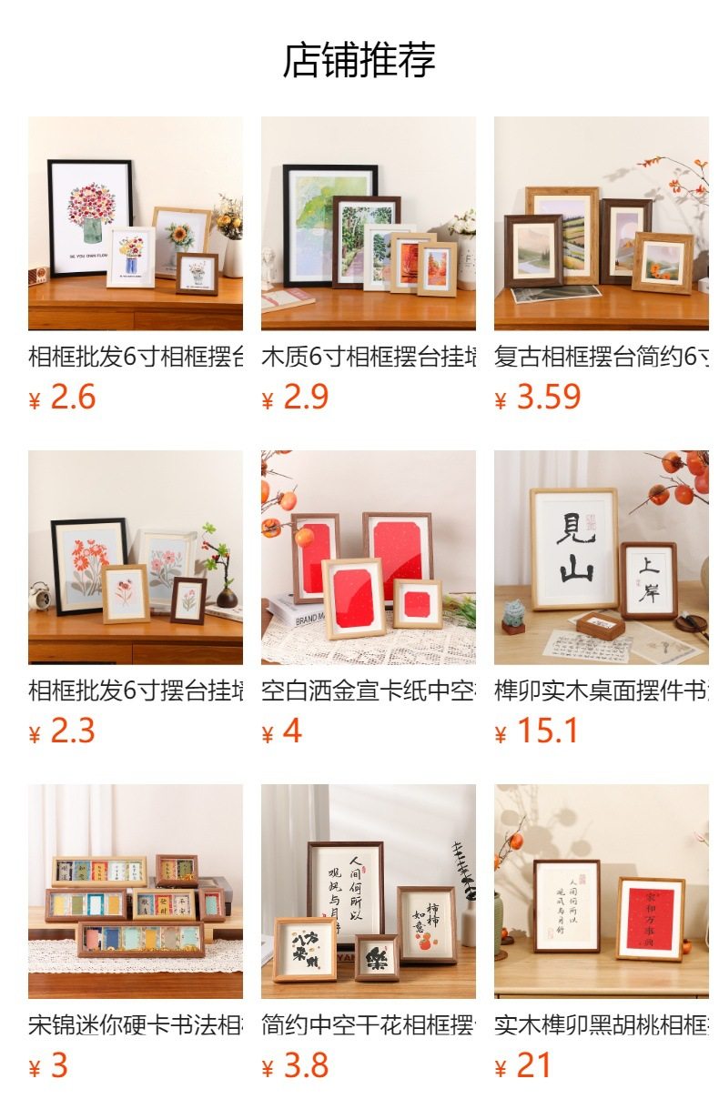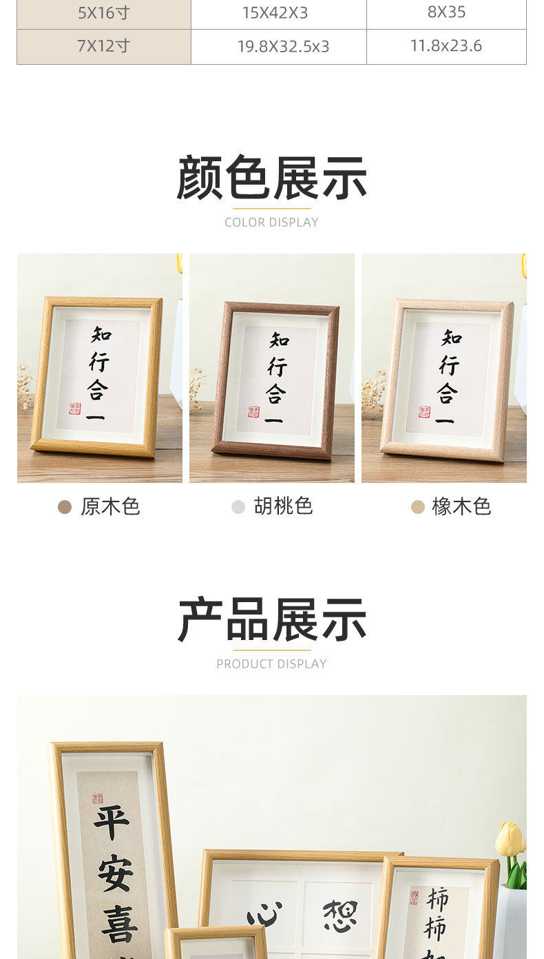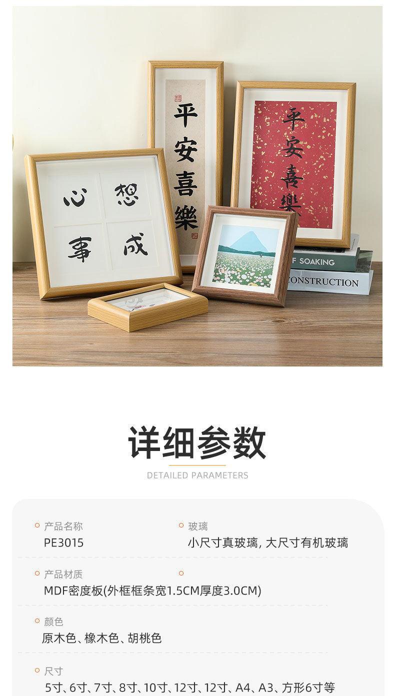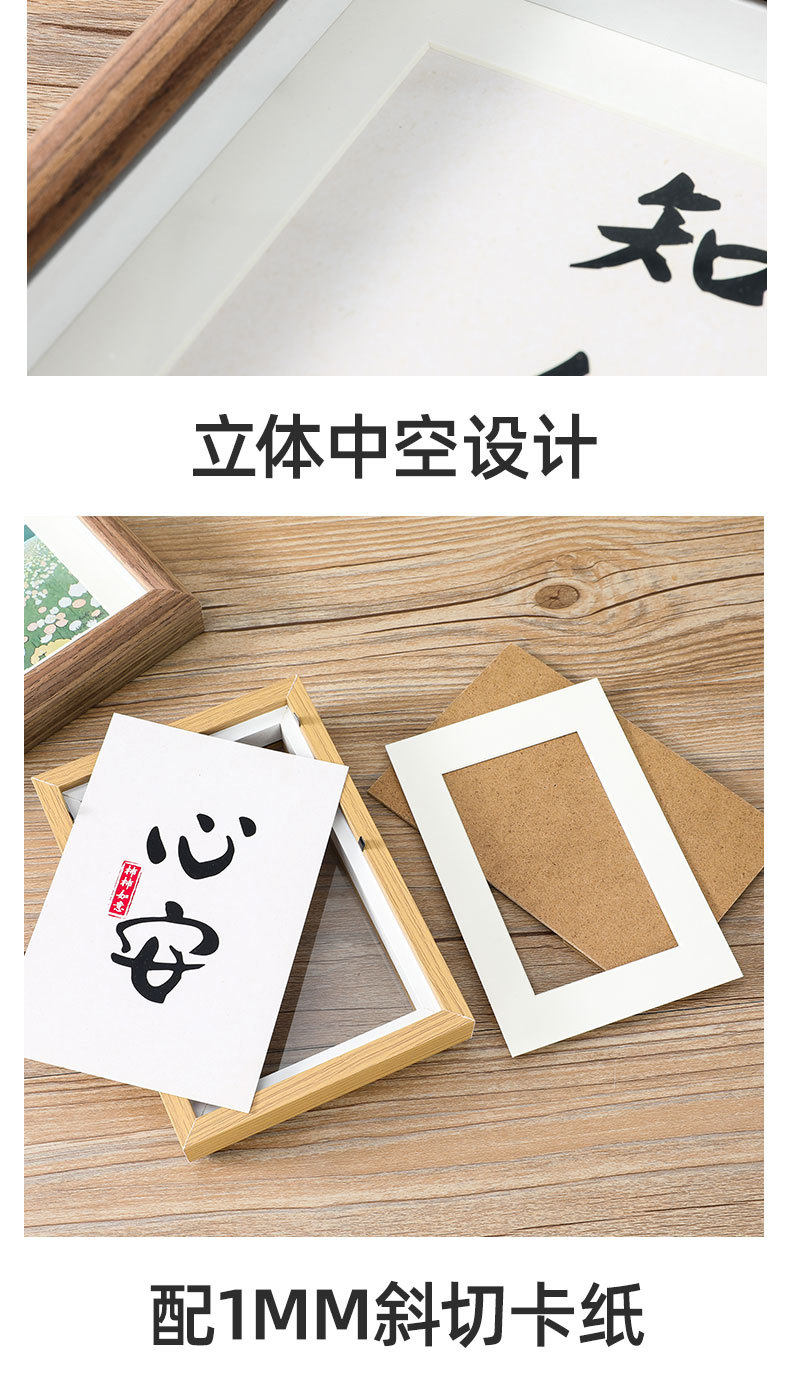 | Inner frame size | 4inch (inner diameter: 7.6*10.1cm),5 inch (inner diameter: 8.9*12.7cm),6 inch (inner diameter: 10.1*15.2cm),7 inch (inner diameter: 12.7*17.8cm),8 inch (inner diameter: 15.2*20.3cm),10 inch (inner diameter: 20.3*25.4cm),12 inch (inner diameter: 25.4*30.5cm),16 inch (inner diameter: 30*40cm),A4 (inner diameter: 21*29.7cm),A3 (inner diameter: 29.7*42cm),Square 4 inch (inner diameter: 10.1*10.1cm),Square 5 inch (inner diameter: 12.7*12.7cm),Square 6 inch (inner diameter: 15.2*15.2cm),Square 8 inch (inner diameter: 20.3*20.3cm),Square 9 inch (inner diameter: 22.8*22.8cm),Square 10 inch (inner diameter 25*25cm)4 palace grid,Square 10 inch (inner diameter 25*25cm)9 palace,7*12 inch (inner diameter: 17.8*30.5cm),5*10 inch (inner diameter 12.7*25.4cm),5*16 inch (inner diameter 13*40cm),Two-frame frame (inner diameter: 21*27.4cm) for hanging,Triple frame (inner diameter: 21*39cm) for hanging,Four-frame horizontal version (inner diameter: 21*50cm) for display,Four-frame vertical version (inner diameter: 27.2*37.2cm) wall hanging |
