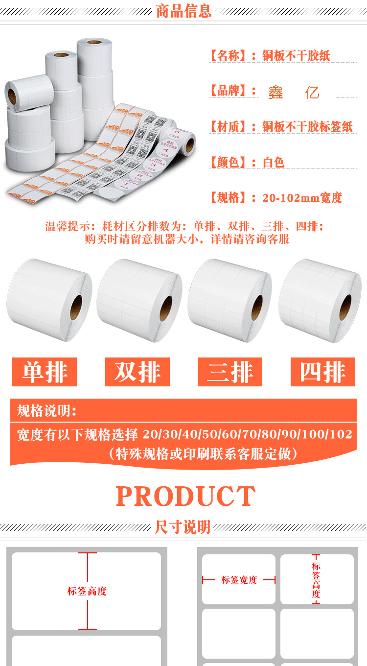 Coated paper adhesive 30*10*15*20*40*50*60*70*80*90 label paper barcode paper printing paste
