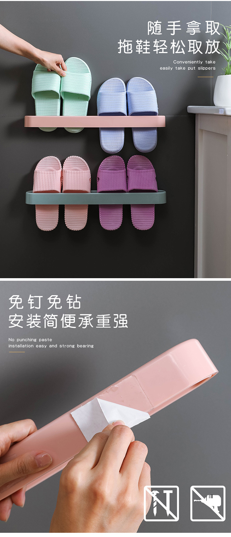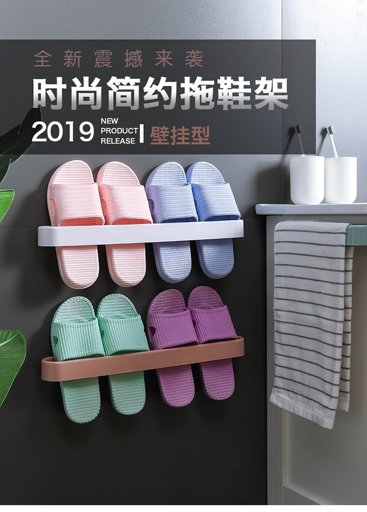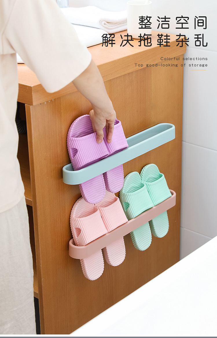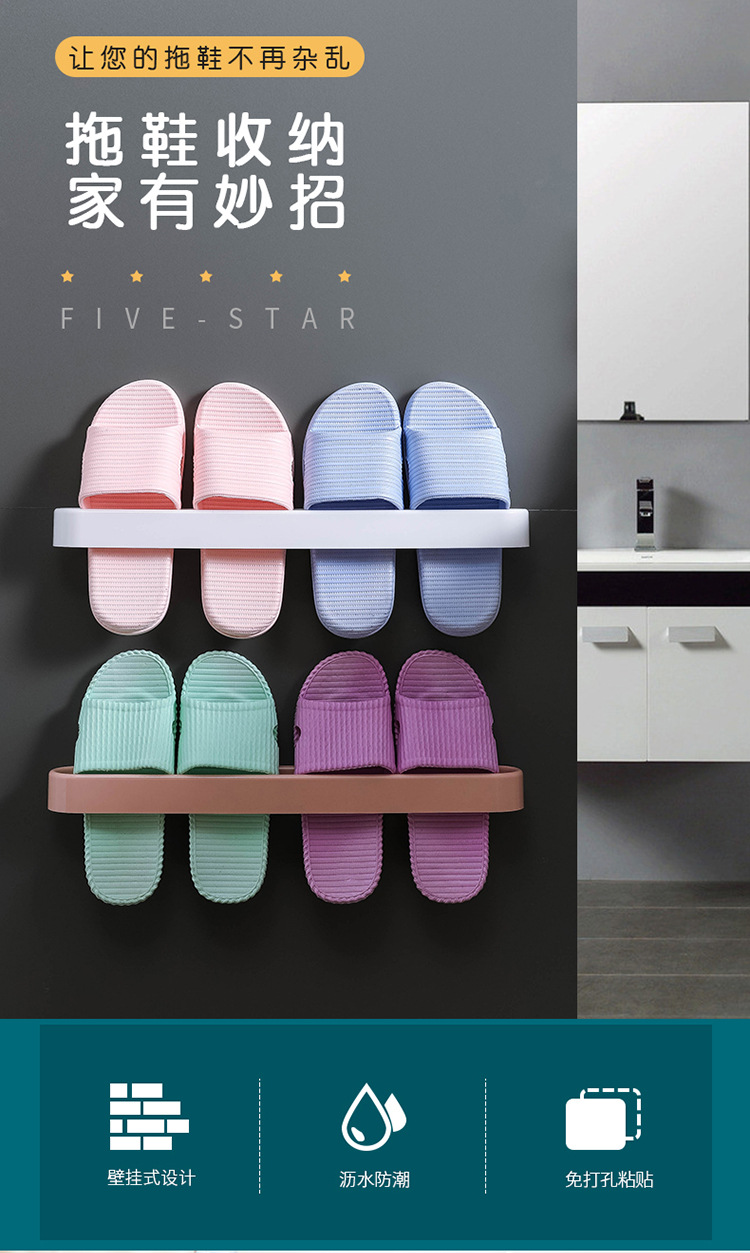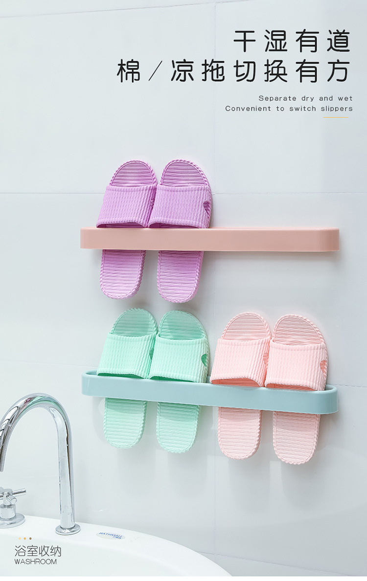 Bathroom Slipper Rack Wall-Mounted Punch-Free Wall-Mounted Bathroom Slipper Shoe Rack Hanging Dormitory Storage Dry and Wet Separation