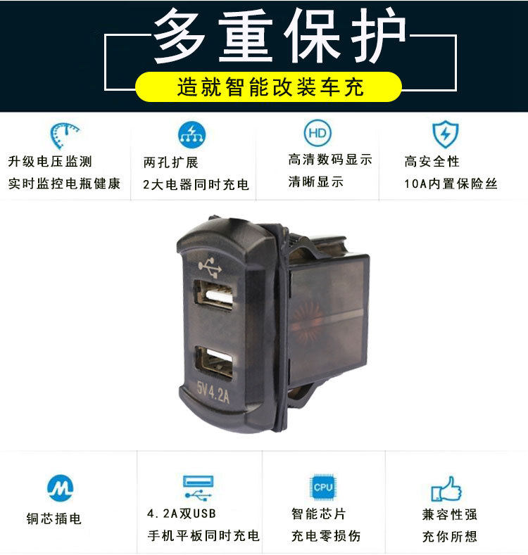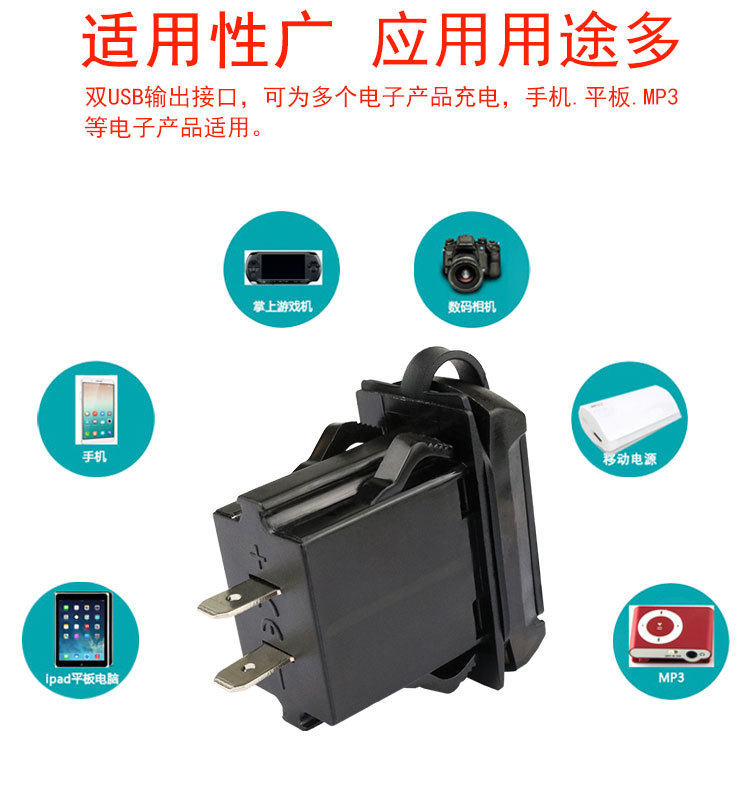 Motorcycle RV boat modification available switch type USB charger voltage strap 4.2A dual USB car charger