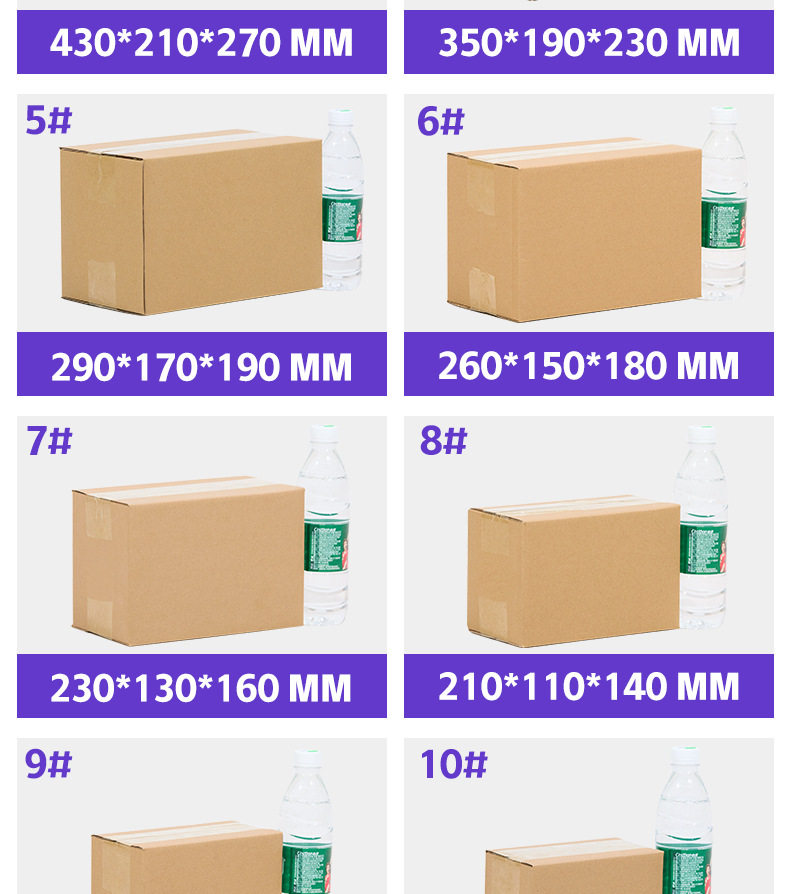 | Specifications and models | No. 13 130*80*45mm; three layers aa,No. 13 130*80*45mm; three layers of extra hard,No. 12 130*80*90mm; three layers aa,No. 12 130*80*90mm; three layers of extra hard,No. 12 130*80*90mm; three layers of super hard,No. 12 130*80*90mm; five layers aa,No. 12 130*80*90mm; five layers of extra hard/eb,No. 11 145*85*105mm; three layers aa,No. 11 145*85*105mm; three layers of extra hard,No. 11 145*85*105mm; three layers of super hard,No. 11 145*85*105mm; five layers of aa,No. 11 145*85*105mm; five layers of extra hard/eb,No. 11 145*85*105mm; five layers of super hard/eb,No. 10 175*95*115mm; three layers aa,No. 10 175*95*115mm; three layers of extra hard,No. 10 175*95*115mm; three layers of super hard,No. 10 175*95*115mm; five layers of aa,No. 10 175*95*115mm; five layers of extra hard/eb,No. 10 175*95*115mm; five layers of super hard/eb,No. 9 195*105*135mm; three layers aa,No. 9 195*105*135mm; three layers of extra hard,No. 9 195*105*135mm; three layers of super hard,No. 9 195*105*135mm; five layers of aa,No. 9 195*105*135mm; five layers of extra hard/eb,No. 9 195*105*135mm; five layers of super hard/eb,No. 8 210*110*140mm; three layers aa,No. 8 210*110*140mm; three layers of extra hard,No. 8 210*110*140mm; three layers of super hard,No. 8 210*110*140mm; five layers aa,No. 8 210*110*140mm; five layers of extra hard/eb,No. 8 210*110*140mm; five layers of super hard/eb,No. 7 230*130*160mm; three layers aa,No. 7 230*130*160mm; three layers of extra hard,No. 7 230*130*160mm; three layers of super hard,No. 7 230*130*160mm; five layers of aa,No. 7 230*130*160mm; five layers of extra hard/eb,No. 7 230*130*160mm; five layers of super hard/eb,No. 6 260*150*180mm; three layers aa,No. 6 260*150*180mm; three layers of extra hard,No. 6 260*150*180mm; three layers of super hard,No. 6 260*150*180mm; five layers aa,No. 6 260*150*180mm; five layers of extra hard/eb,No. 6 260*150*180mm; five layers of super hard/eb,No. 5 290*170*190mm; three layers aa,No. 5 290*170*190mm; three layers of extra hard,No. 5 290*170*190mm; three layers of super hard,No. 5 290*170*190mm; five layers aa,No. 5 290*170*190mm; five layers of extra hard/eb,No. 5 290*170*190mm; five layers of super hard/eb,No. 4 350*190*230mm; three layers of extra hard,No. 4 350*190*230mm; five layers aa,No. 4 350*190*230mm; five layers of extra hard/eb,No. 4 350*190*230mm; five layers of super hard/eb,No. 3 430*210*270mm; five layers aa,No. 3 430*210*270mm; five layers of extra hard/eb,No. 3 430*210*270mm; five layers of super hard/eb,No. 2 530*230*290mm; five layers aa,No. 2 530*230*290mm; five layers of extra hard/eb,No. 1 530*290*370mm; five layers aa,No. 1 530*290*370mm; five layers of extra hard/eb,Moving box 600*400*500mm; five layers of extra hard/eb,Moving box 600*400*500mm; five layers of super hard/eb,K–1#180*90*80mm; three layers of extra hard,K–1#180*90*80mm; five layers of extra hard/eb,Positive 12#120*120*120mm; three layers of extra hard,Positive 12 # 120*120*120mm; five layers of extra hard/eb,Positive 15#150*150*150mm; three layers of extra hard,Positive 15#150*150*150mm; five layers of extra hard/eb,Positive 20#200*200*200mm; three layers of extra hard,Positive 20#200*200*200mm; five layers of extra hard/eb,Positive 25#250*250*250mm; three layers of extra hard,Positive 25#250*250*250mm; five layers of extra hard/eb,Positive 30#300*300*300mm; three layers of extra hard,Positive 30#300*300*300mm; five layers of extra hard/eb,Positive 35#350*350*350mm; three layers of extra hard,Positive 35#350*350*350mm; five layers of extra hard/eb,Positive 40#400*400*400mm; three layers of extra hard,Positive 40#400*400*400mm; five layers of extra hard/eb,Positive 40#400*400*400mm; five layers of super hard/eb,K–7#(500*400*300mm) bc pit; five layers of extra hard/eb,K–7#(500*400*300mm)bc pit; five layers of super hard/eb,K–8#500*400*400mm; five layers of extra hard/eb,K–8#500*400*400mm; five layers of super hard/eb |