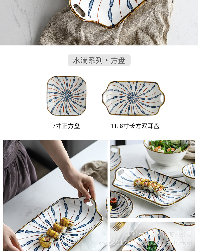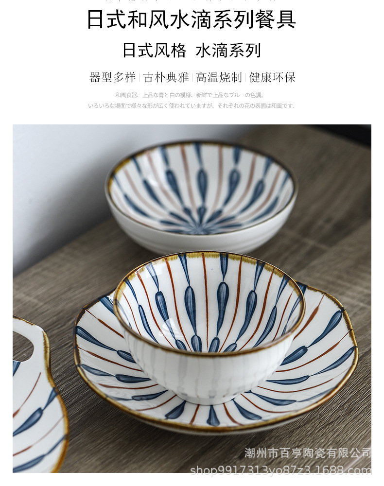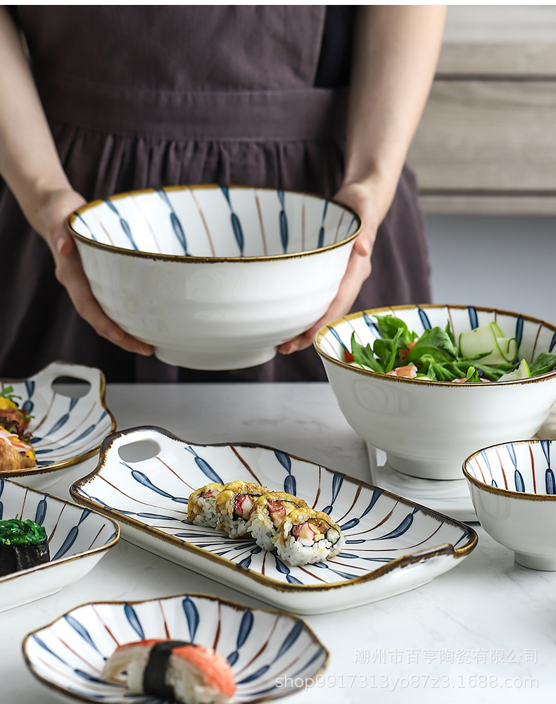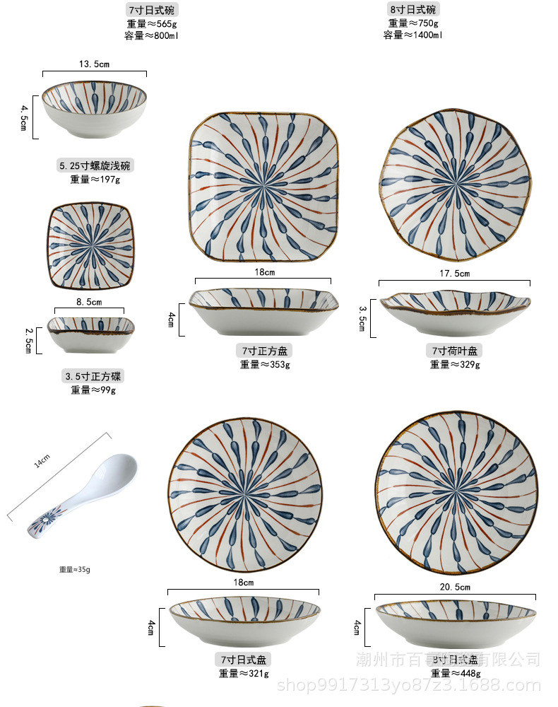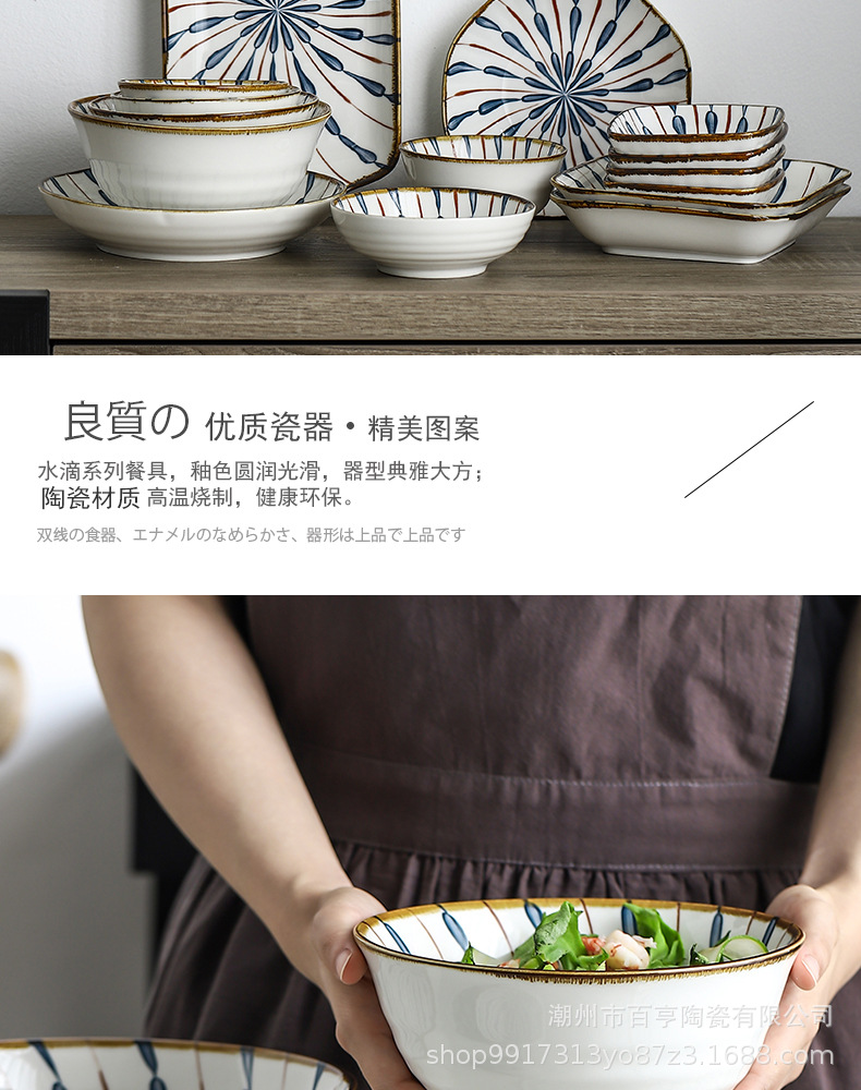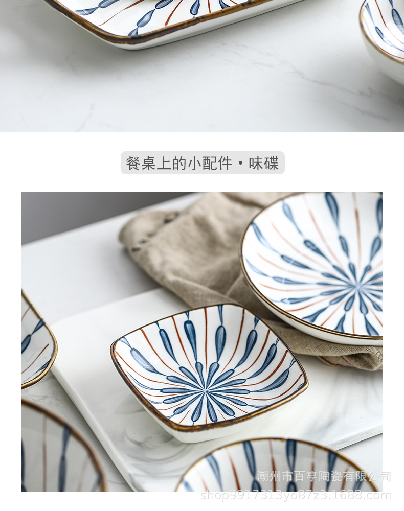 Sparks Japanese Style Hefeng Ceramic Bowl and Dish Plate Retro Underglaze Color Household Rice Bowl Noodles Bowl and Dish Tableware Set