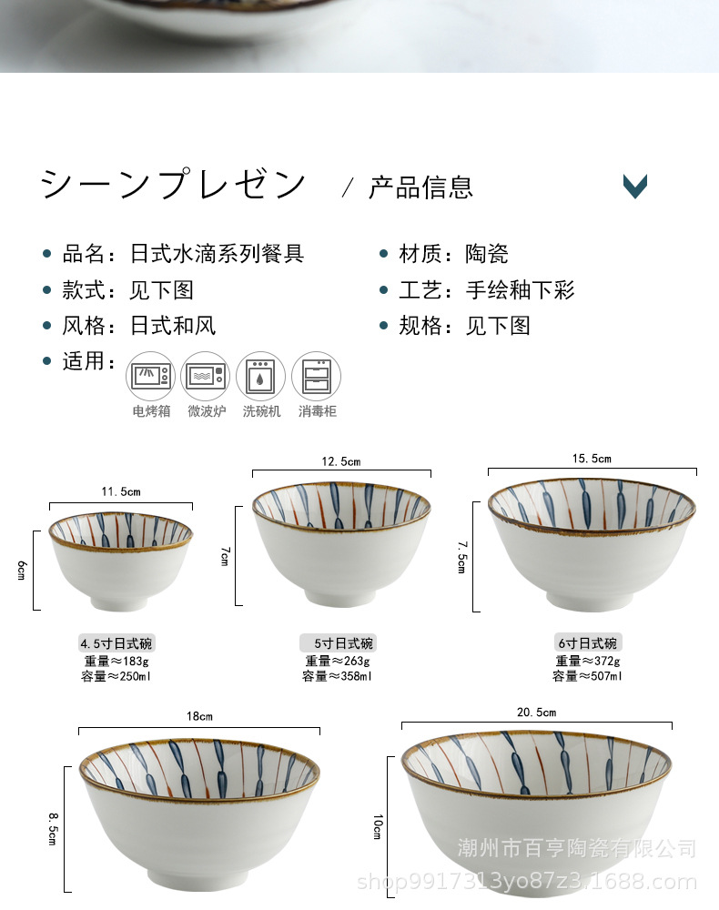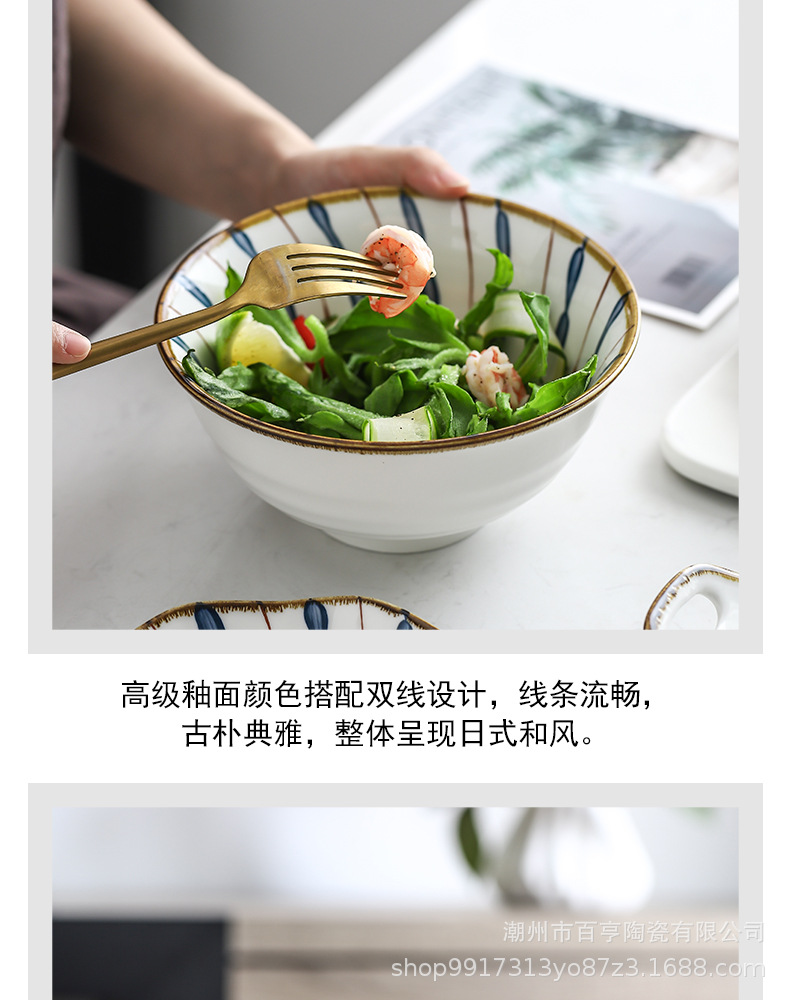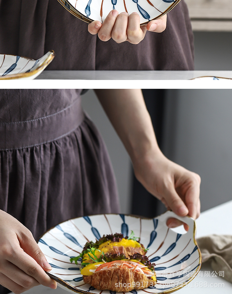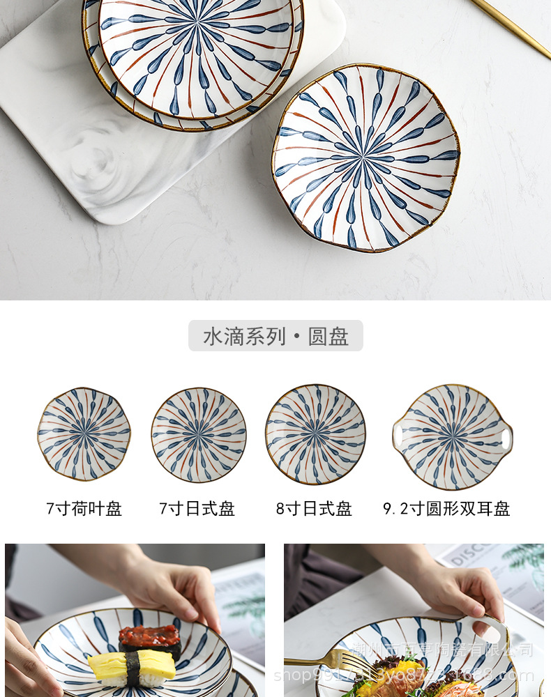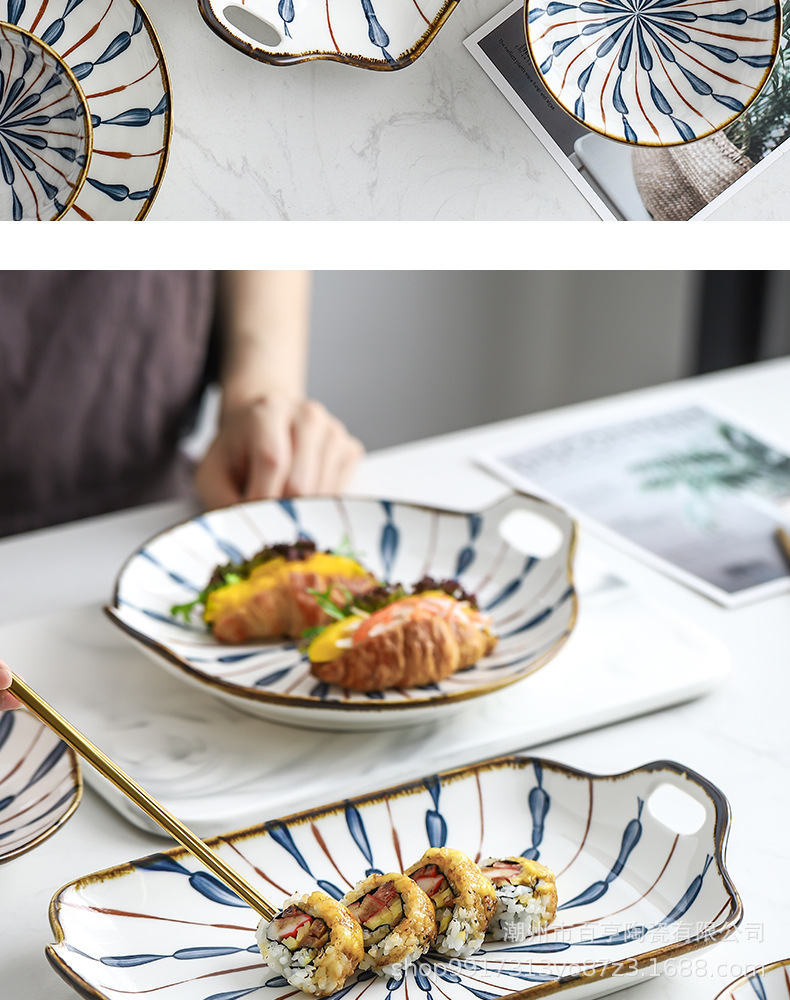 Sparks Japanese Style Hefeng Ceramic Bowl and Dish Plate Retro Underglaze Color Household Rice Bowl Noodles Bowl and Dish Tableware Set