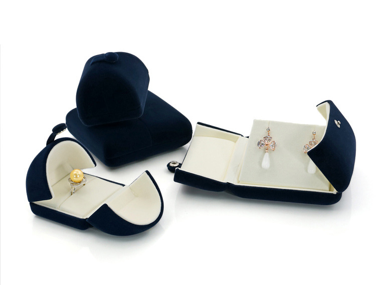 Double-open dark blue flannel creative proposal ring box diamond ring box wedding ring box pendant bracelet necklace bracelet box