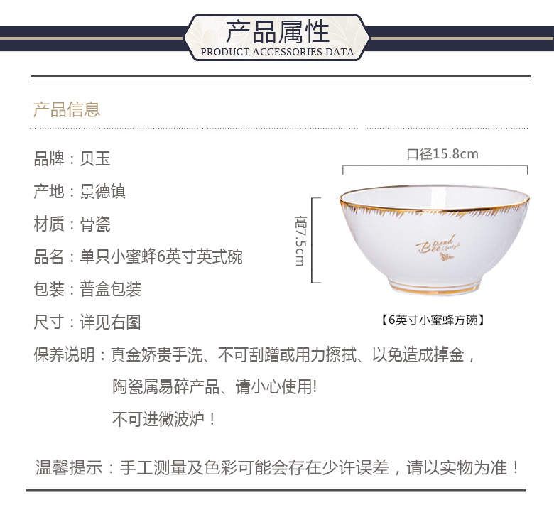 | Color | 4.5-inch small bee English Bowl [full box of 132]],5-inch Bee English Bowl [144 in Full Box]],6-inch bee English Bowl [box of 88]] |