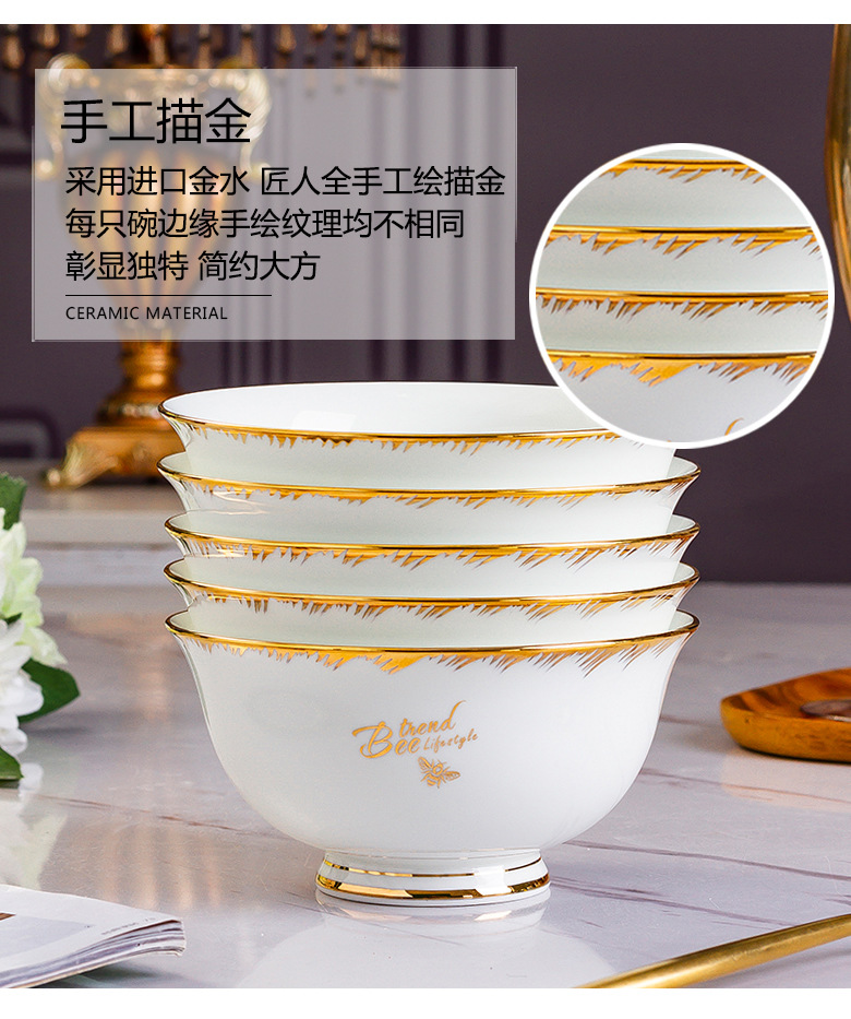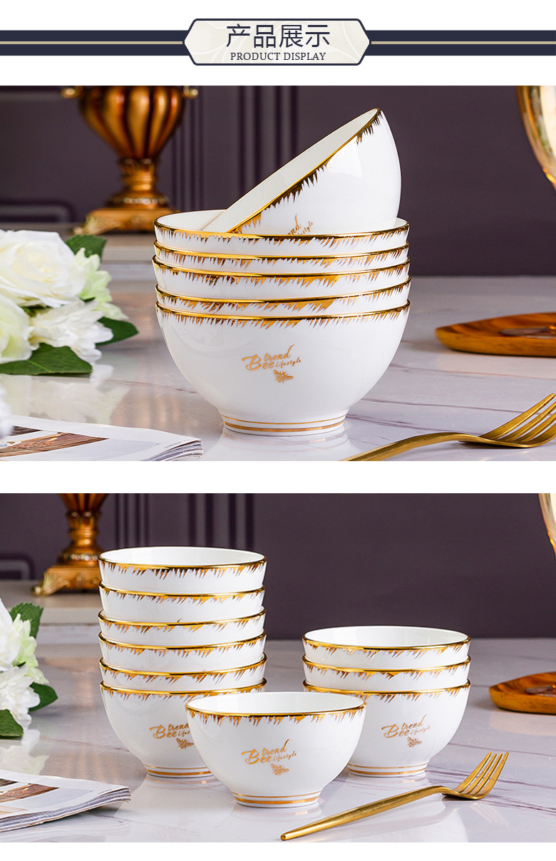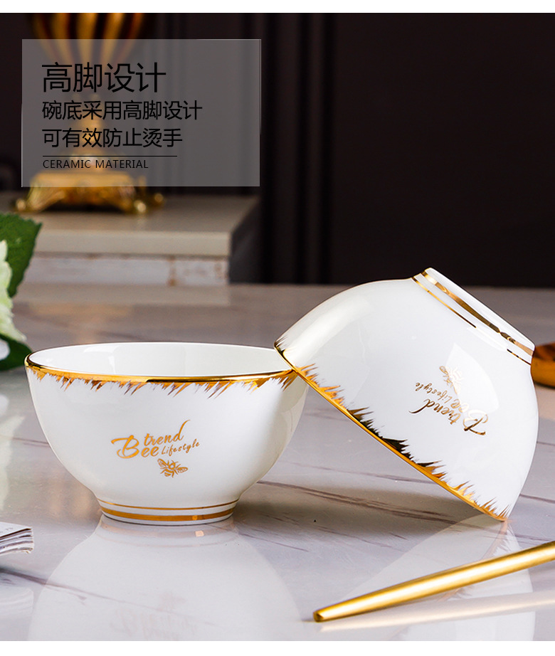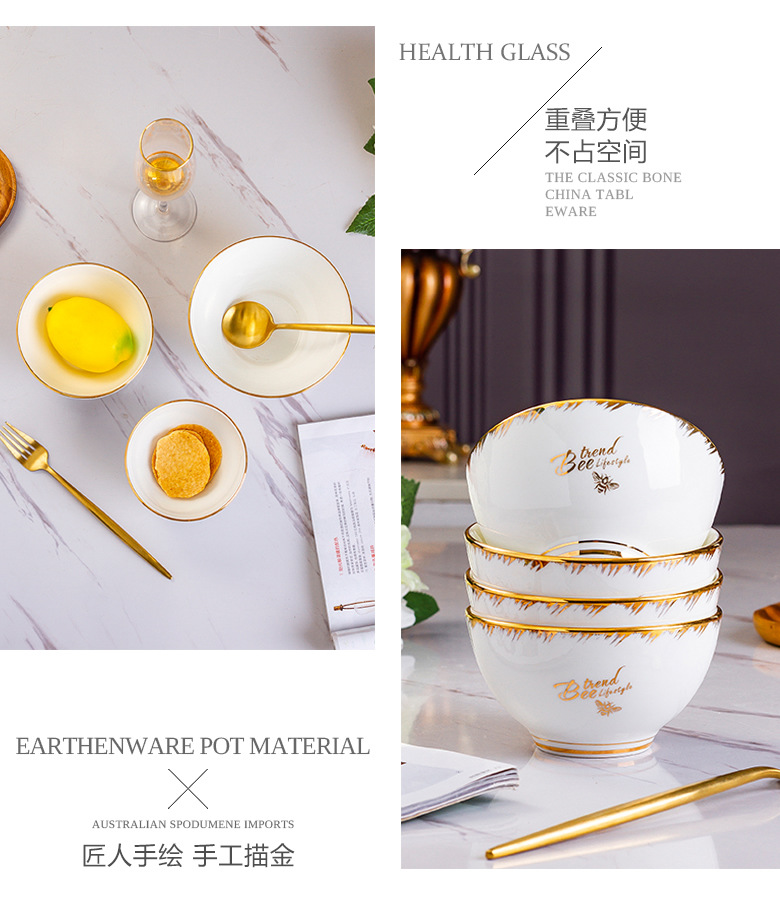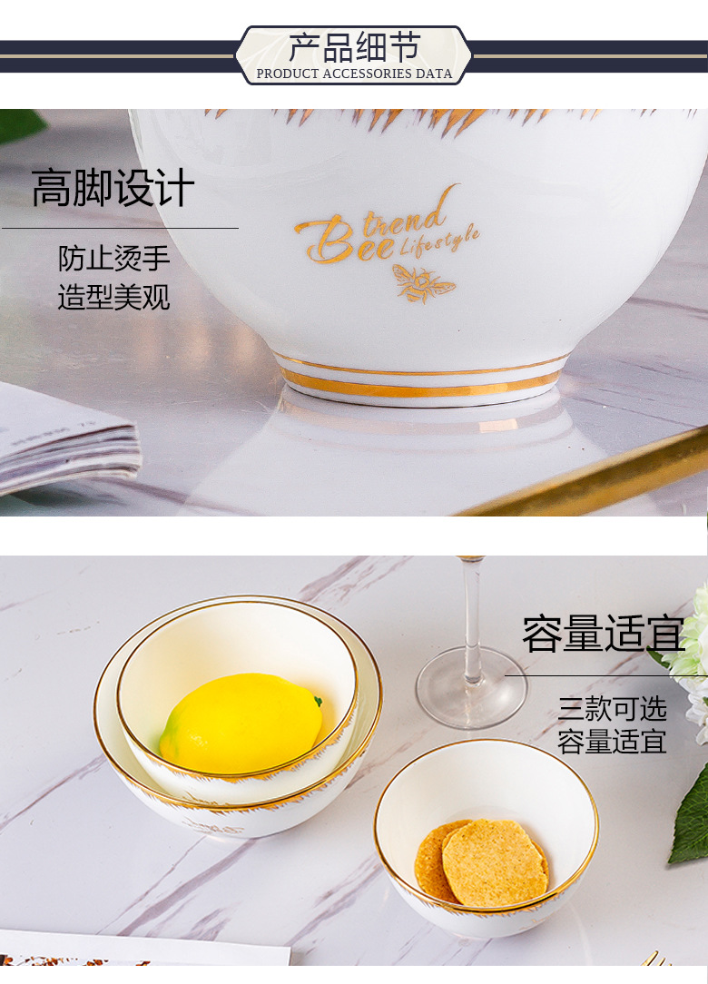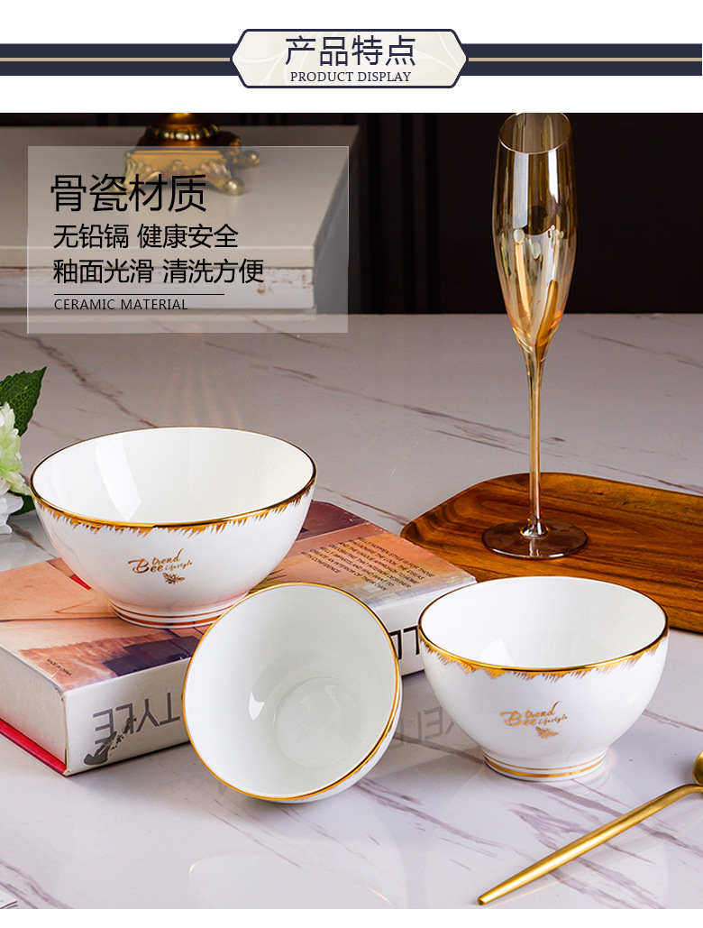 Beiyu Little Bee European-style Ceramic Bowl Household Dining Bone China Rice Bowl Set Rice Bowl Large Soup Bowl Instant Noodle Bowl