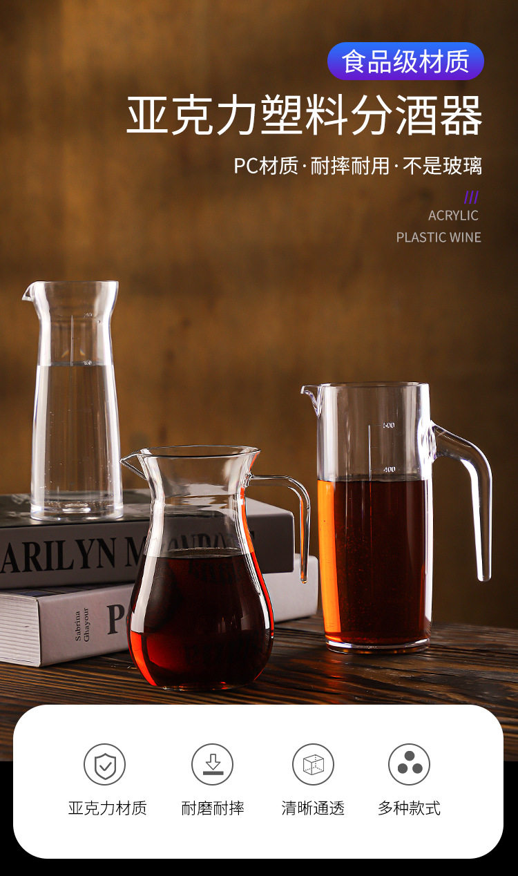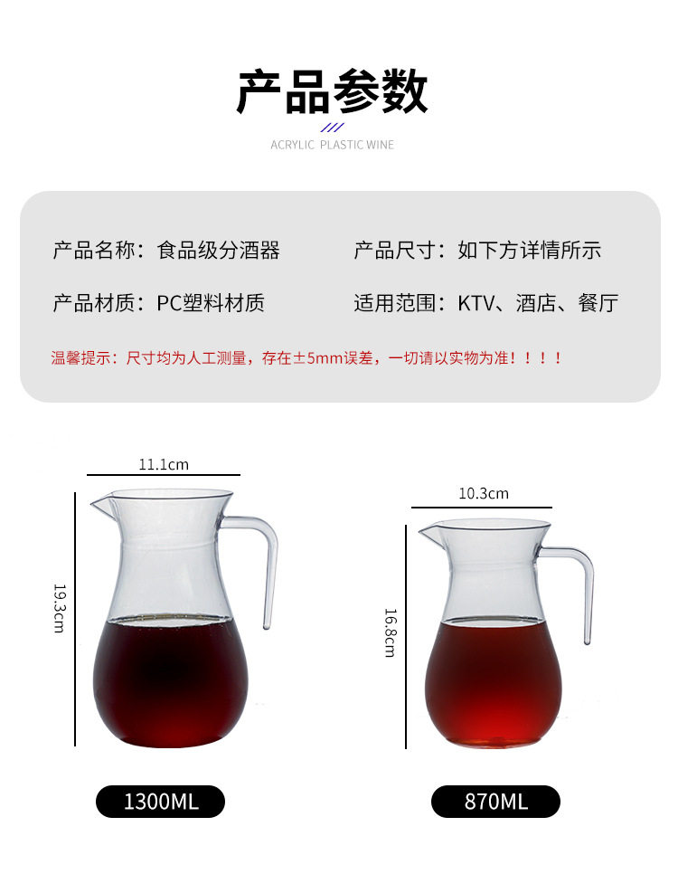 PC Jug Acrylic Wine Dispenser White Wine Decanter Handle with Scale Hotel Transparent Plastic Wine Dispenser