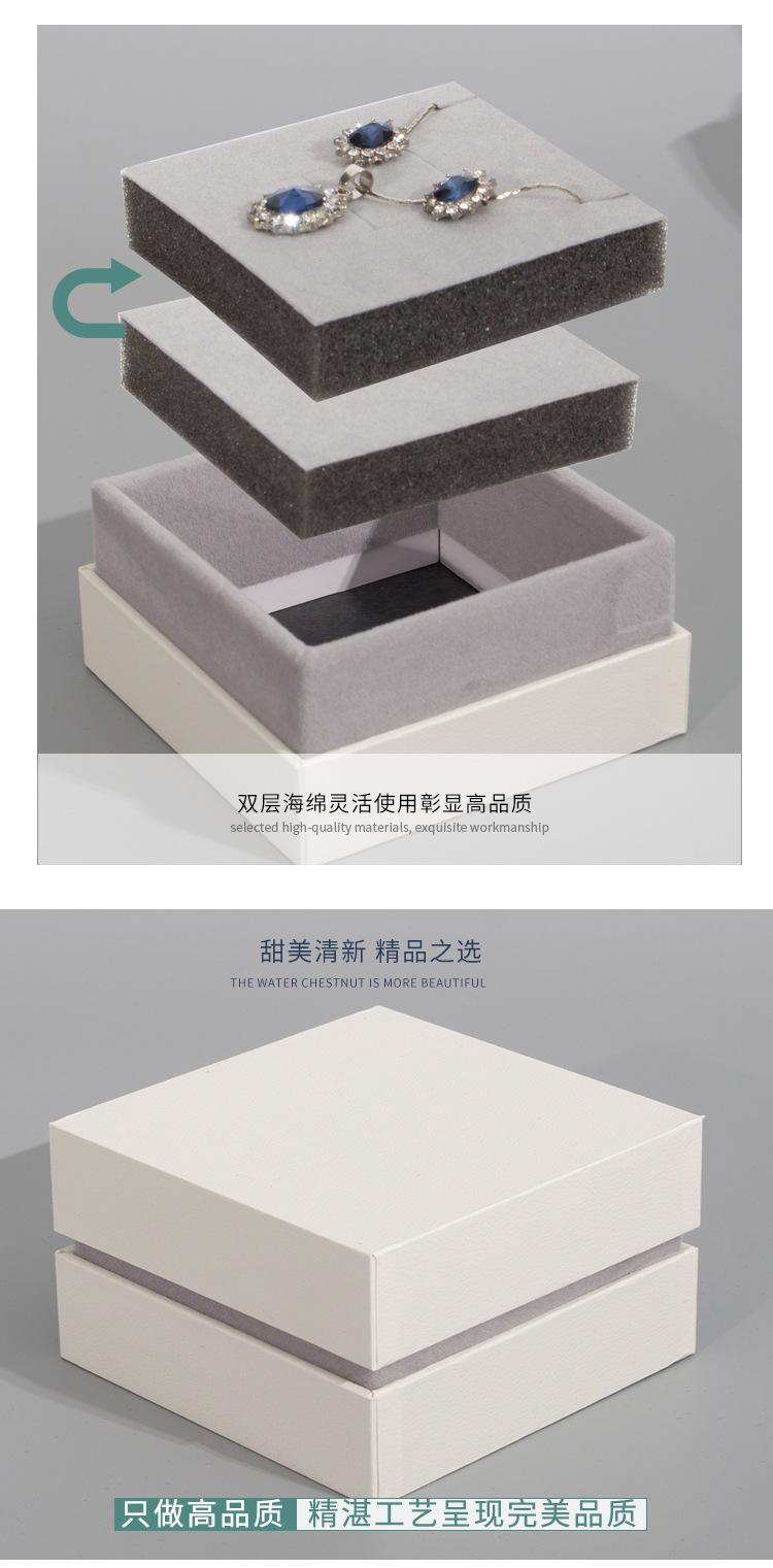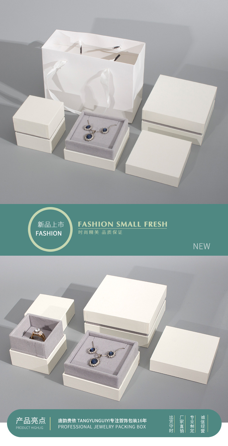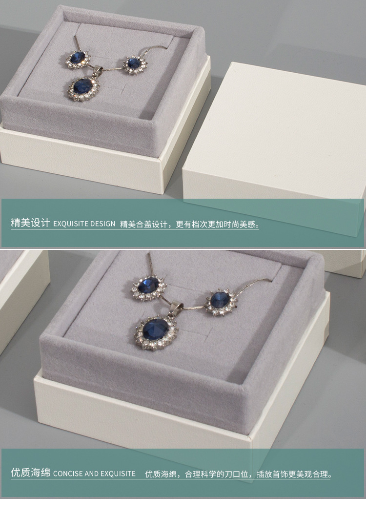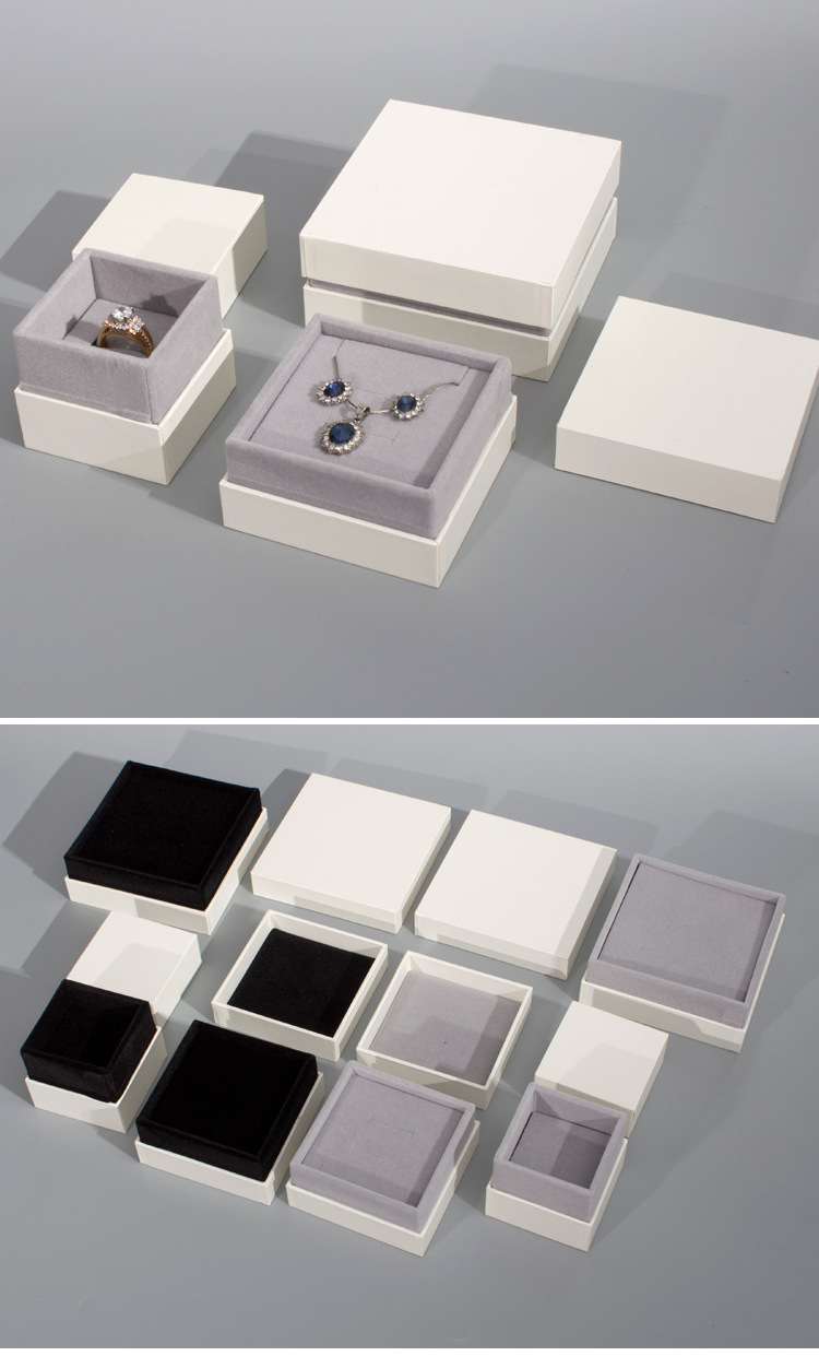Jewelry Packaging three-layer shape white leather paper with black velvet and gray velvet ring earrings necklace jewelry box