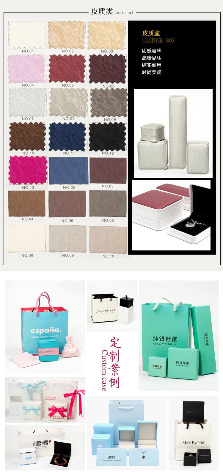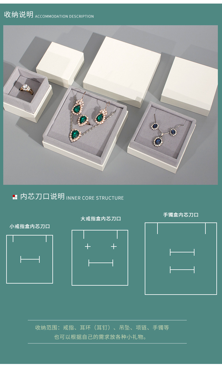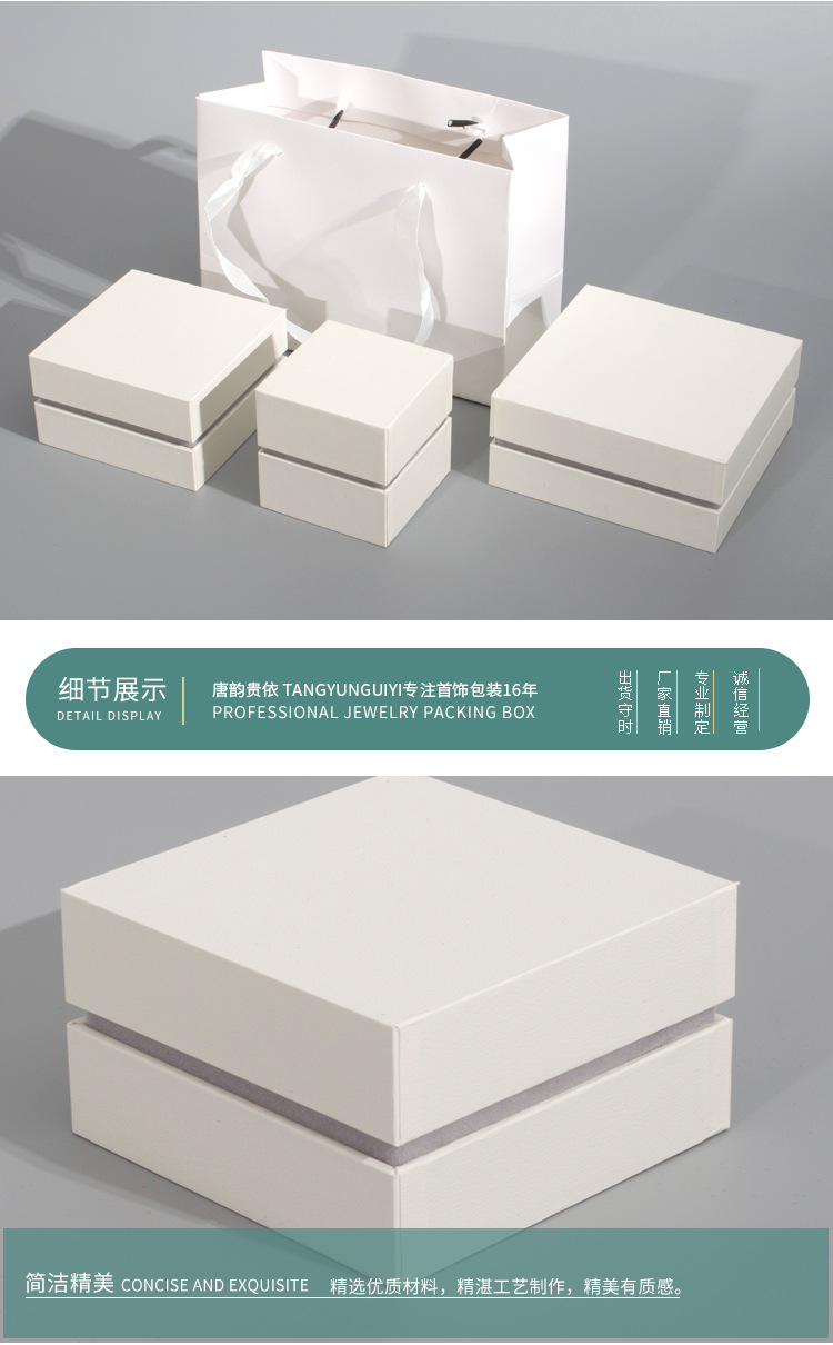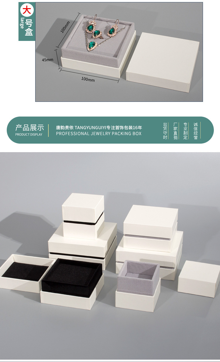 Jewelry Packaging three-layer shape white leather paper with black velvet and gray velvet ring earrings necklace jewelry box