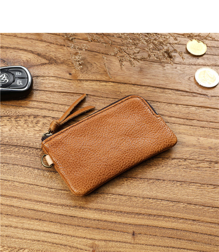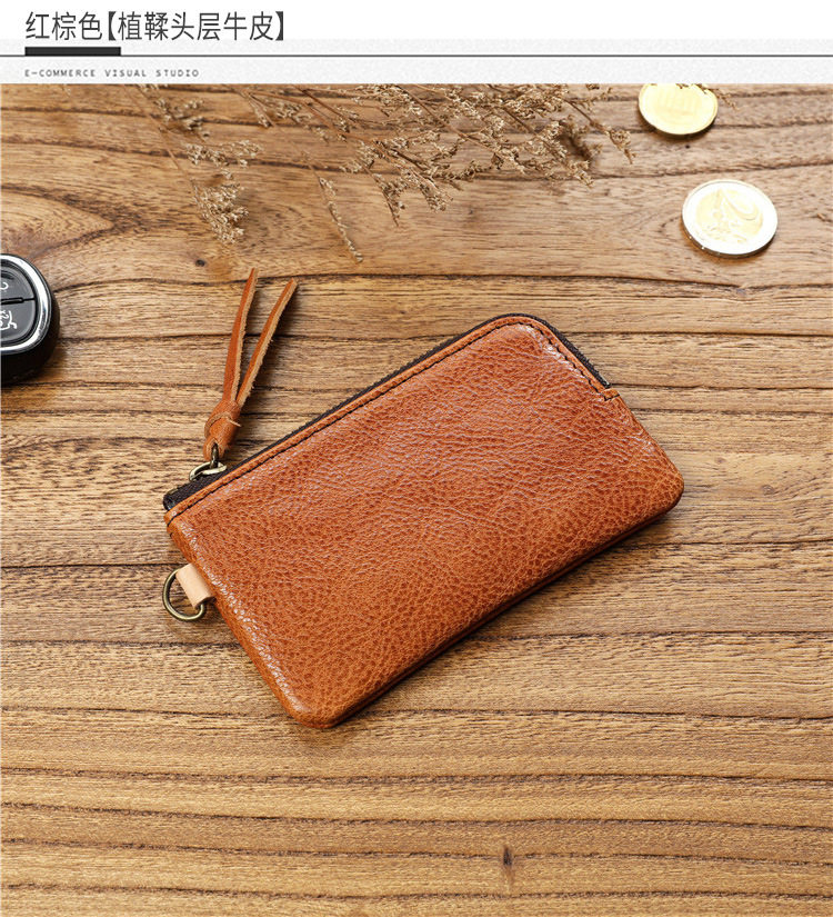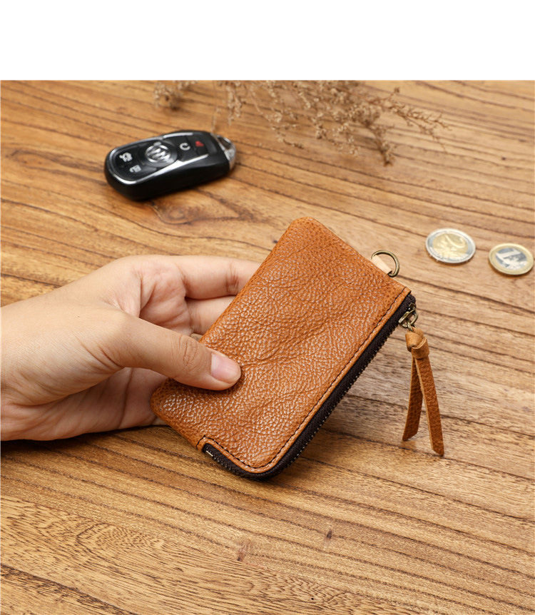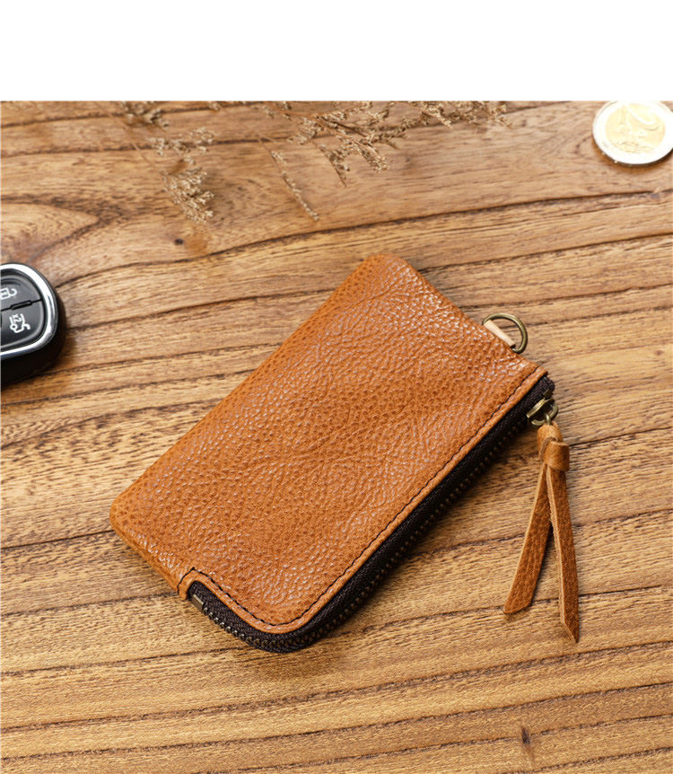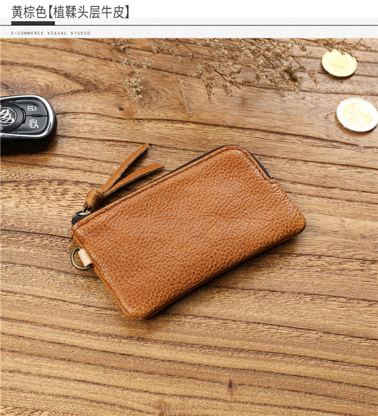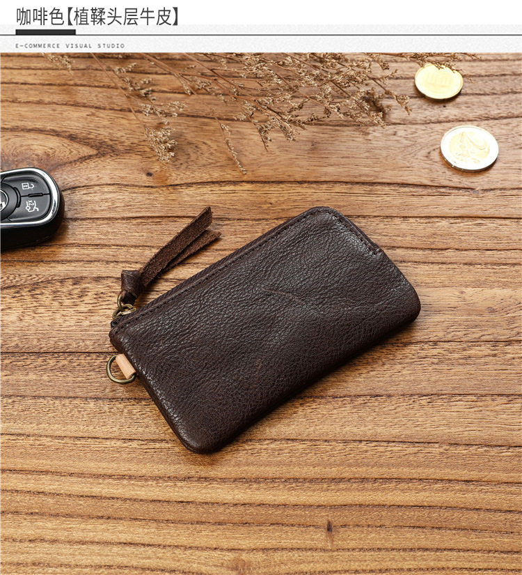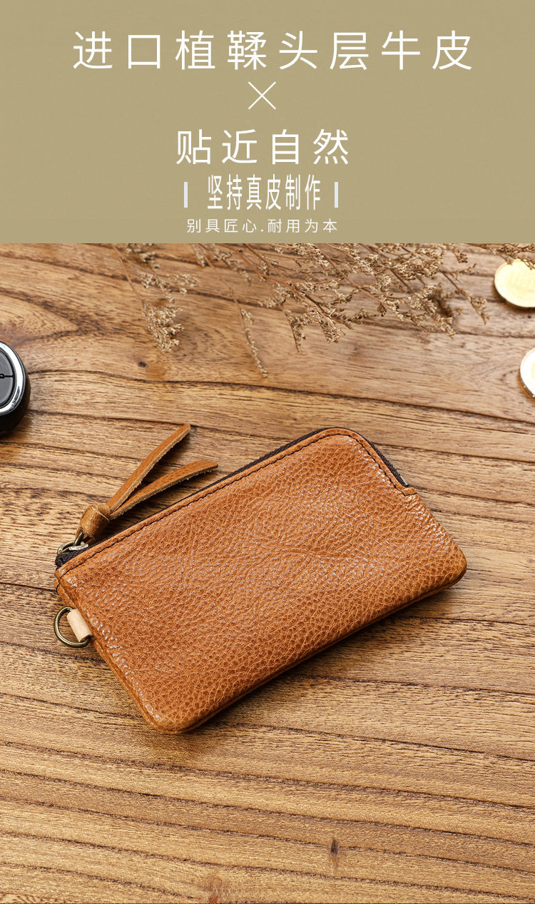 Men's Short Genuine Leather Zipper Wallet, Vegetable-Tanned First-Layer Cowhide Coin Purse, Multi-Functional Key Bag, Women's Key Bag
