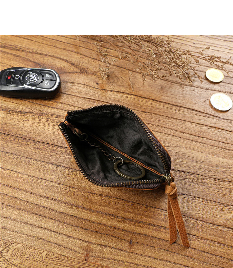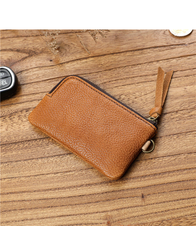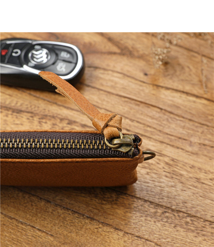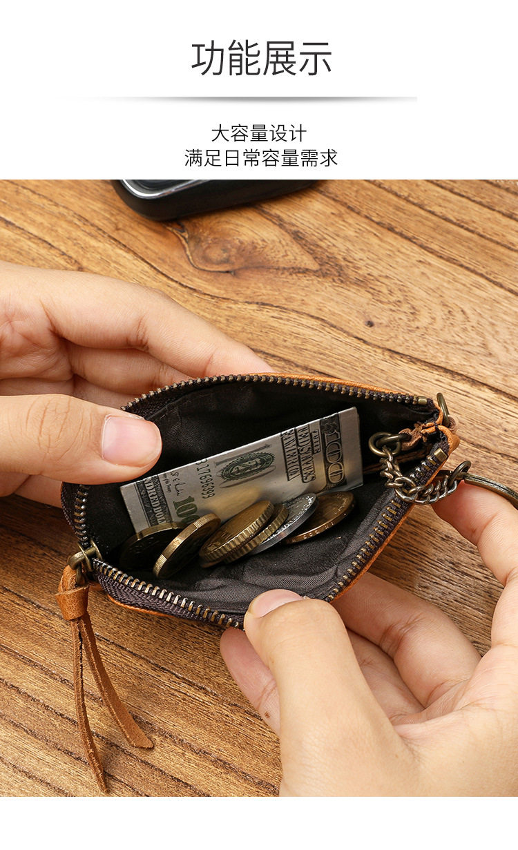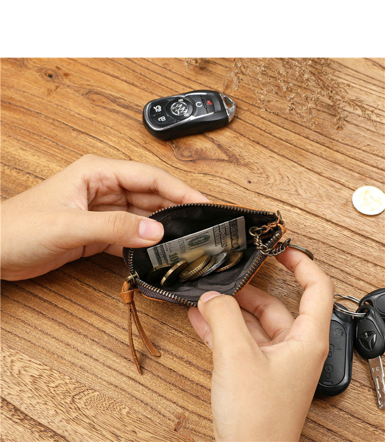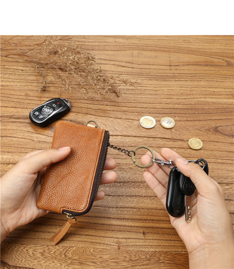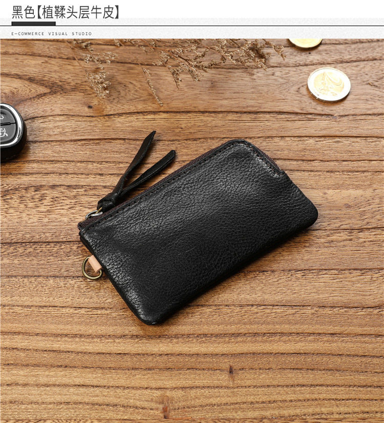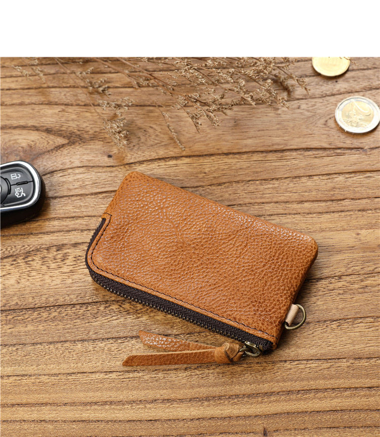 Men's Short Genuine Leather Zipper Wallet, Vegetable-Tanned First-Layer Cowhide Coin Purse, Multi-Functional Key Bag, Women's Key Bag