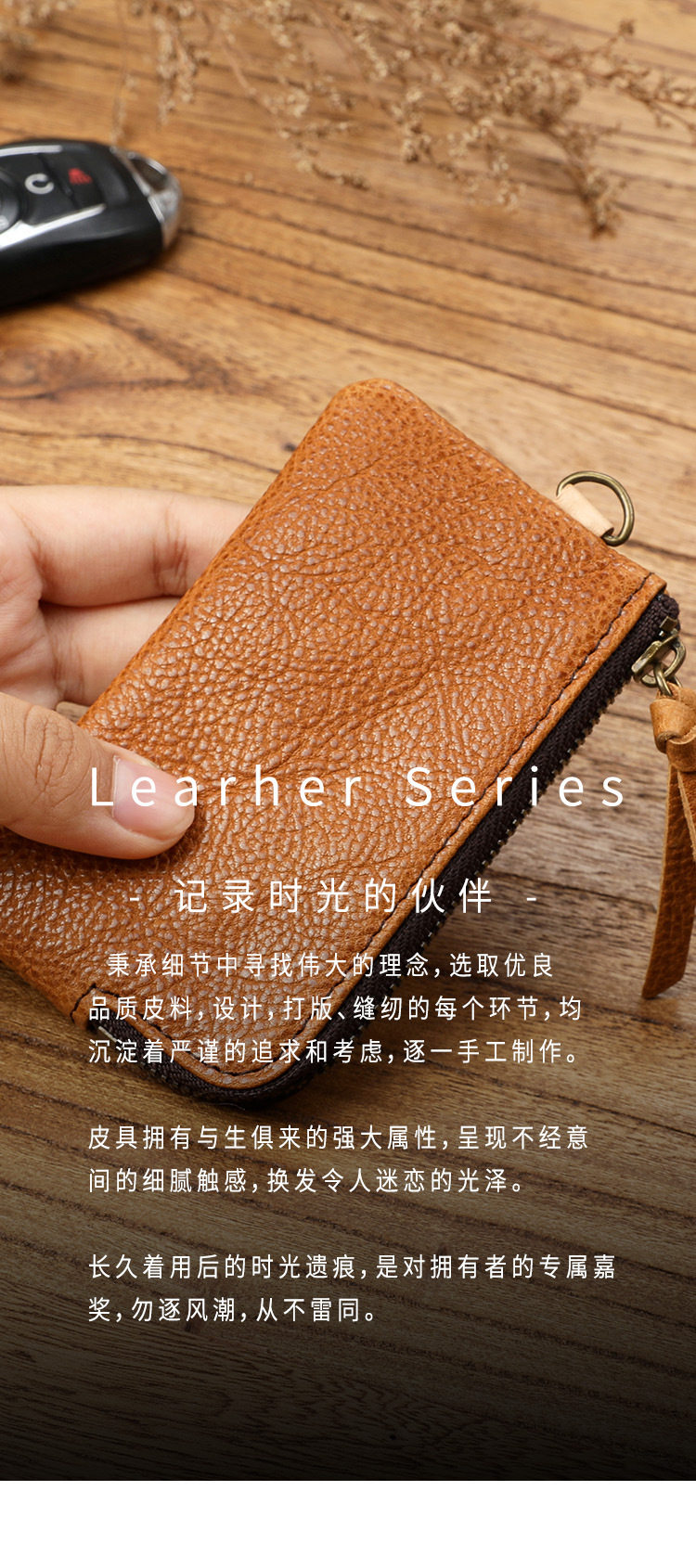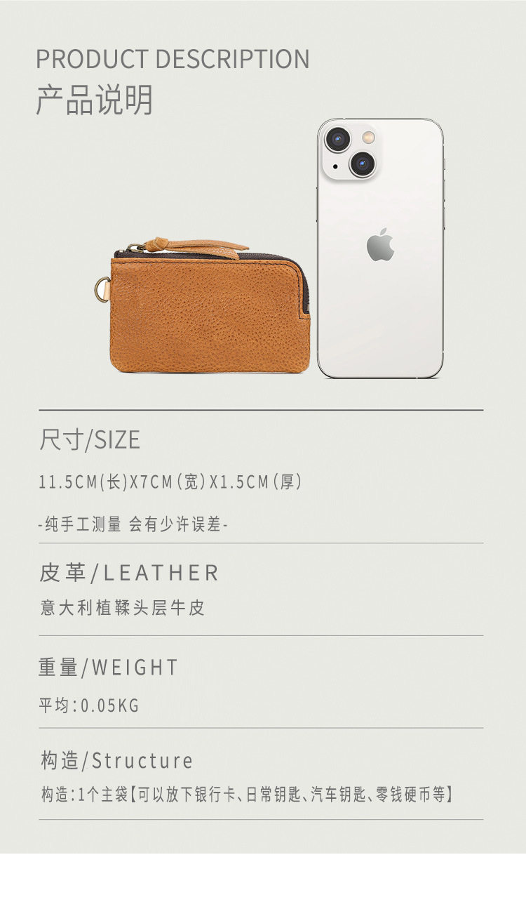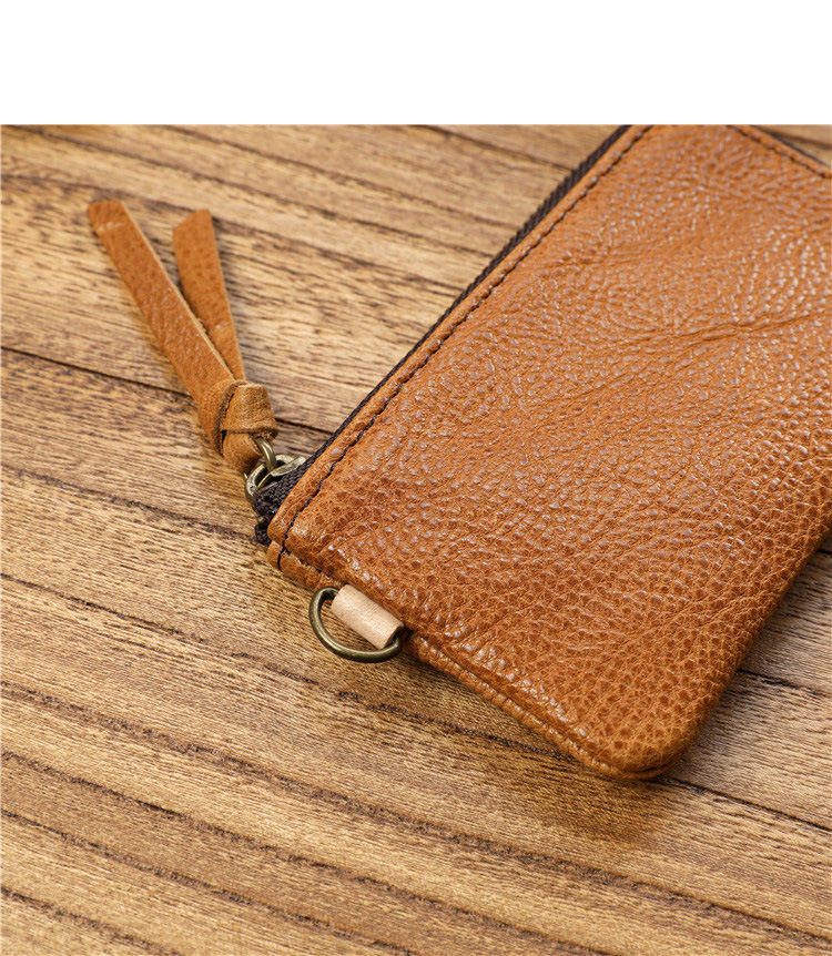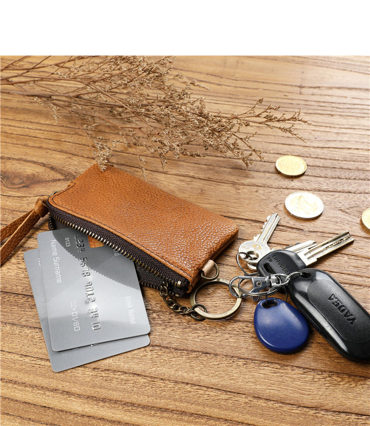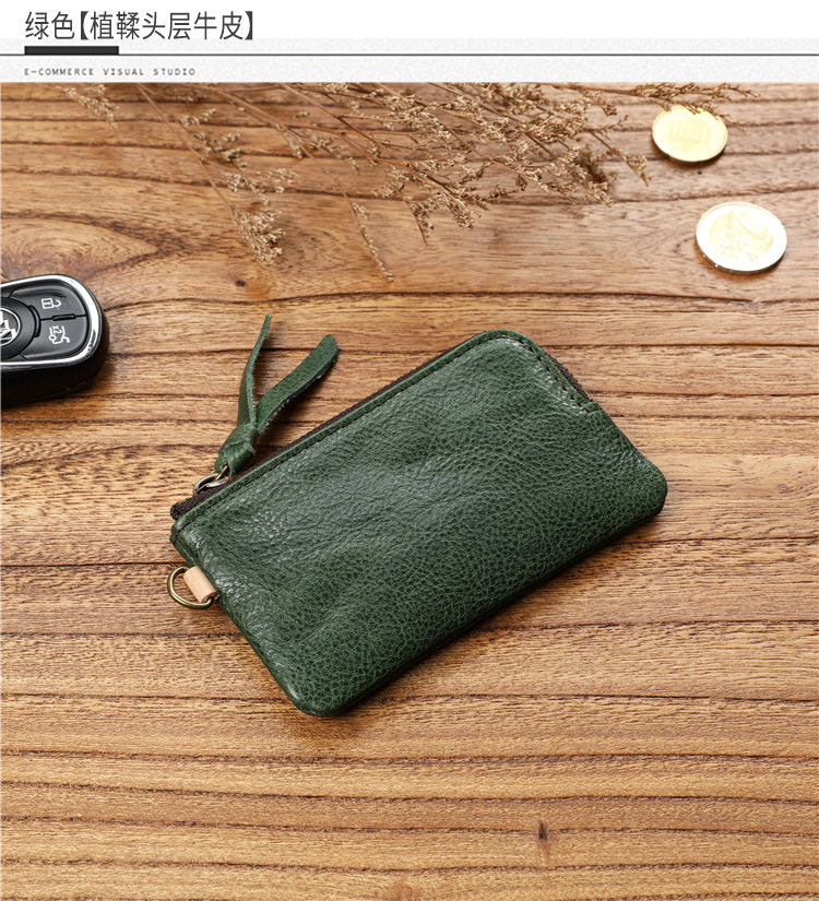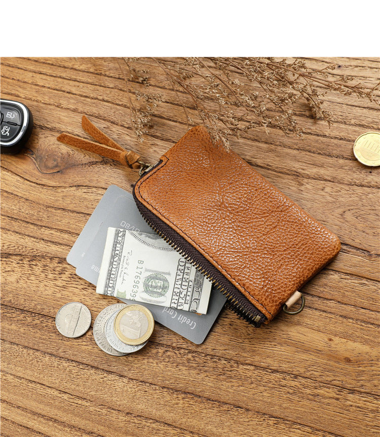 Men's Short Genuine Leather Zipper Wallet, Vegetable-Tanned First-Layer Cowhide Coin Purse, Multi-Functional Key Bag, Women's Key Bag