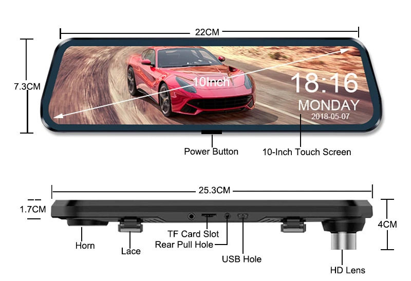 | Color classification | 5.5inch touch screen dual recording (front 1080p + rear 720p),10inch full screen dual recording (front 1080p + rear 1080p),10inch full screen dual recording (front 2k + rear 1080p) + no card,10inch full screen dual recording (front 2k+rear 1080p+wifi),10inch three recordings (front 2k+middle 1080p+rear 1080p+wifi),10inch full screen dual recording (front 2k + rear 1080p + wifi + gps track) + no card,10inch full screen dual recording (front 4k + rear 1080p + wifi),10inch full screen dual recording (front 4k+rear 1080p+wifi+gps track),10inch dual recording (front 4k+rear 2k+wifi+adas+bsd),10inch dual recording (front 4k+rear 2k+wifi+adas+bsd+gps),32g card,64g card,128g card |