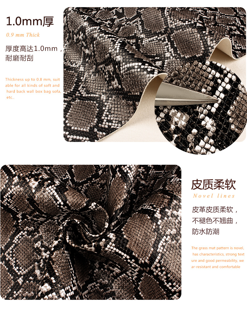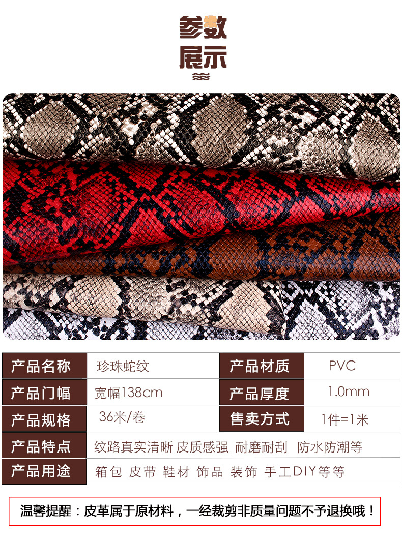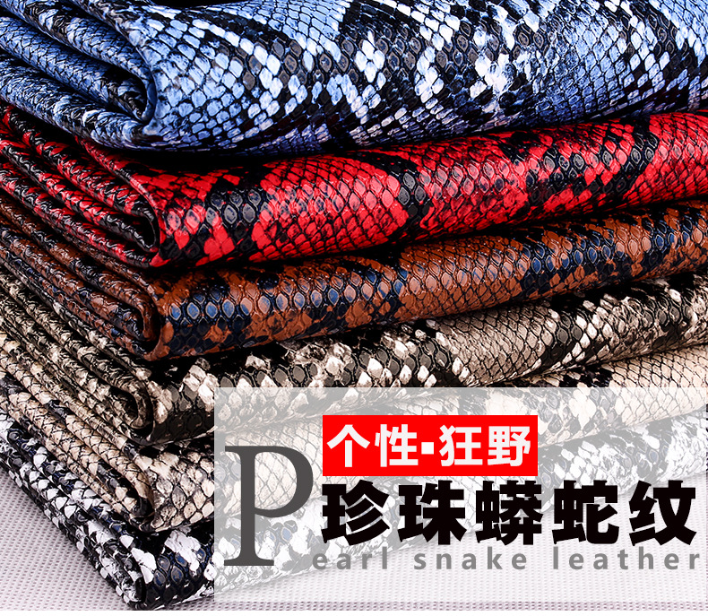 Yiwu manufacturers pearl snake pattern leather fabric luggage belt shoes imitation leather 1.0 thick pvc Artificial Leather wholesale