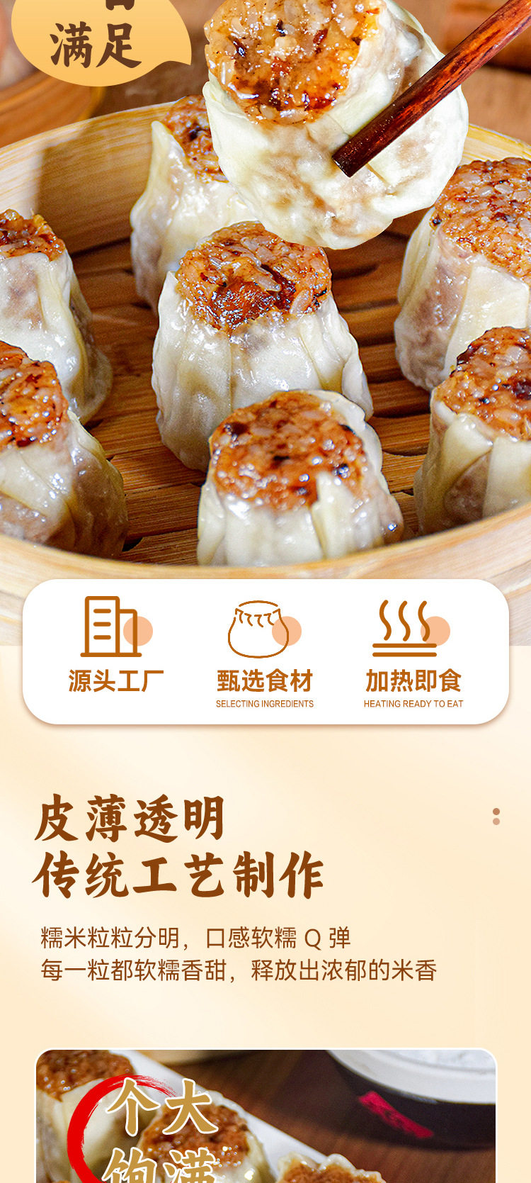 Source Manufacturer Cantonese-Style Glutinous Rice Siomai Breakfast Original Siomai Kidsren's Breakfast Semi-Finished Instant Quick-Frozen Food