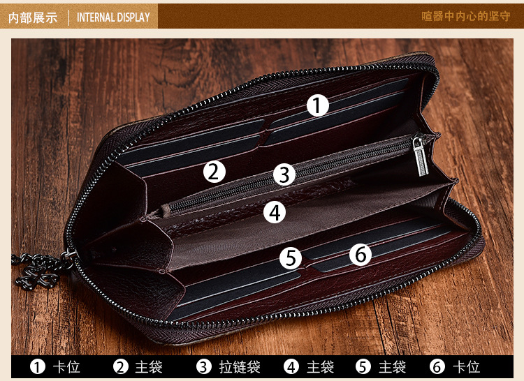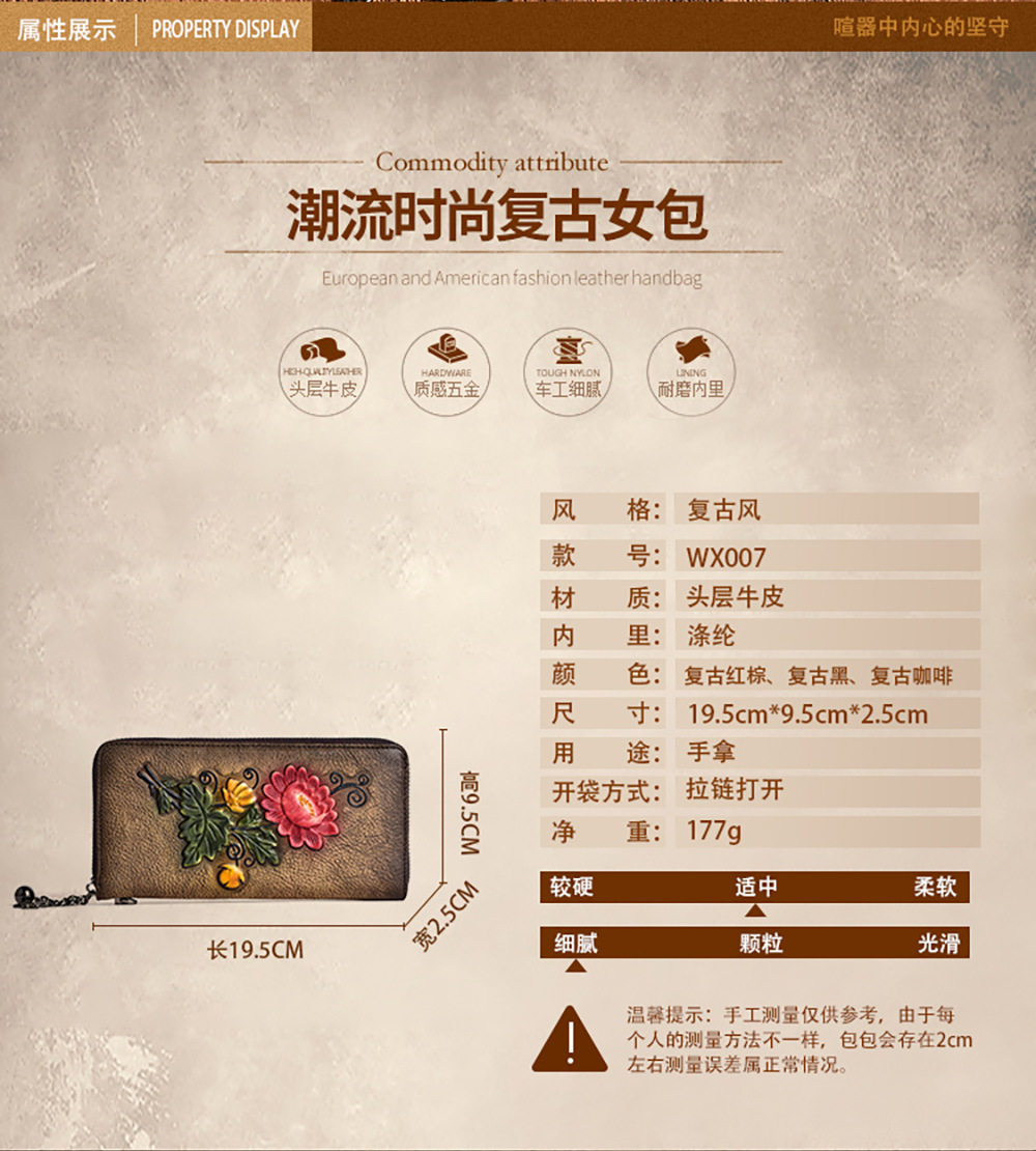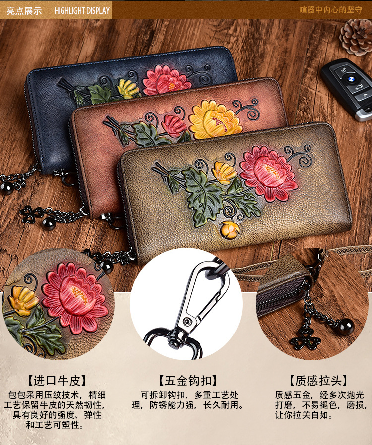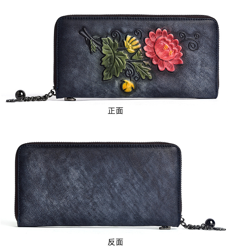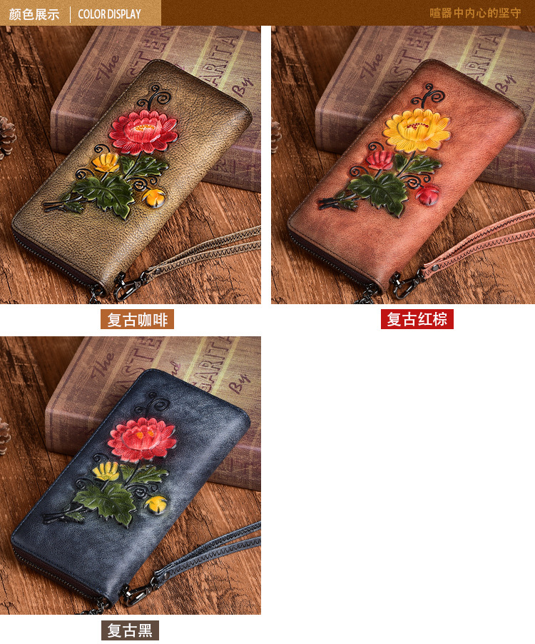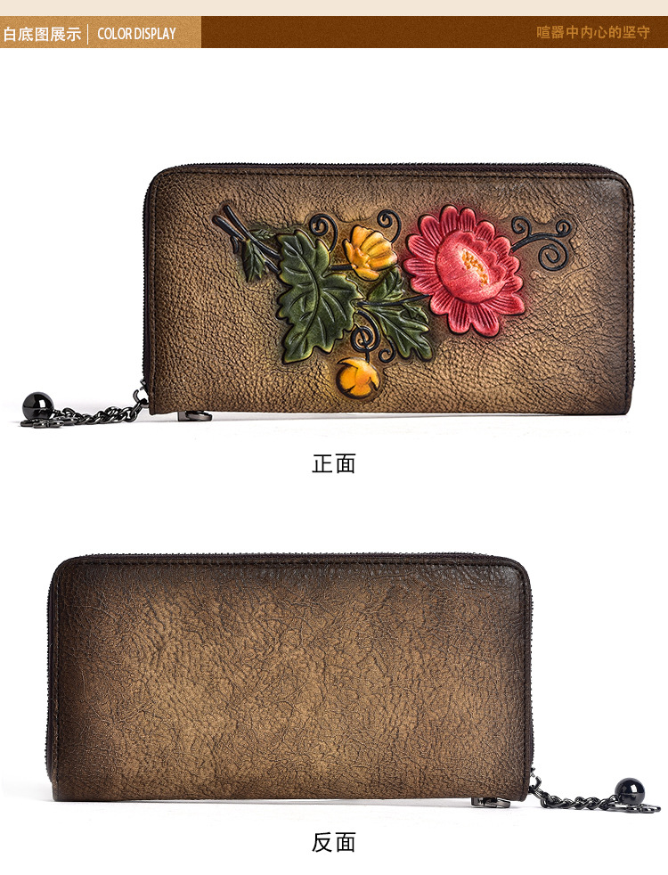 Factory Direct Sales New Anti-Theft Wallet for Women, Vegetable-Tanned Leather, Women's Zipper Bag, Vintage Embossed Color-Washed High-End Practical