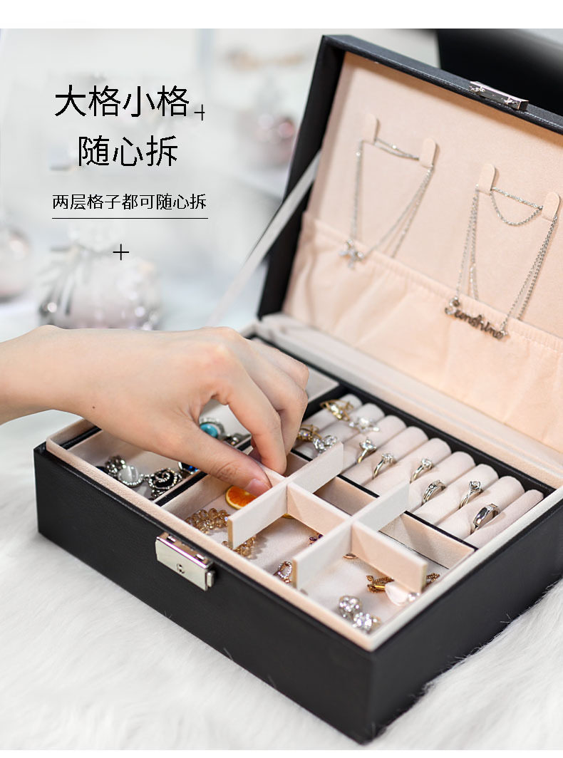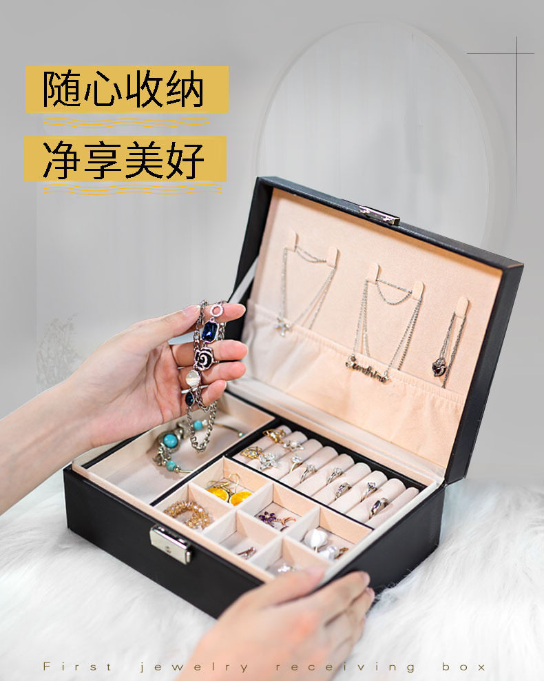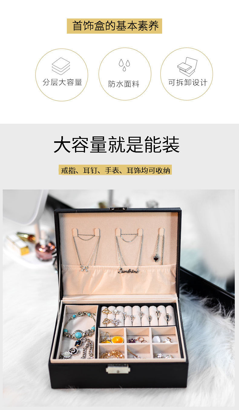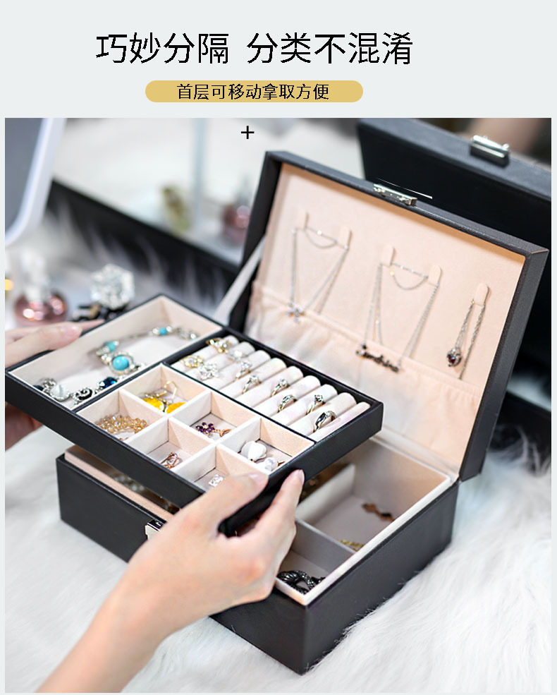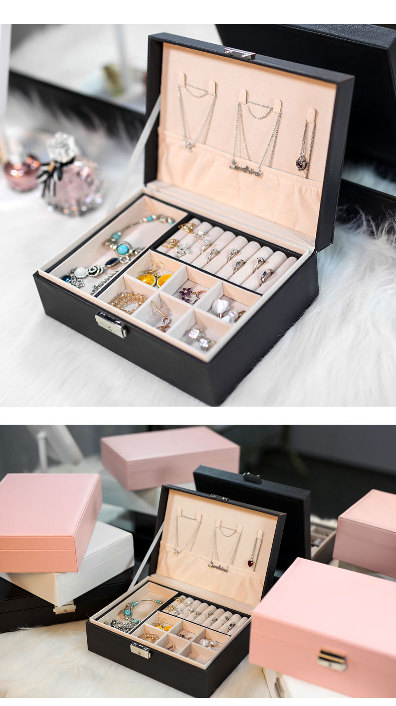 Double-Layer Large-Capacity Pu Jewelry Box Portable Leather Jewelry Storage Box Necklace Ring Watch Jewelry Box
