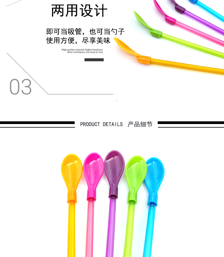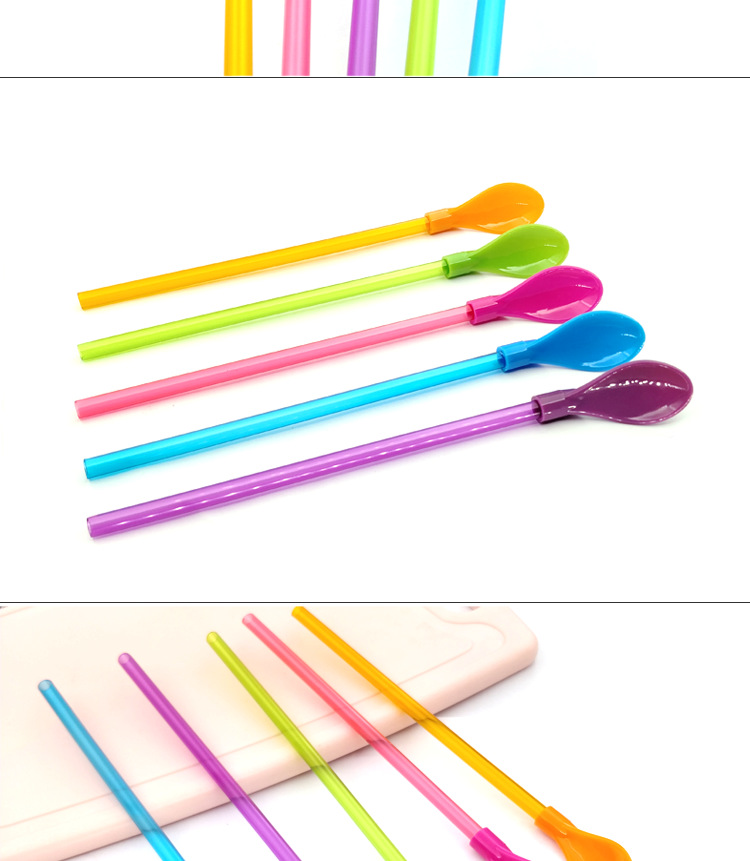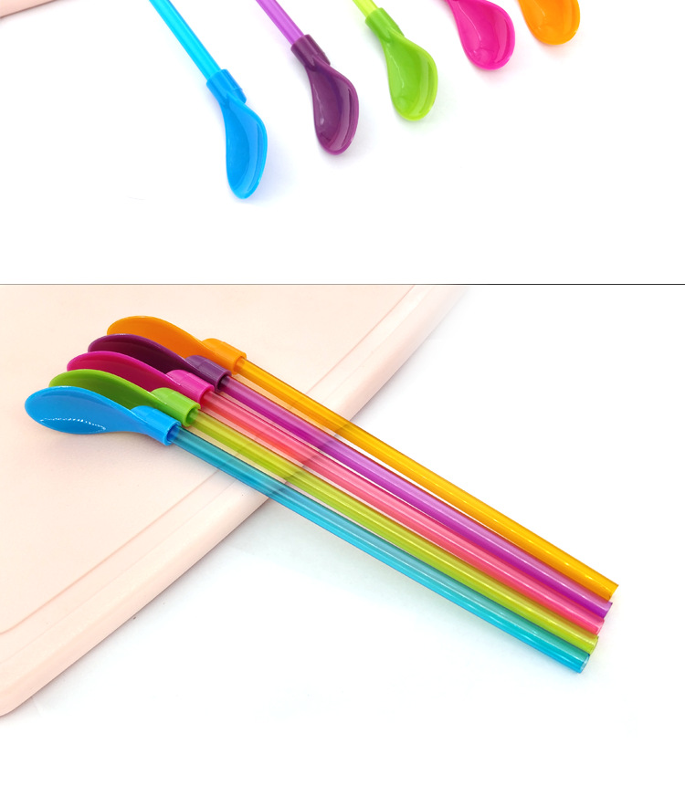 Factory spot Creative straw spoon dual-use plastic spoon integrated straw spoon kitchen utensils mixing