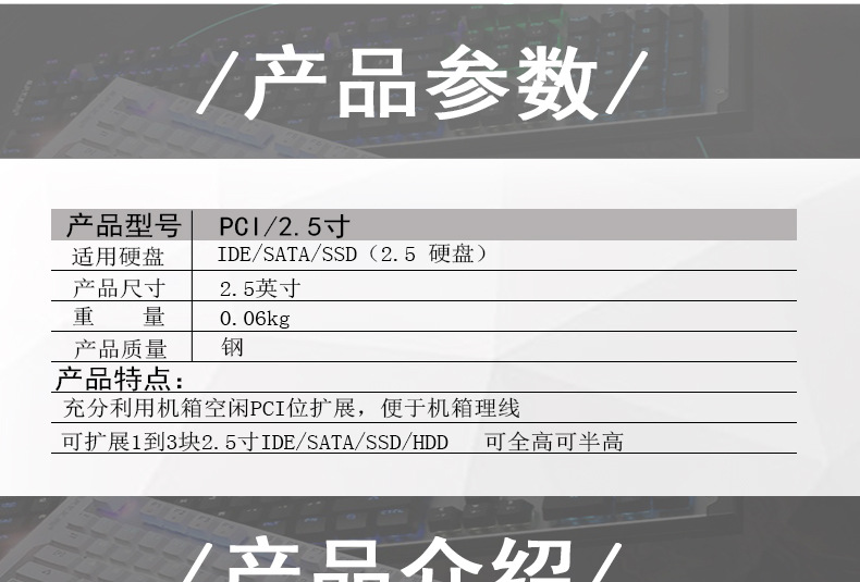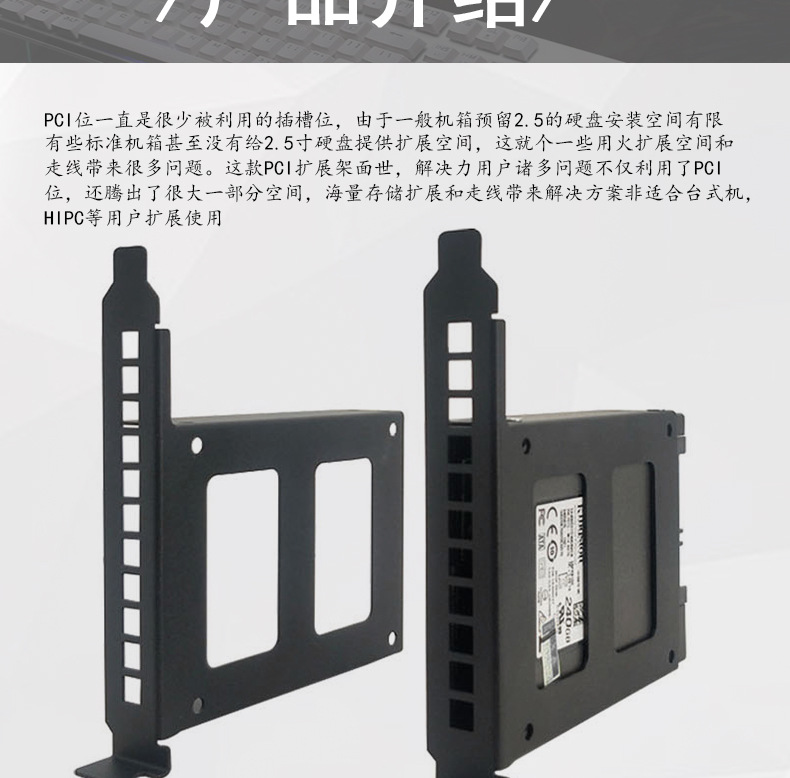 Product Features Chassis pci slot expansion hard drive holder makes full use of idle card slot to convert hard disk slot, pci hard disk expansion rack, supports 2.5 and 3.5inch hard drives