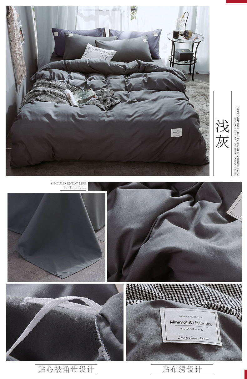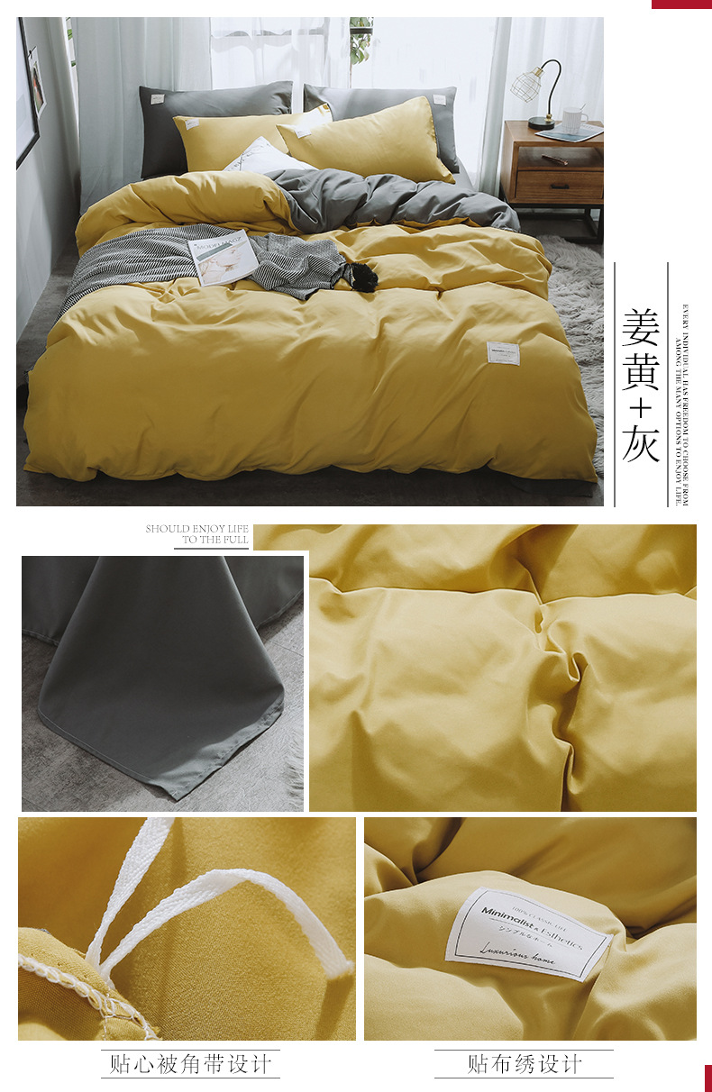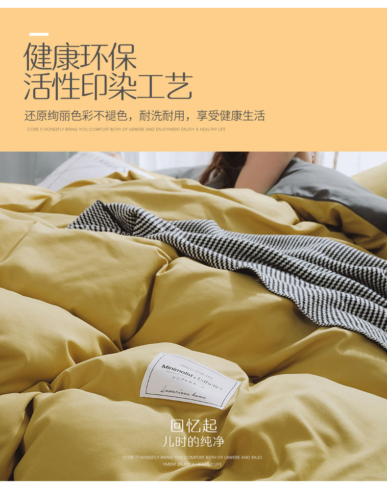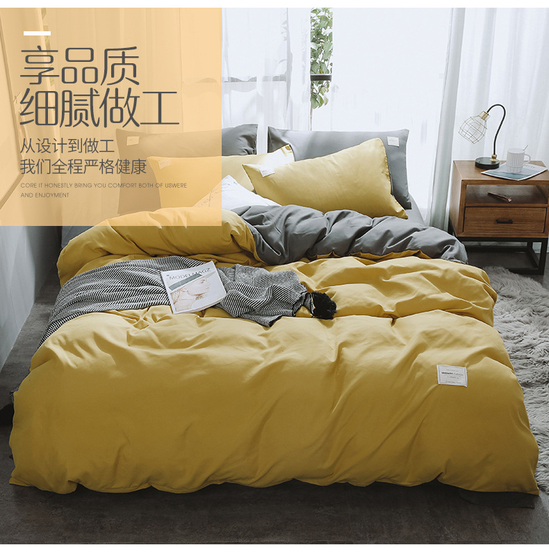 Autumn and Winter Washed Cotton Four-Piece Bed Bed Sheets Quilt Cover Brushed Bedding Men's and Women's Single Bed Student Dormitory Three-Piece Set