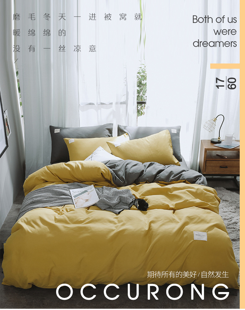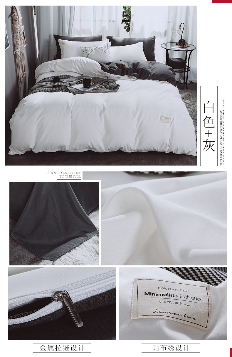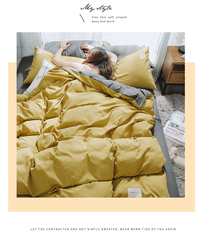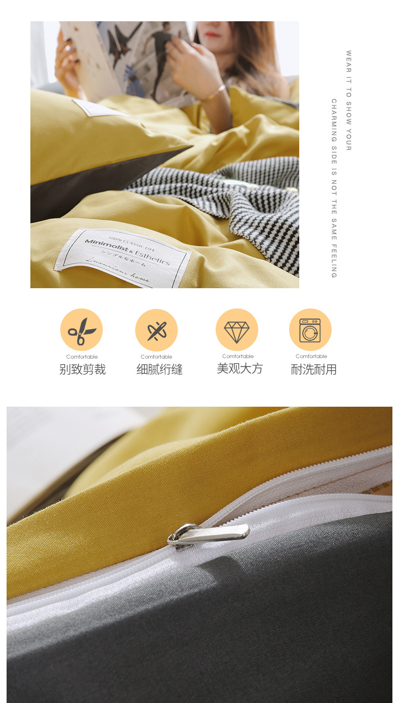 Autumn and Winter Washed Cotton Four-Piece Bed Bed Sheets Quilt Cover Brushed Bedding Men's and Women's Single Bed Student Dormitory Three-Piece Set