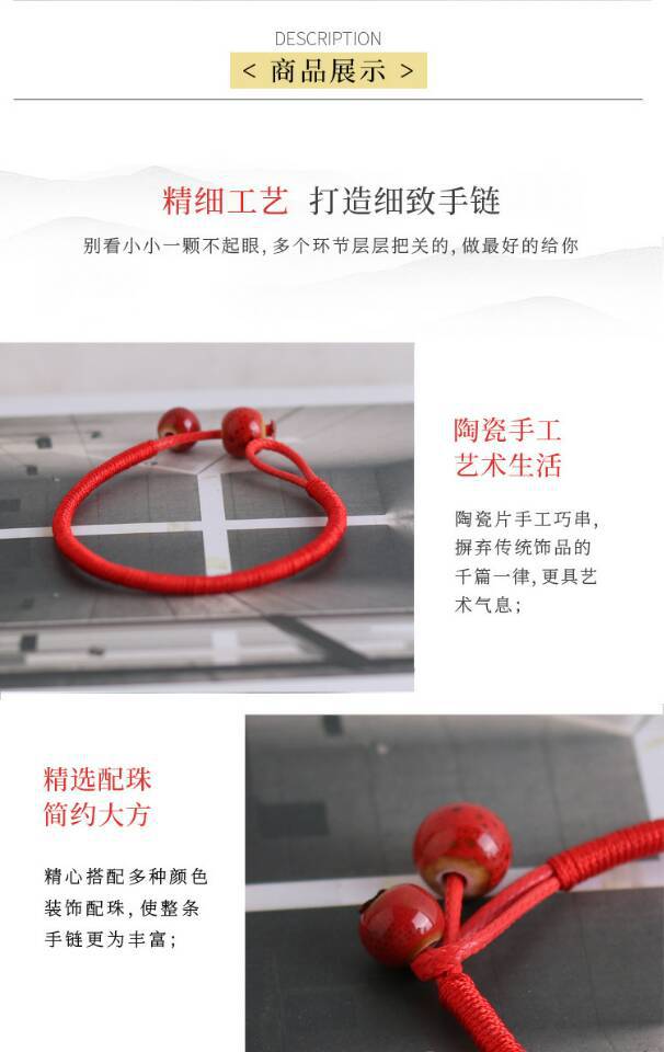 Benmingnian Red Rope Baby Bracelet Bracelet Bracelet for Men and Women Couple Bracelet Jingdezhen Ceramic Jewelry Wholesale
