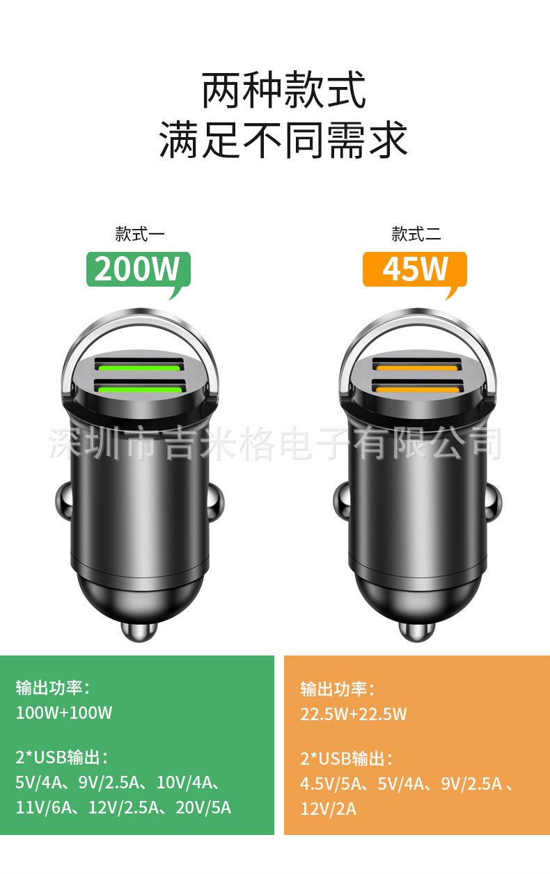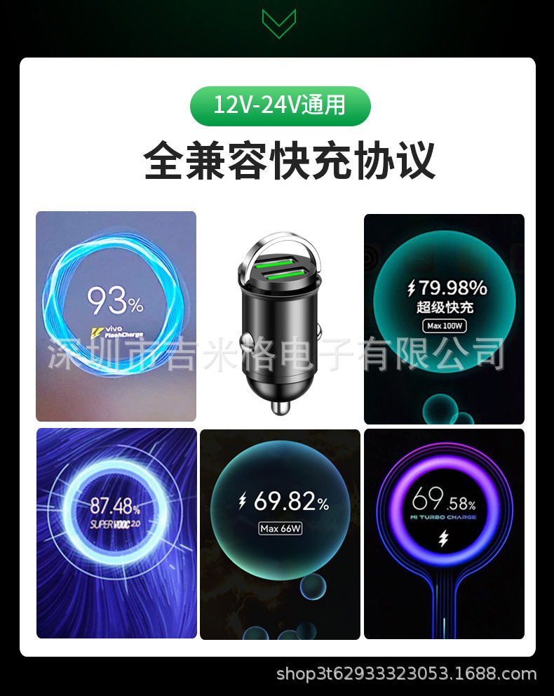 New pull ring car charger dual usb fast charge Mini Hidden 66W 100W flash charge multifunctional car charger