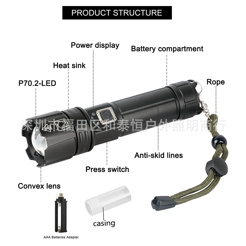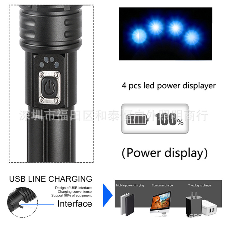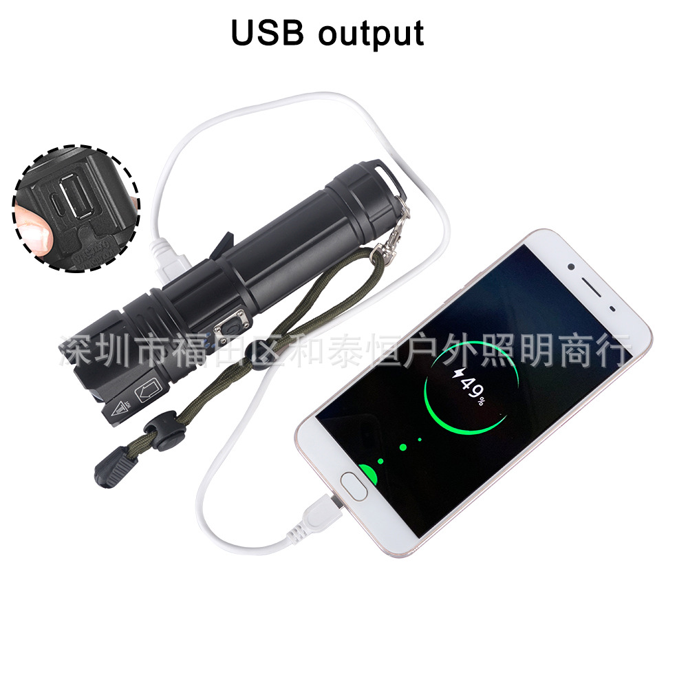 Cross-border super bright P70 flashlight aluminum alloy long-shot waterproof 5V USB rechargeable outdoor flashlight