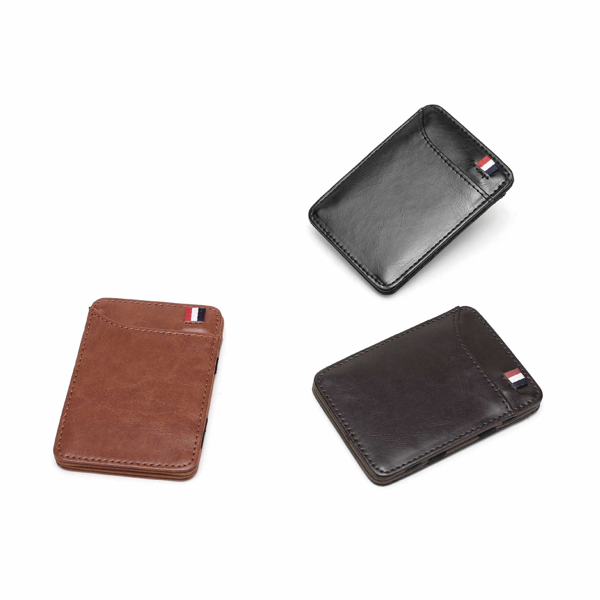 In-Stock New Korean Style Unisex Card Holder Card Case Solid Color Pu Leather Magic Wallet Bank Card Embossed Design