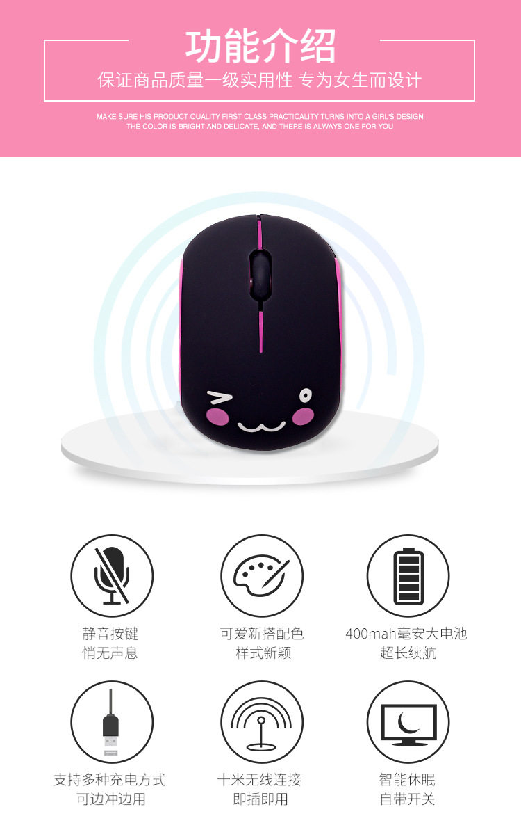 Wireless Mouse Gift Mouse Mute Rechargeable Cute Cartoon Desktop Laptop Universal