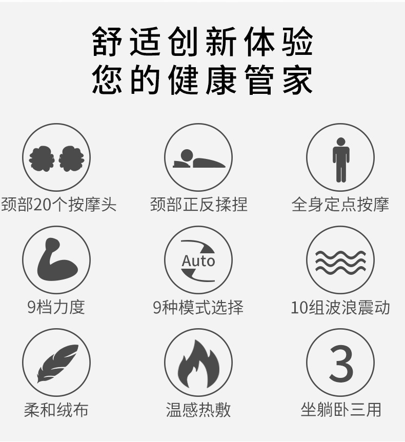 | Massage head | 20 neck kneading +10 sets of vibration motor |