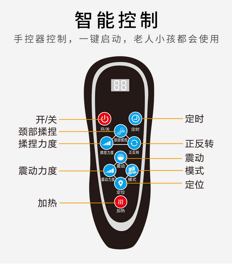 | Function | Timing,Infrared physiotherapy,Handheld wire control,Mechanical massage,Air bag kneading |
